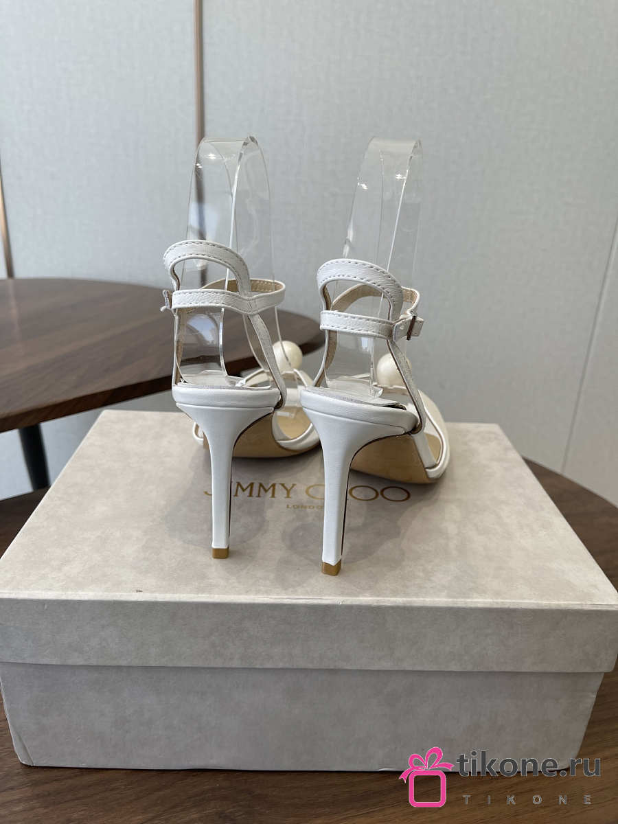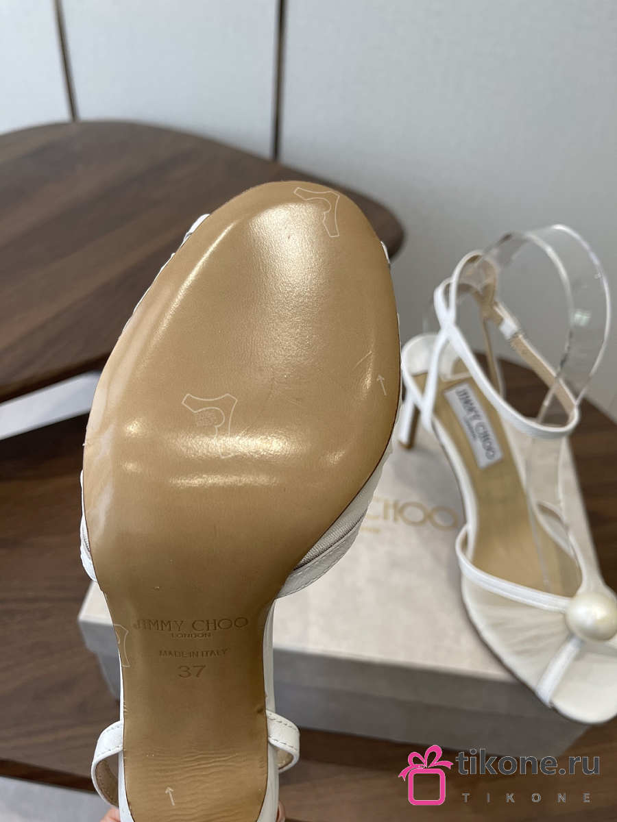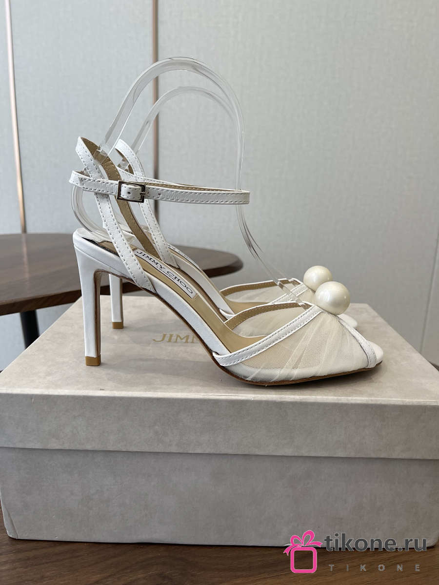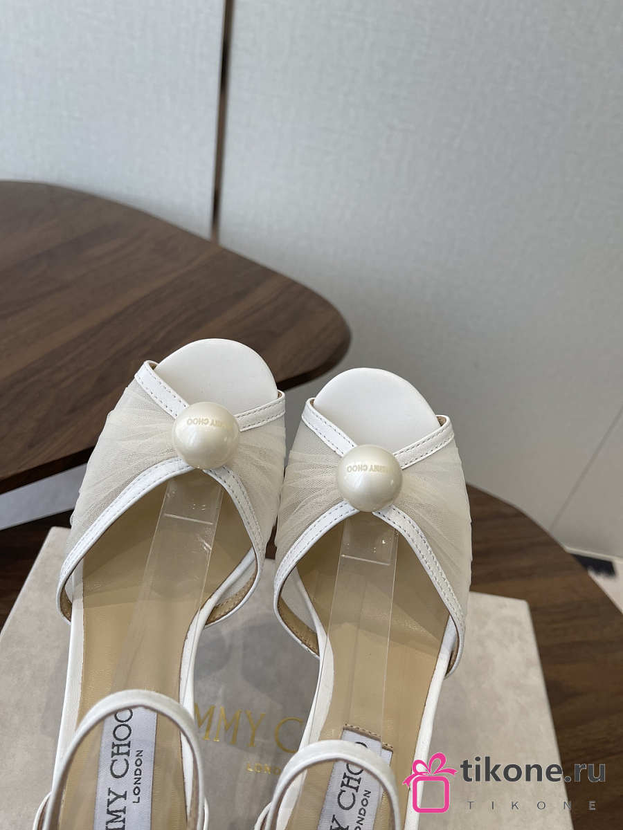 Jimmy Choo Sacaria 85 Ivory Tulle Sandals with Pearl Detail