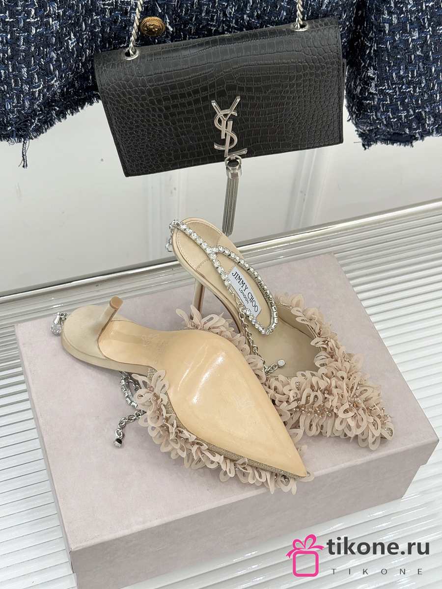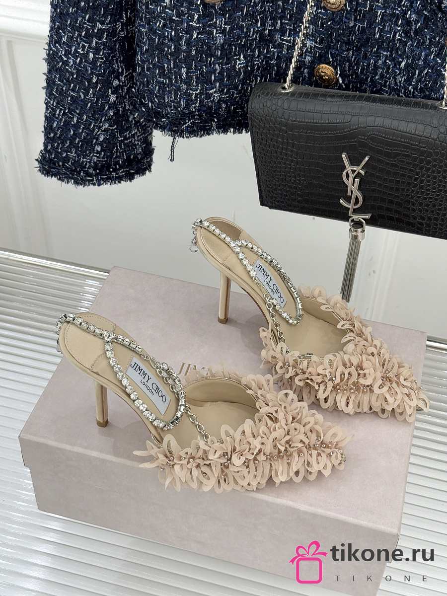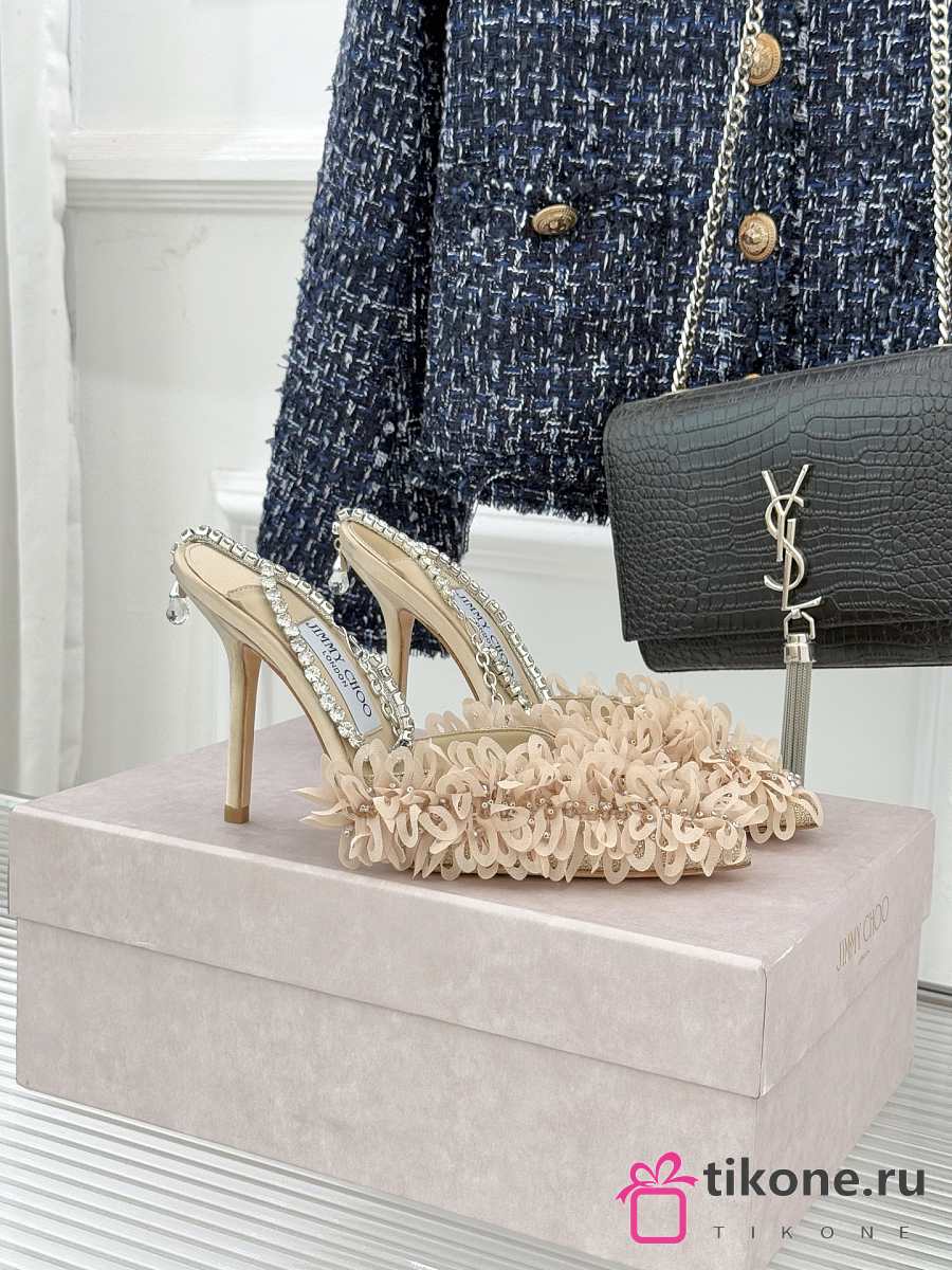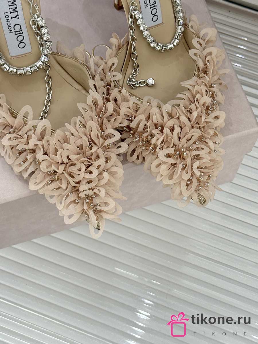 Jimmy Choo Saeda 100 Beige Mesh Pumps with Petal Embroidery