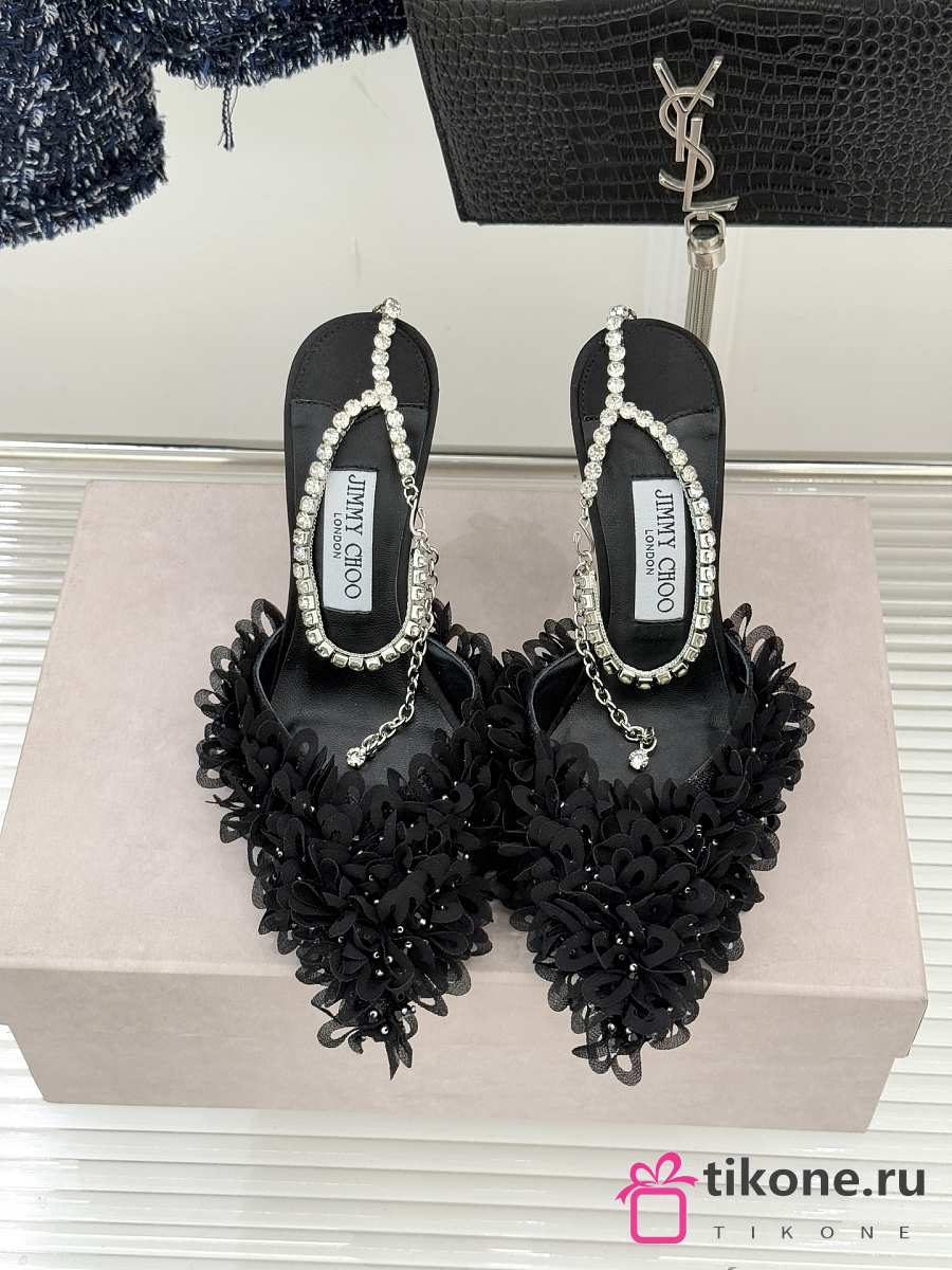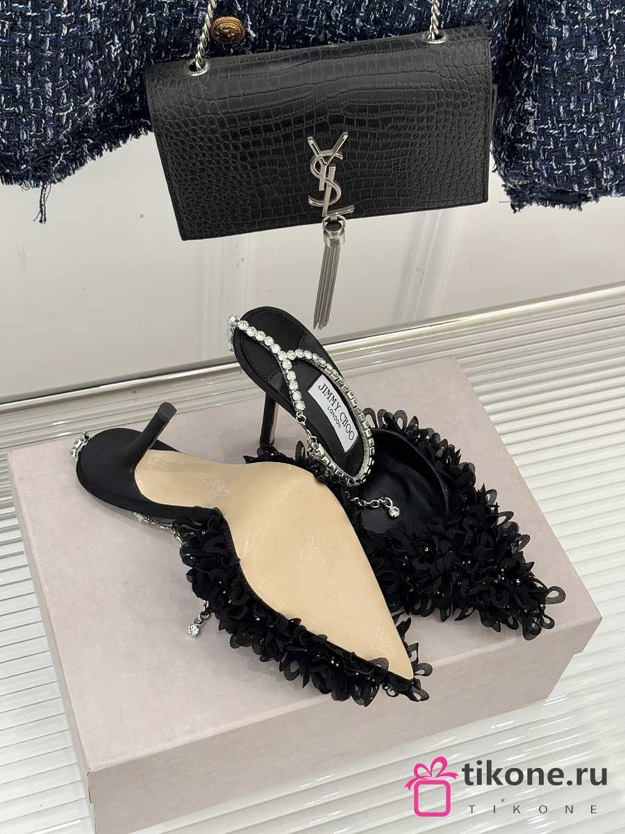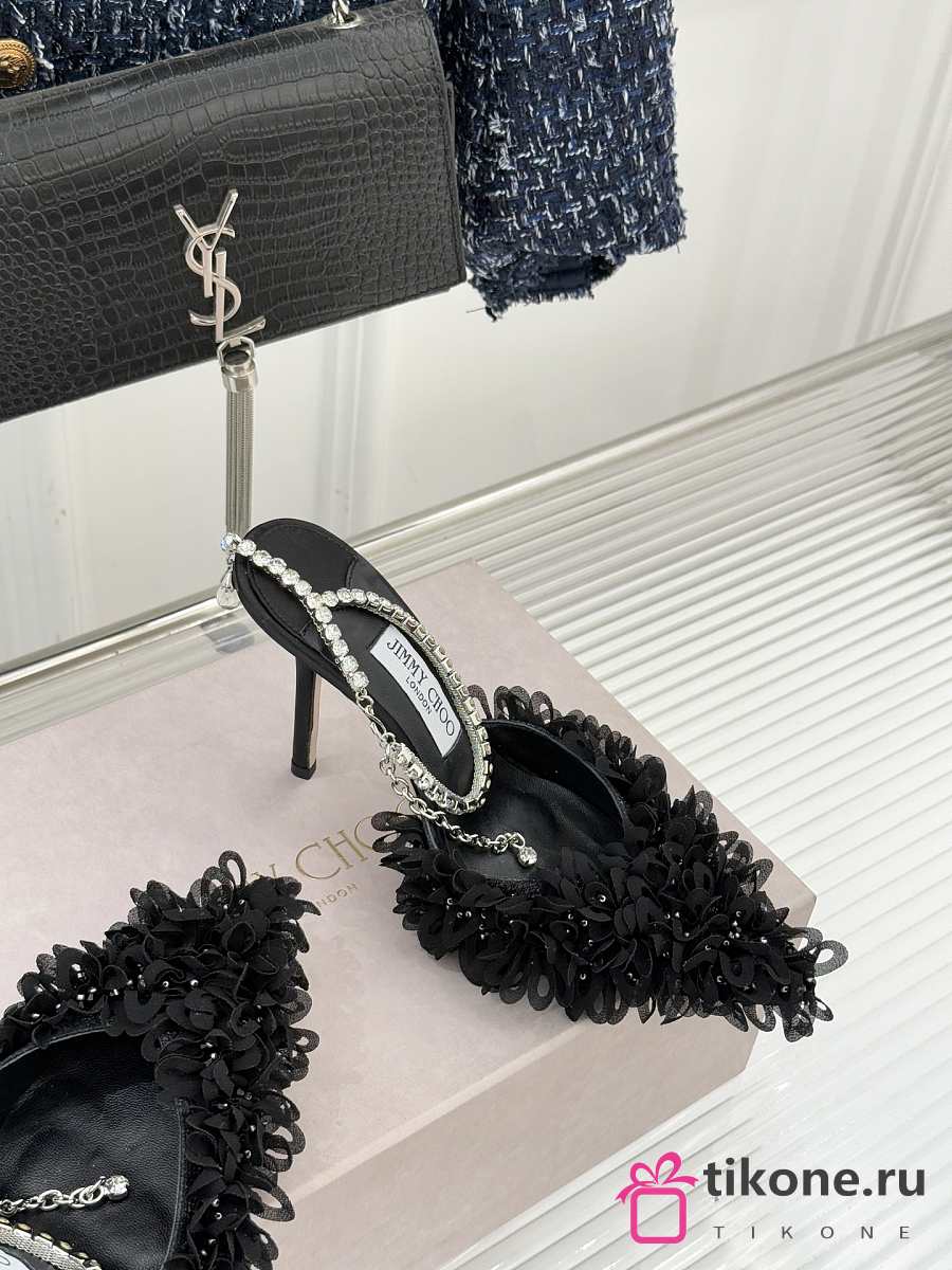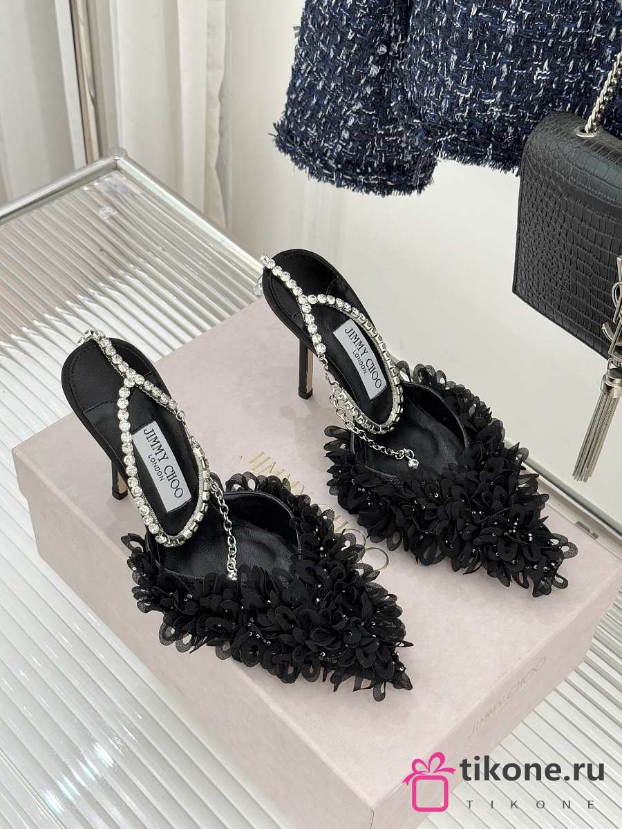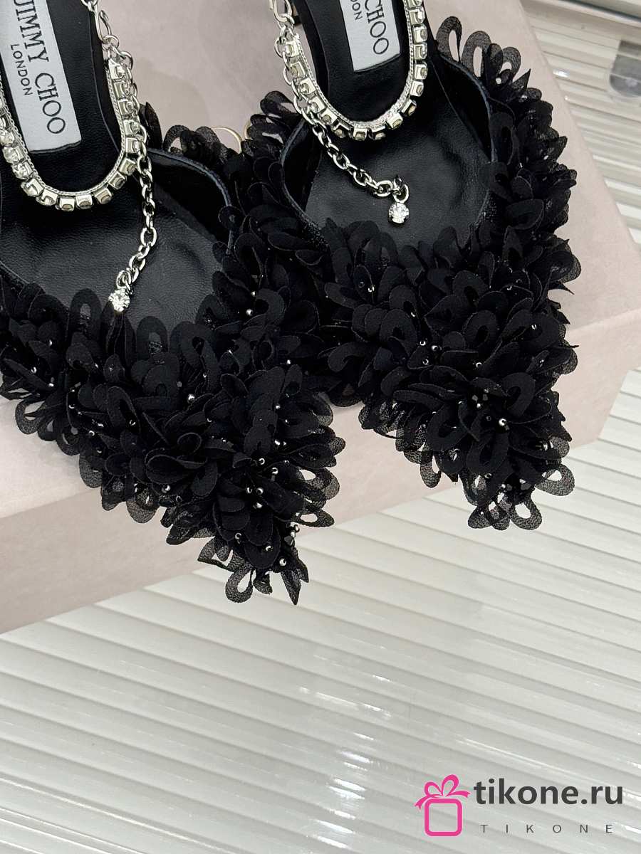 Jimmy Choo Saeda 100 Black Mesh Pumps with Petal Embroidery