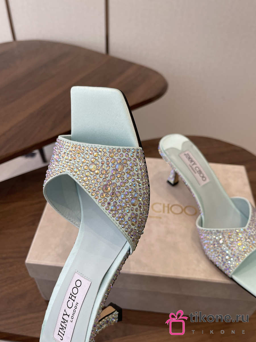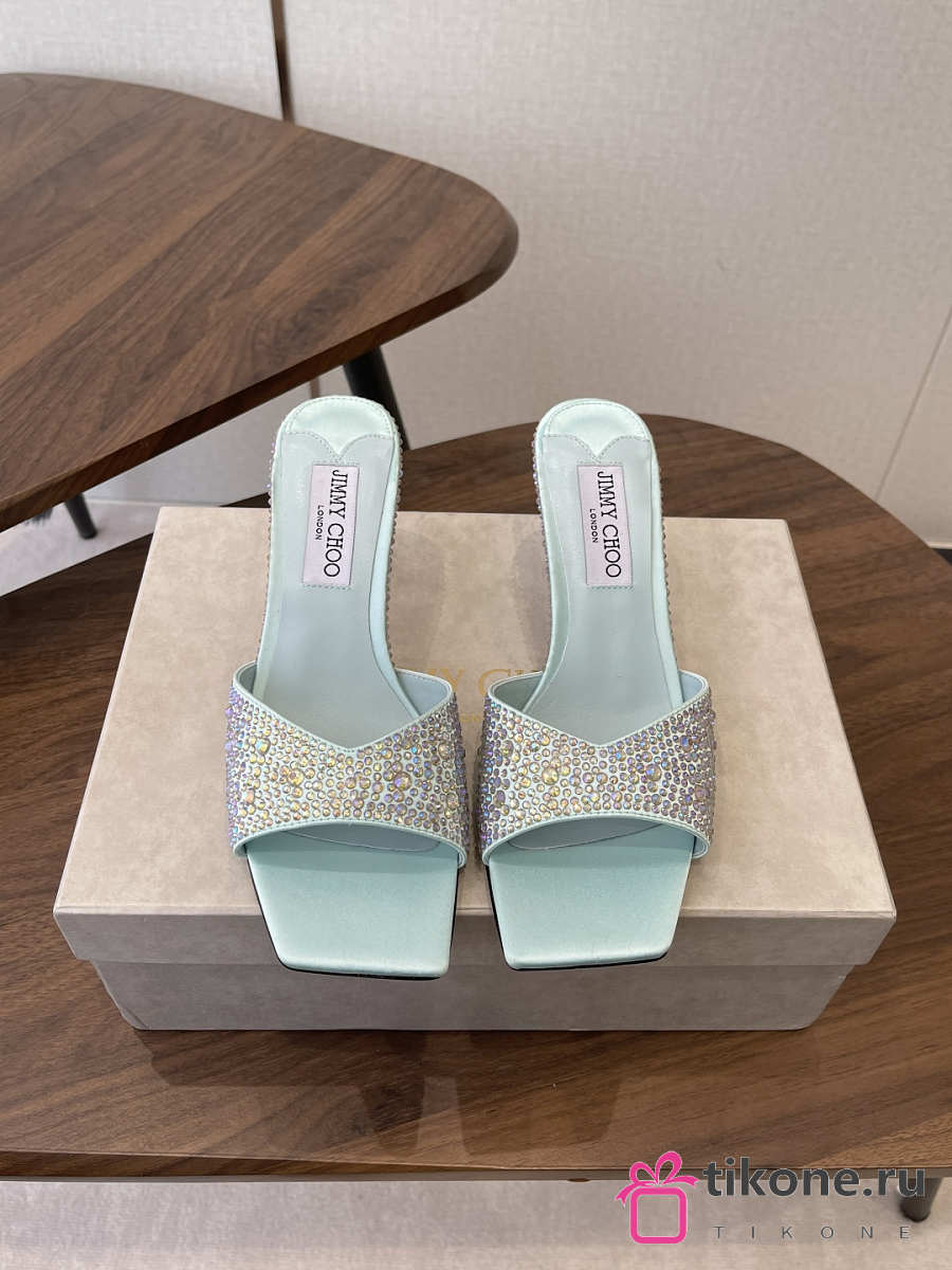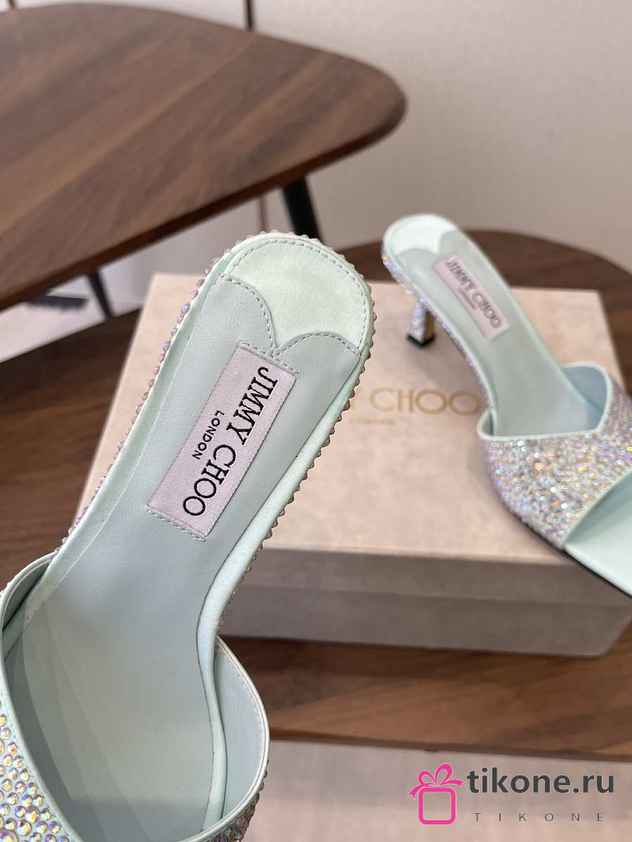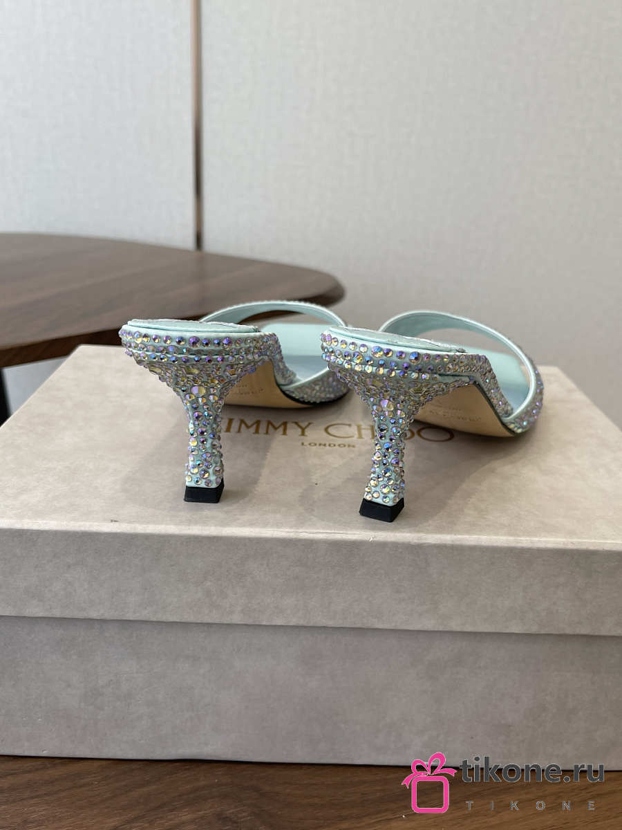 Jimmy Choo Skye 70 Light Green Satin Mules with Degrade Crystal