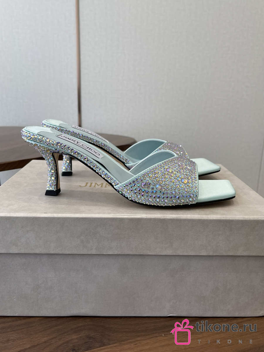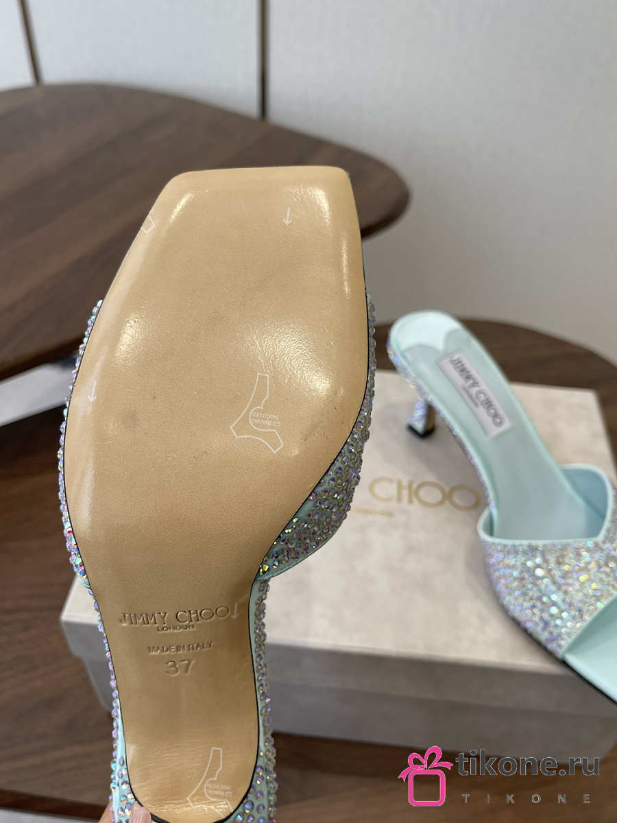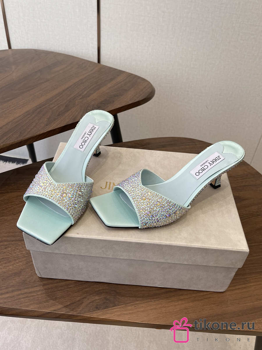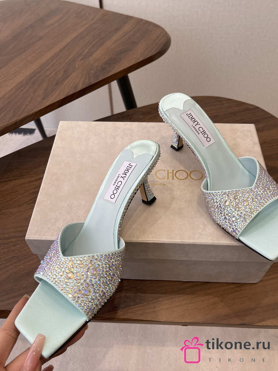 Jimmy Choo Skye 70 Light Green Satin Mules with Degrade Crystal