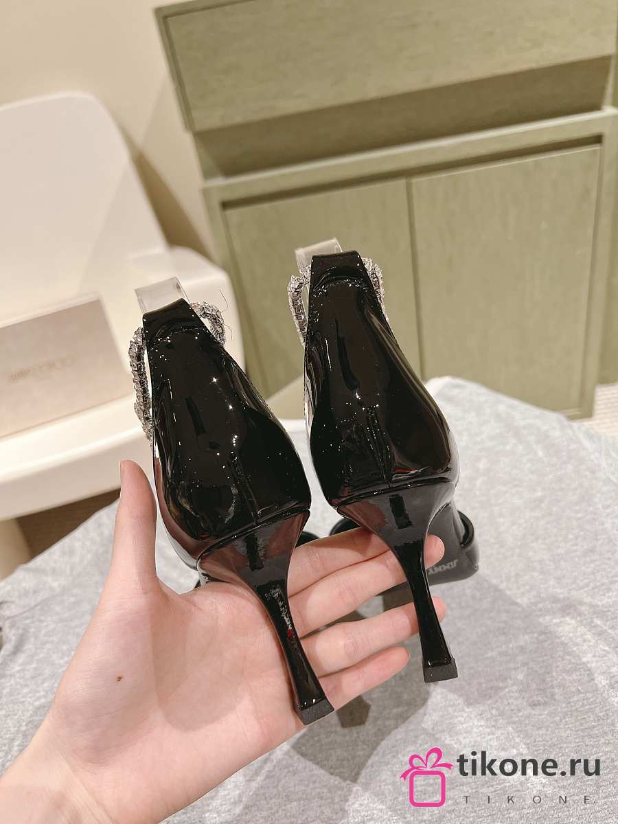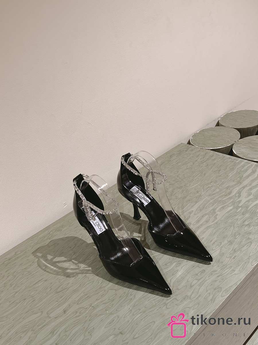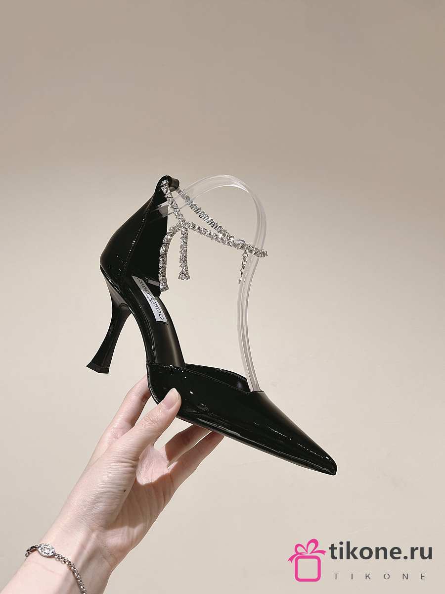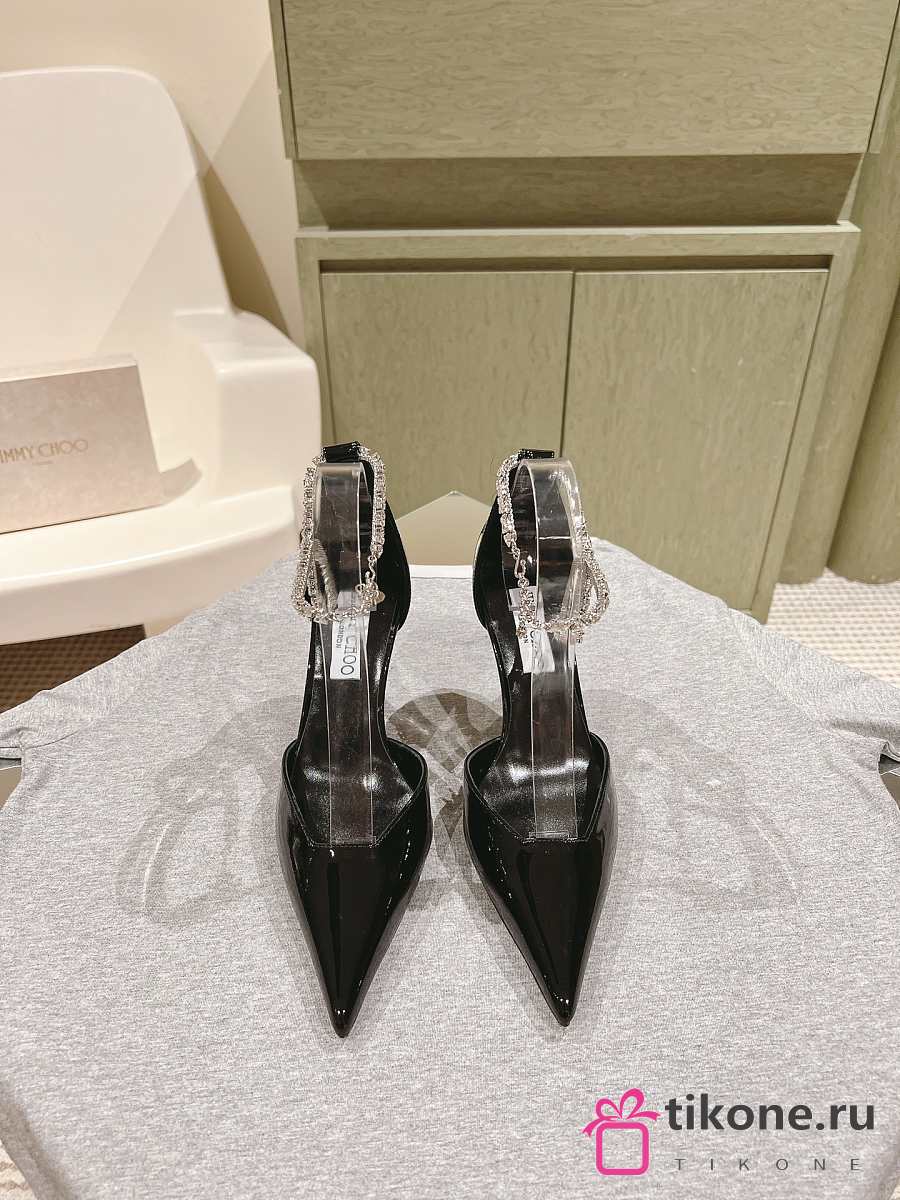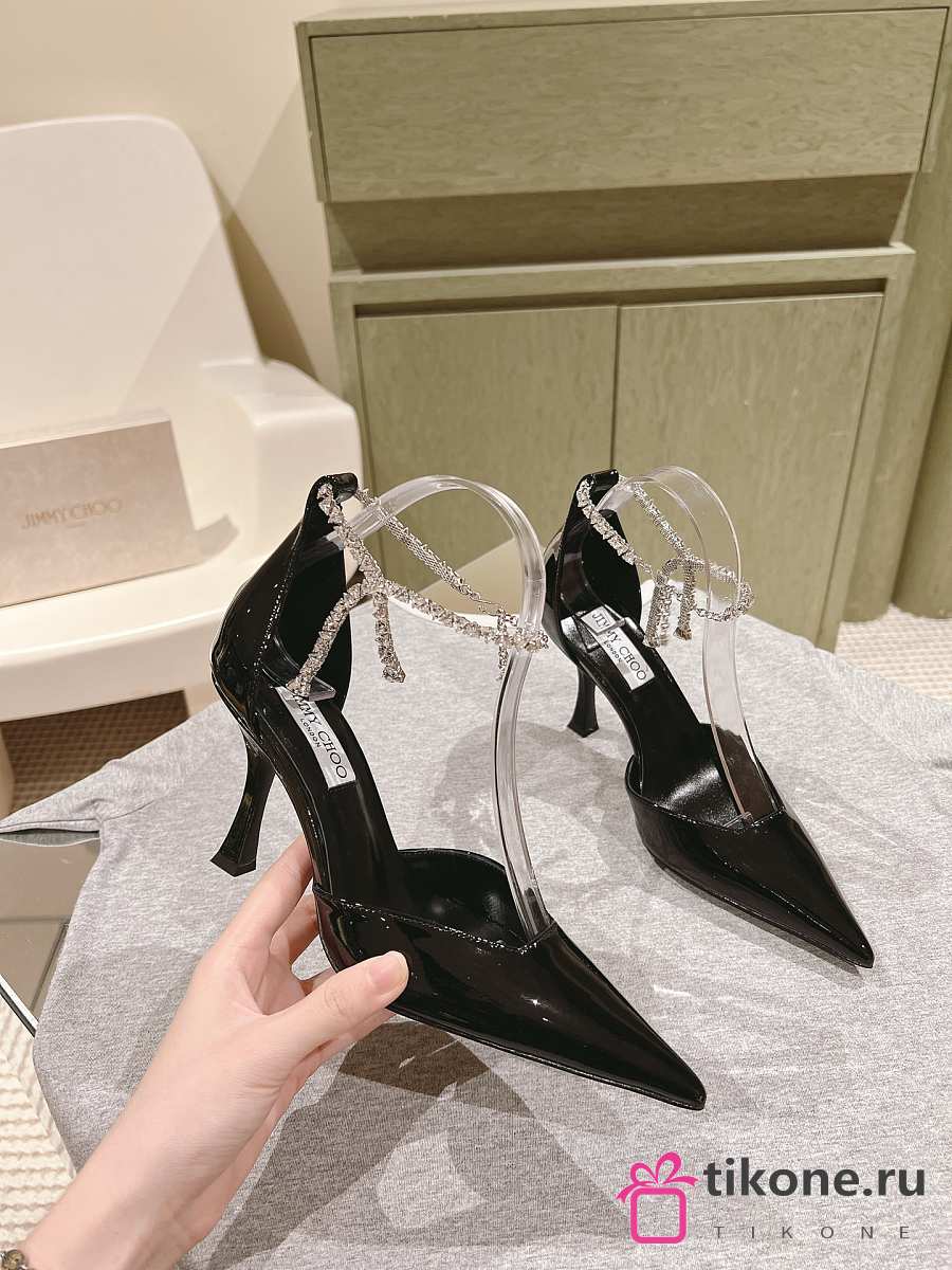 Jimmy Choo Stevie 100 Black Patent Leather Pumps Crystal Anklet
