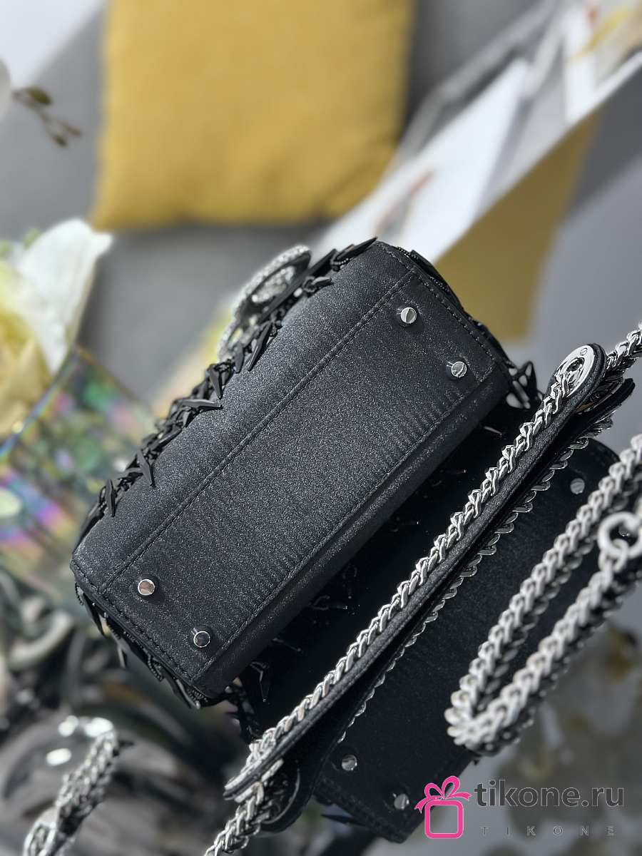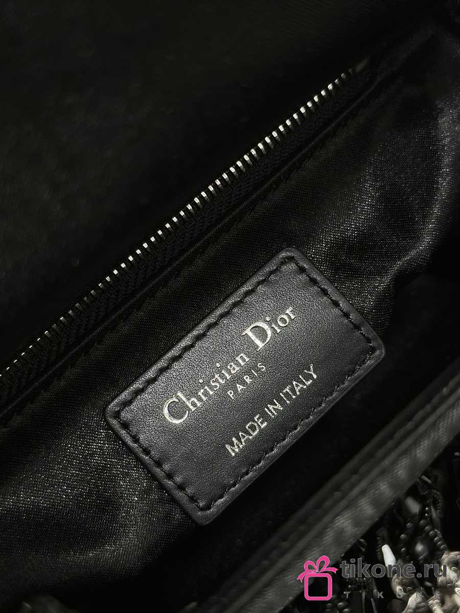 Dior Small Lady D-Joy Bag Black Calfskin Embroidered With Beads And Sequins - 22x12x6cm