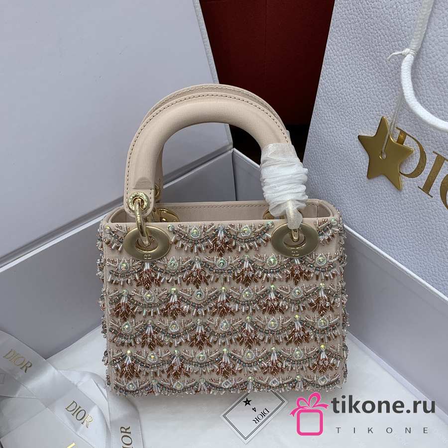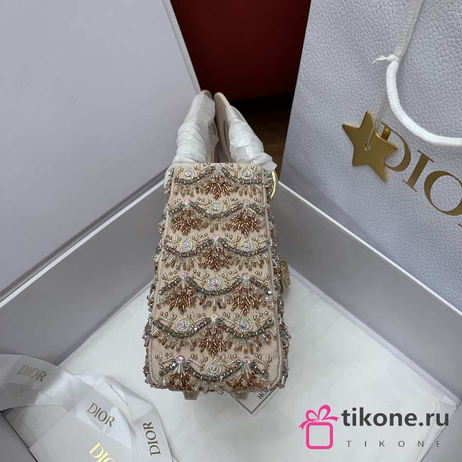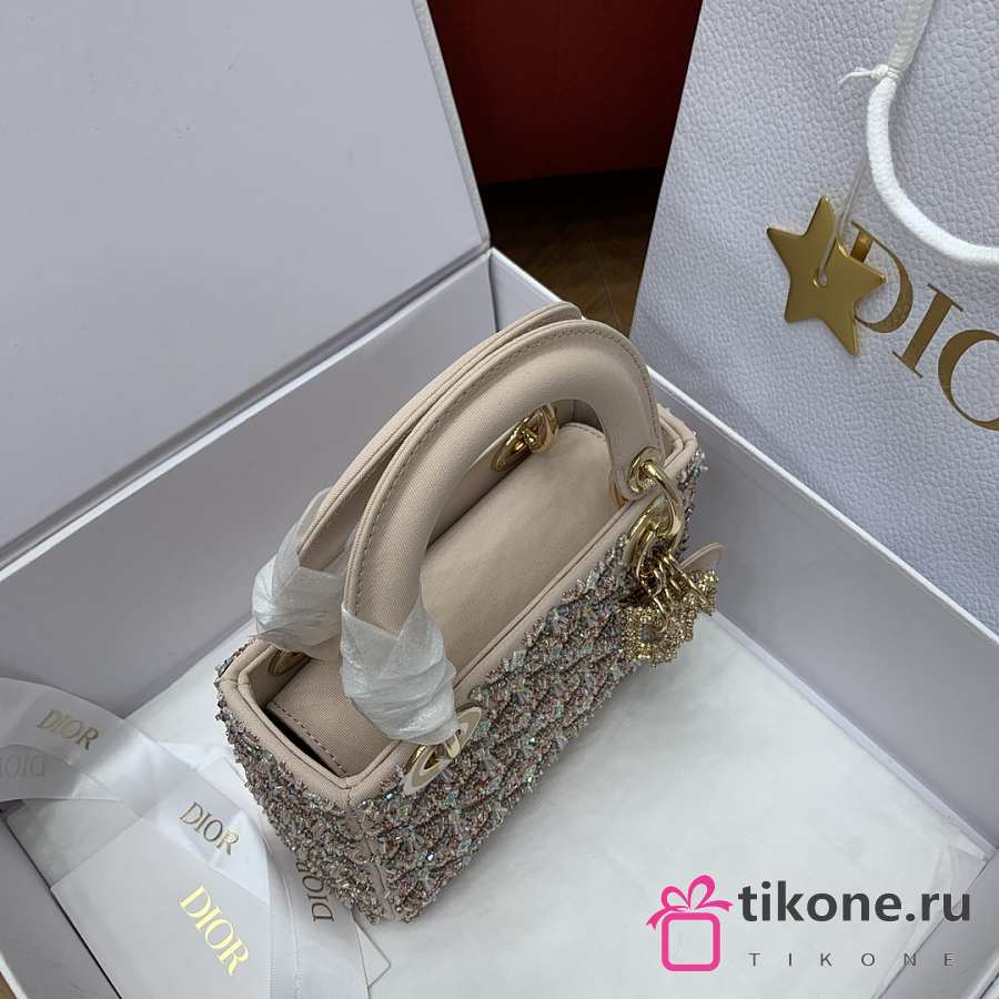 Lady Dior Embroidered Beaded Bag Champagne Crystal Edition - 17x15x7cm