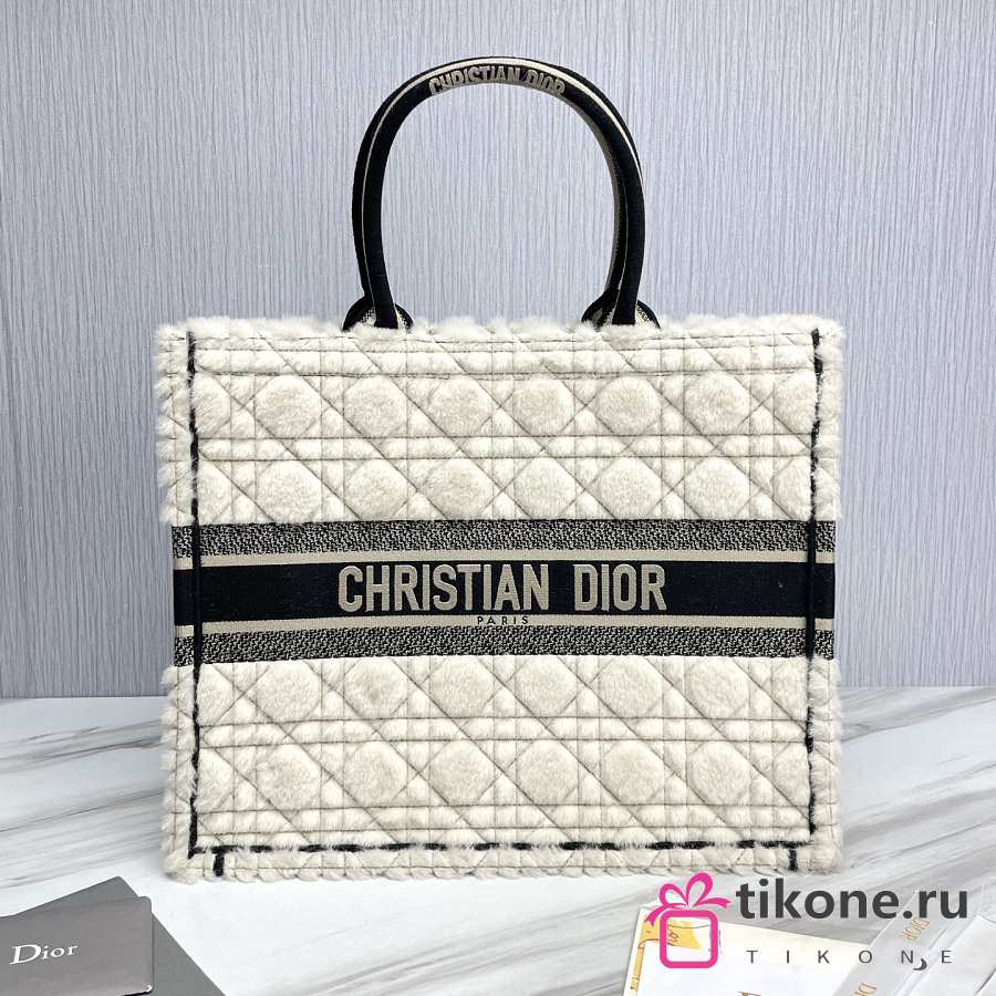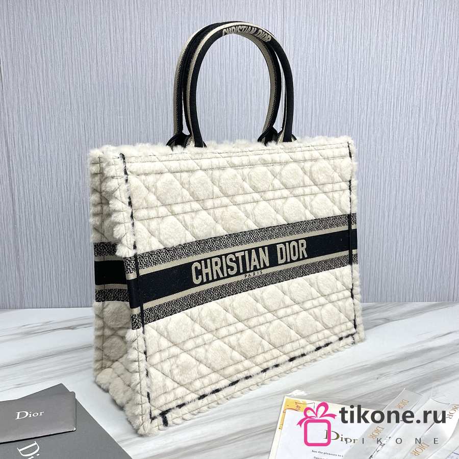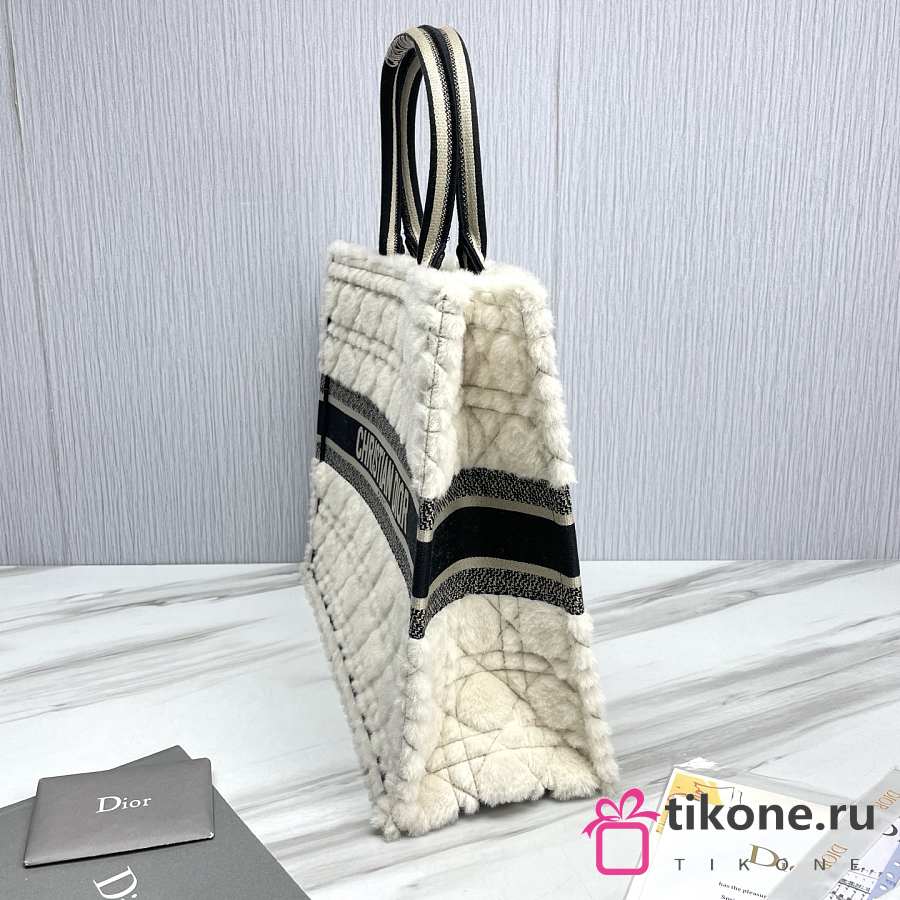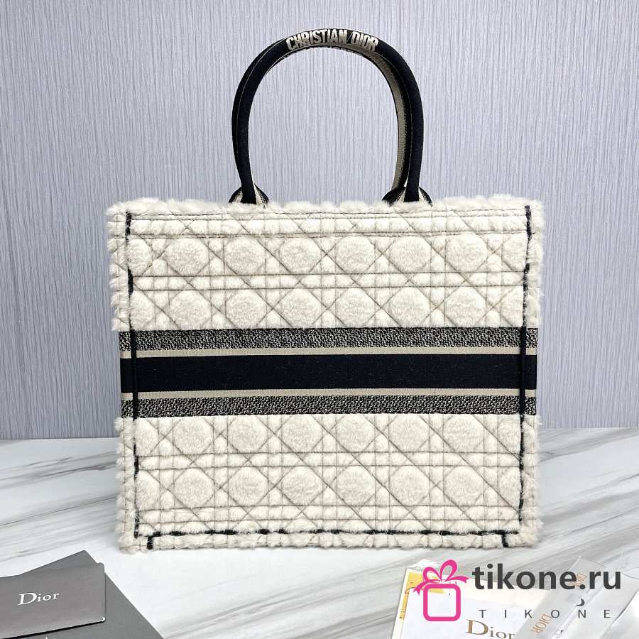 Large Dior Book Tote Lambskin Wool Unbleached Caning White - 42x35x18.5cm