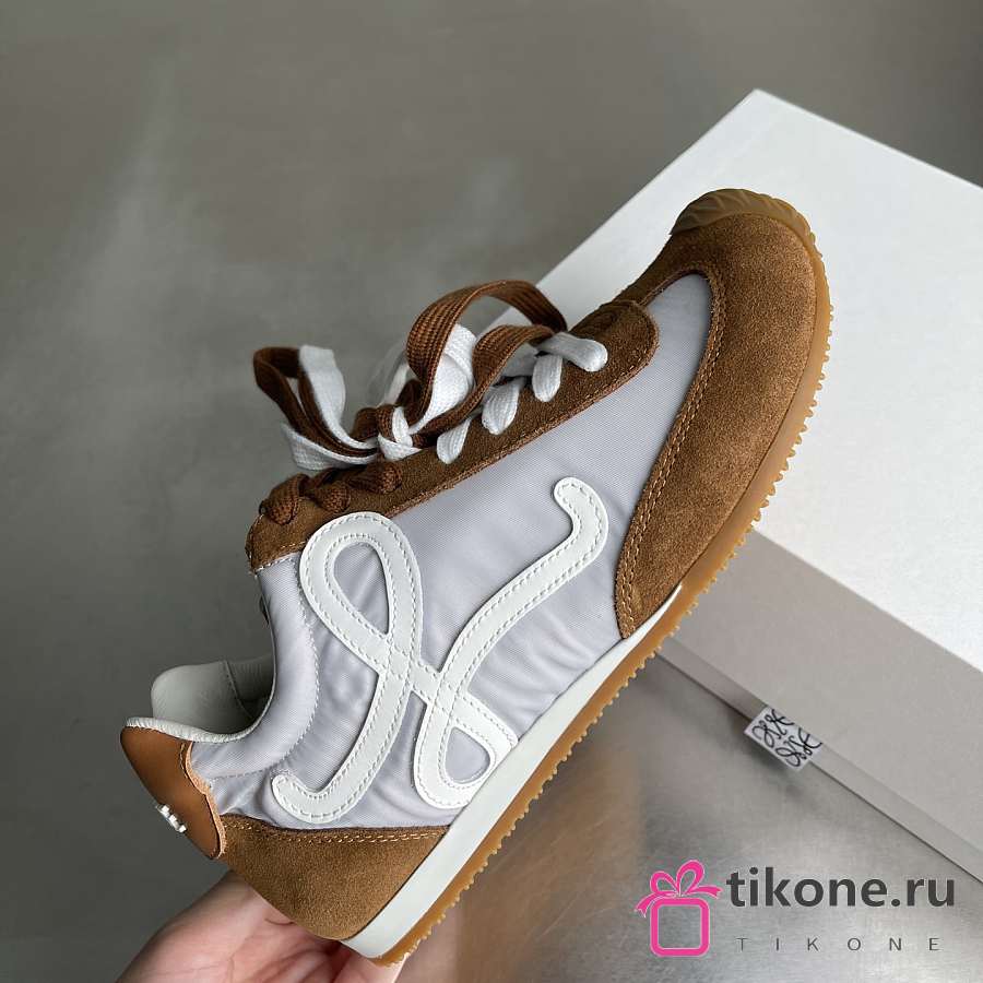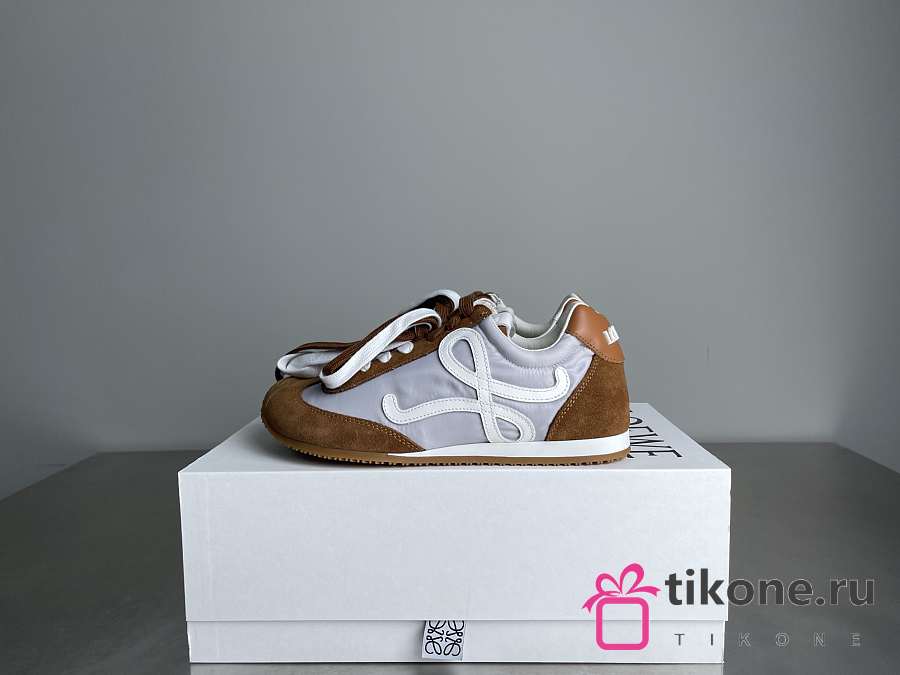 Loewe Ballet Runner 2.0 In Nylon And Calfskin Gray/ White/ Tan
