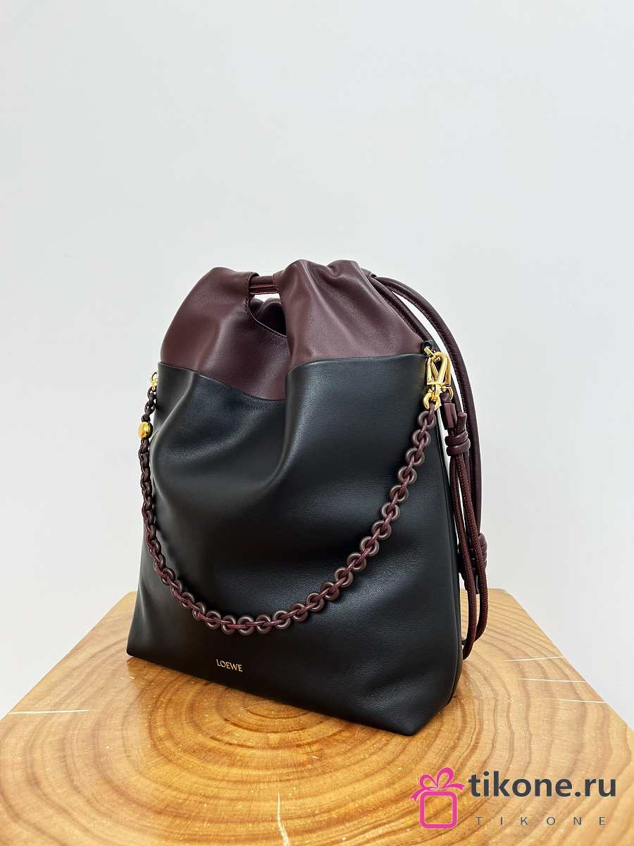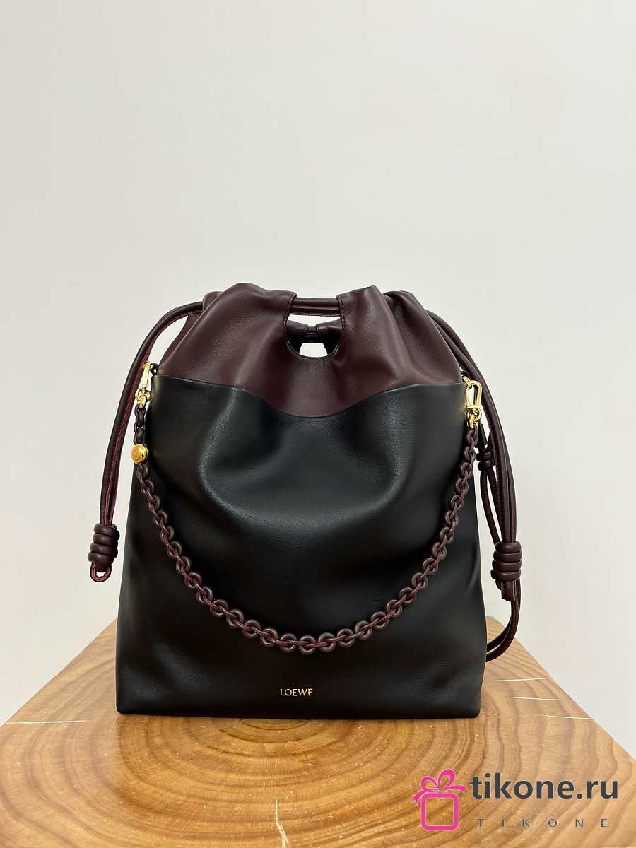 Loewe Flamenco Purse Tote In Mellow Nappa Lambskin Black/Dark Chestnut - 38x29x9cm