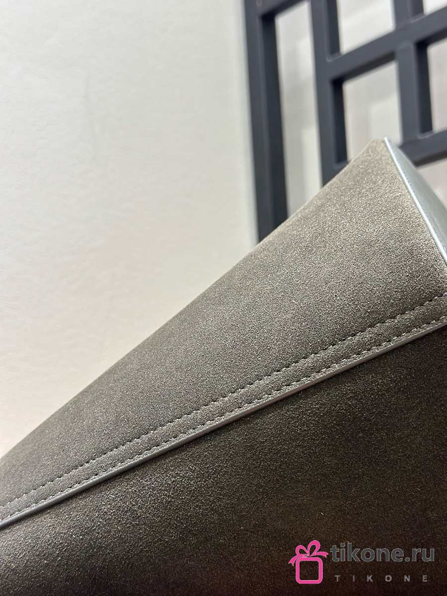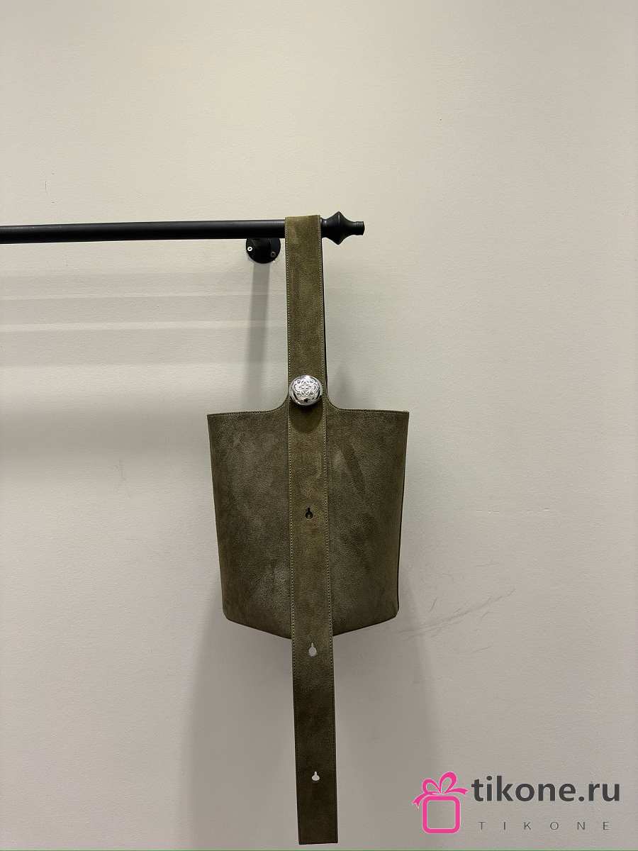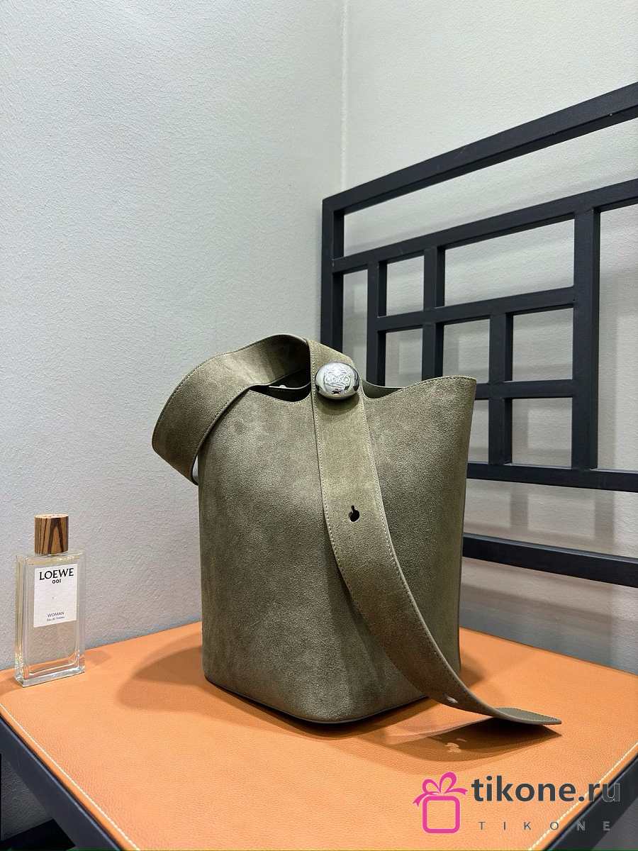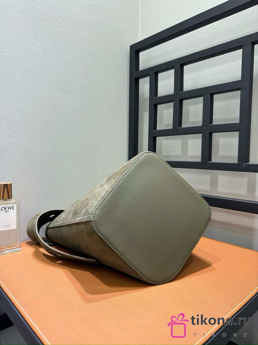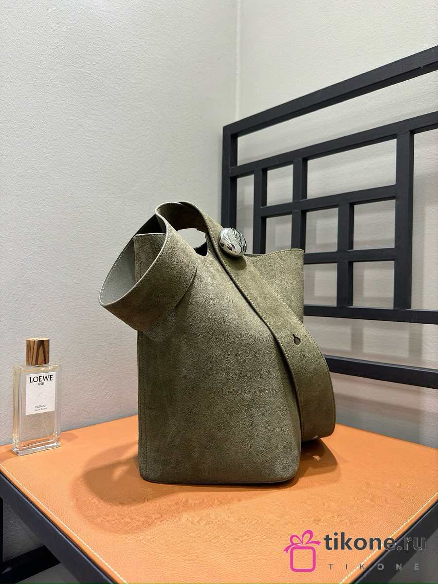 Loewe Large Pebble Bucket Bag In Suede Calfskin Dark Olive - 33x28x28cm