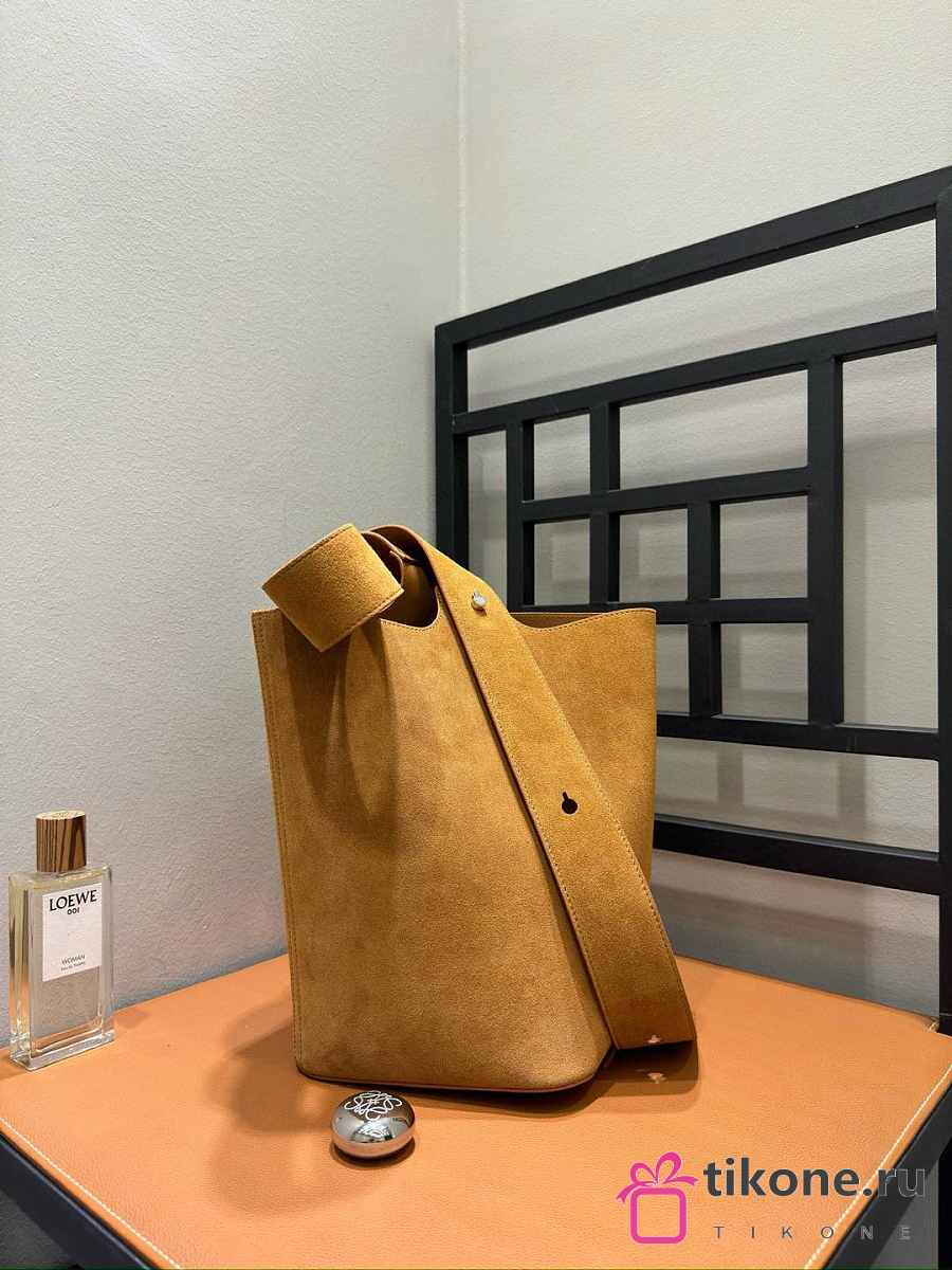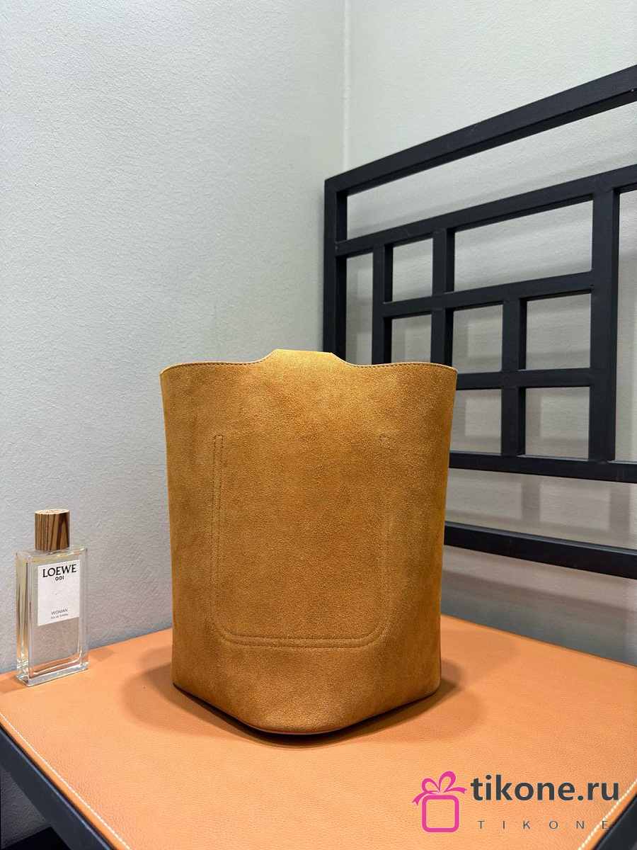 Loewe Large Pebble Bucket Bag In Suede Calfskin Tobacco - 33x28x28cm