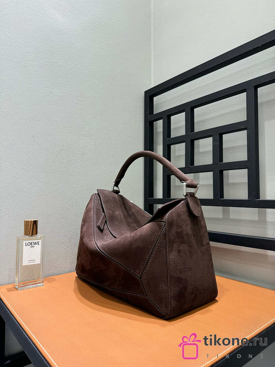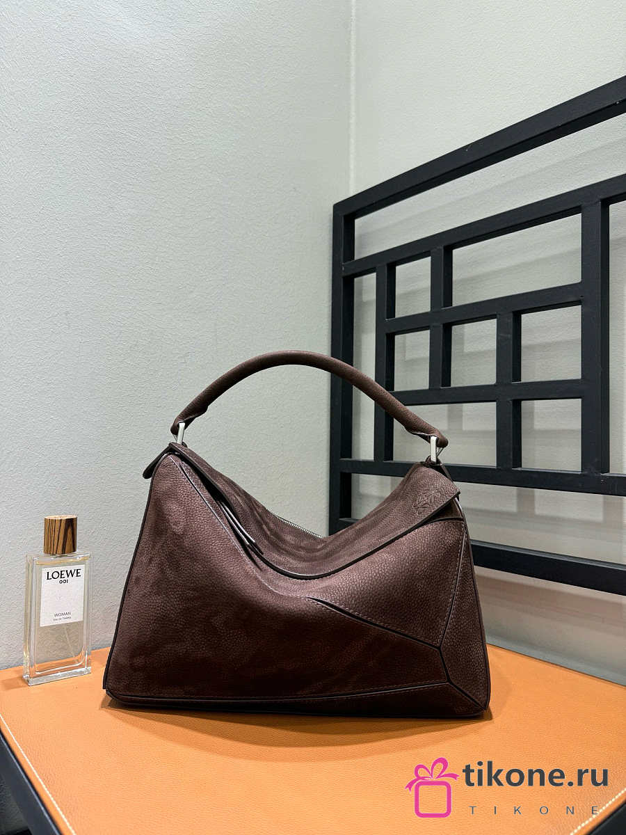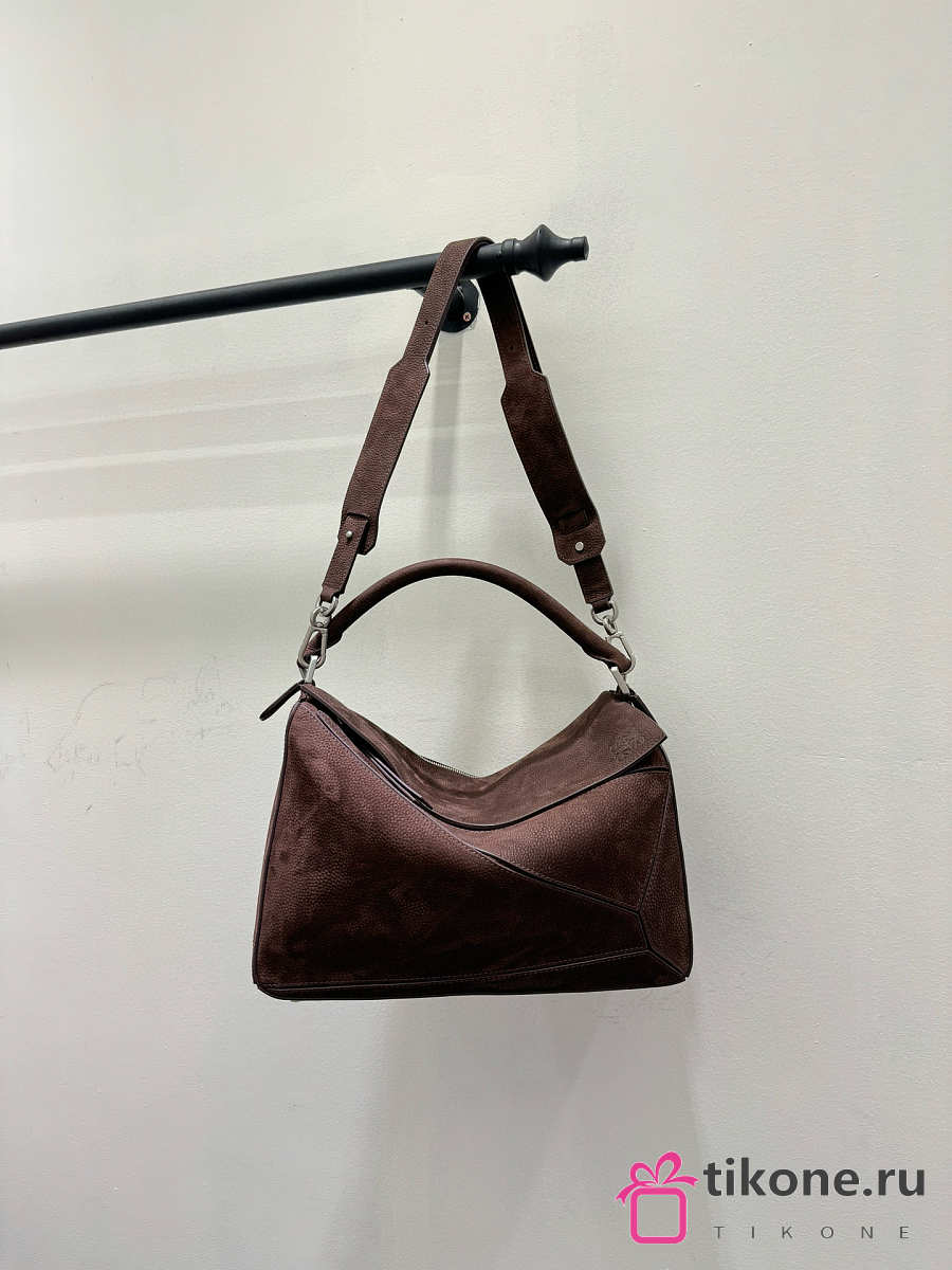 Loewe Large Puzzle Bag in Grained Nubuck Brown - 33x21.5x14.7cm