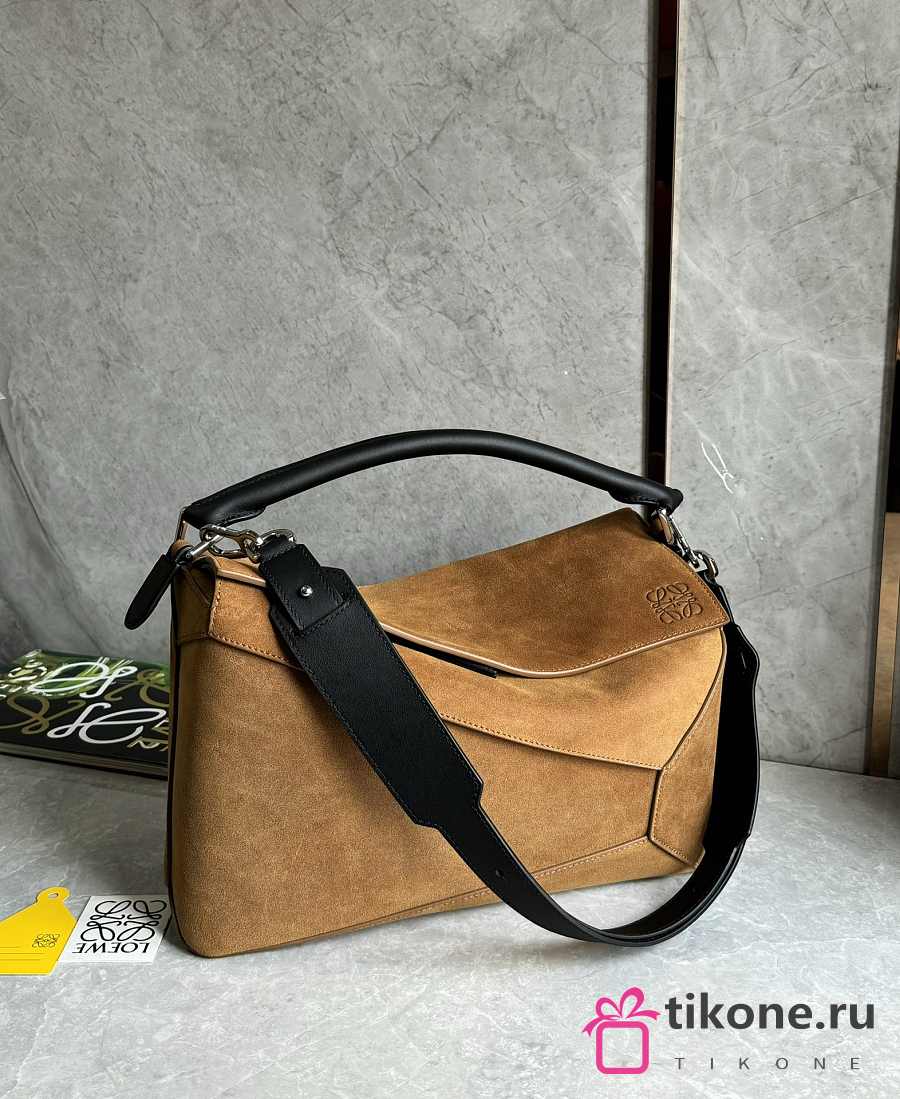 Loewe Large Puzzle Bag In Pressed Suede in Brown - 33x21.5x15cm