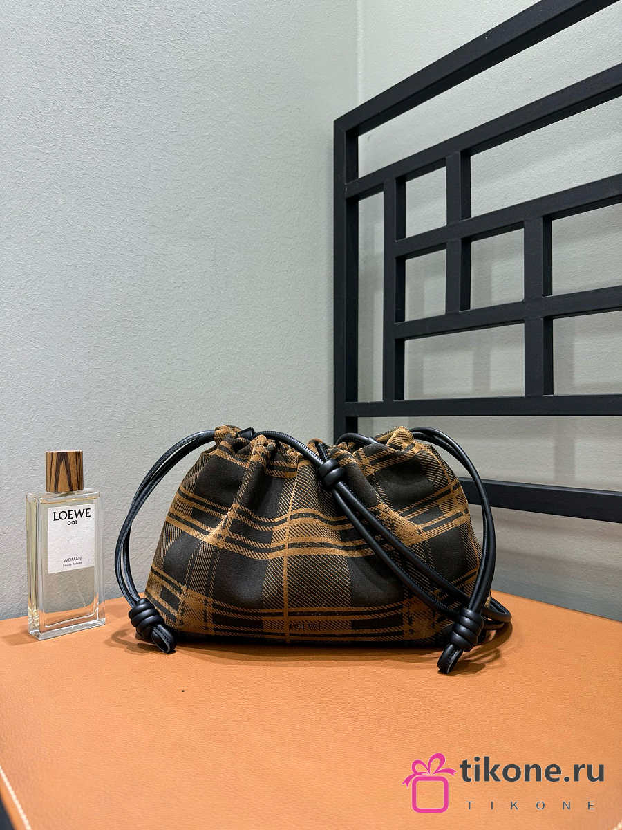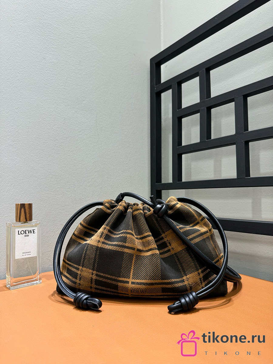 Loewe Medium Flamenco Purse In Tartan Suede Brown/Black - 30x20x10.5cm