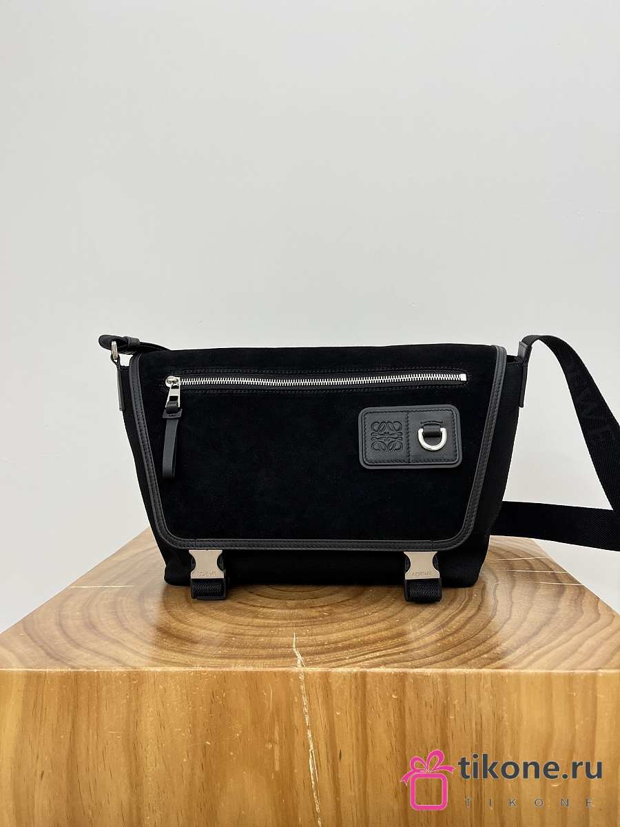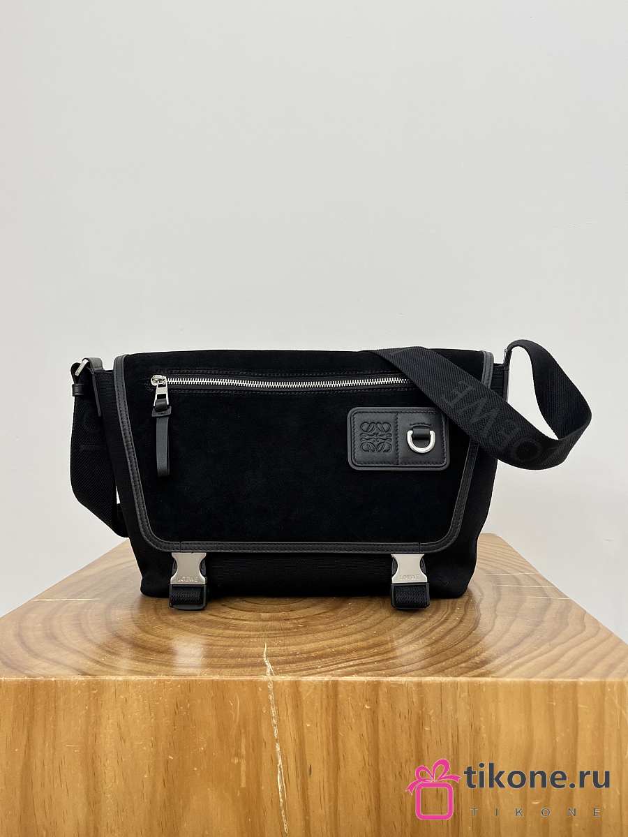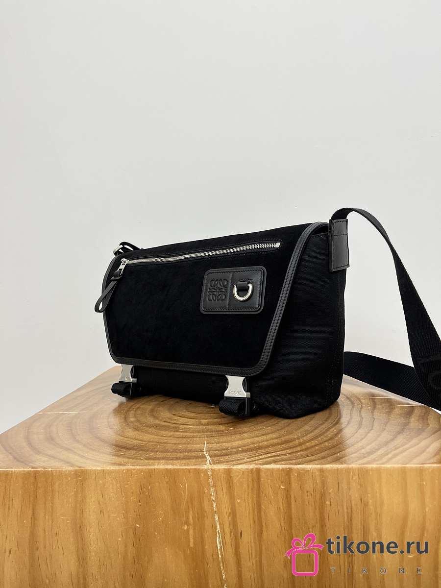 Loewe Medium Flex Messenger In Canvas And Suede Black - 38x27x9.5 cm