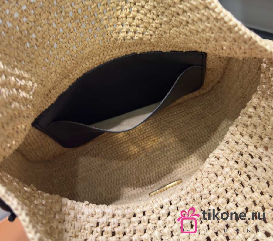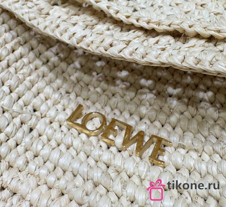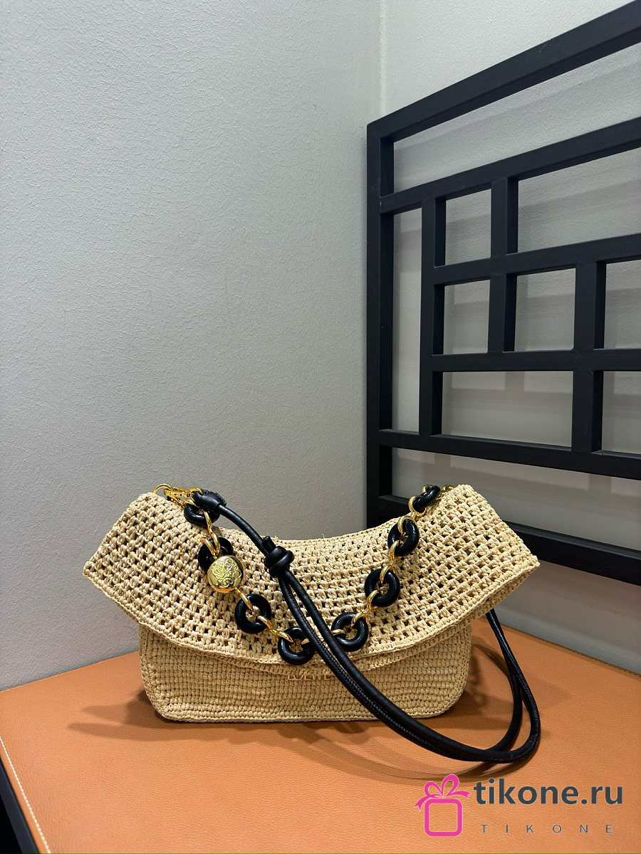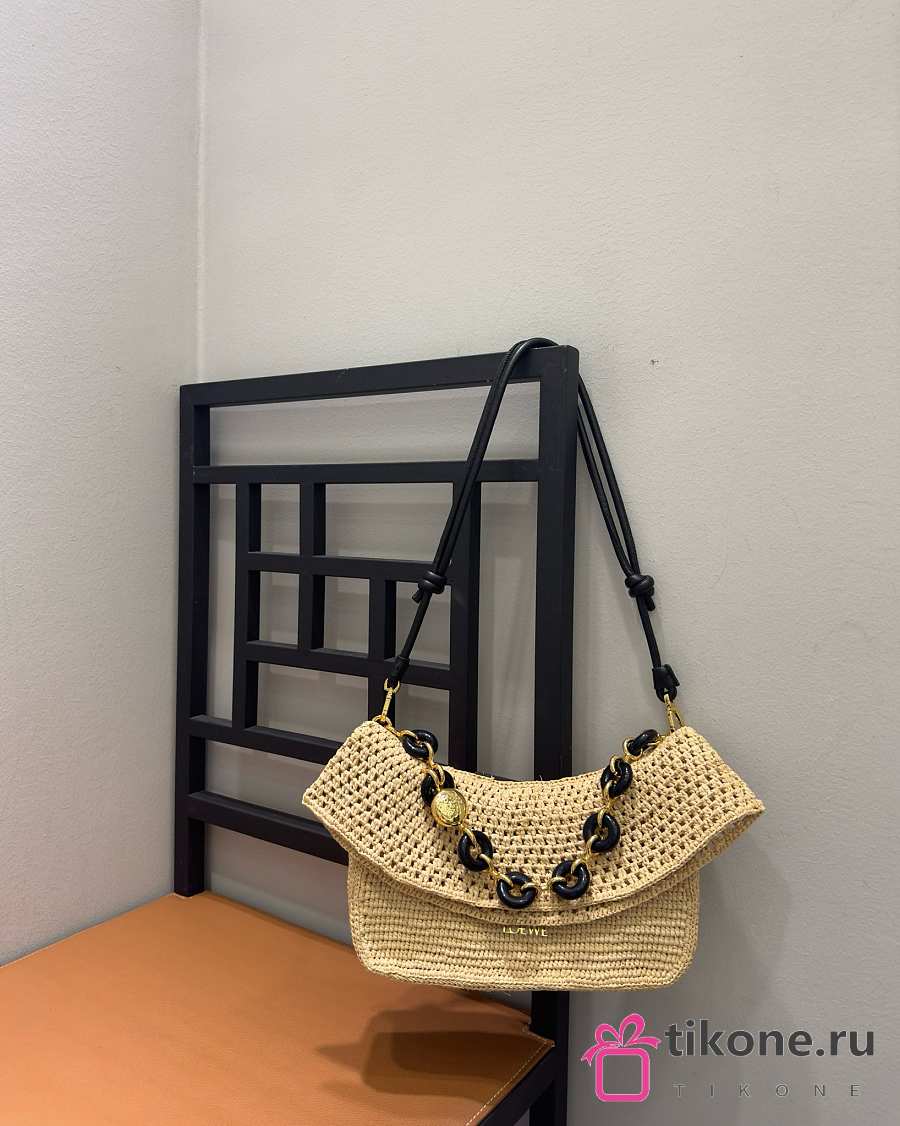 Loewe Medium Ola Bag In Raffia And Calfskin Beige - 26x18x13cm