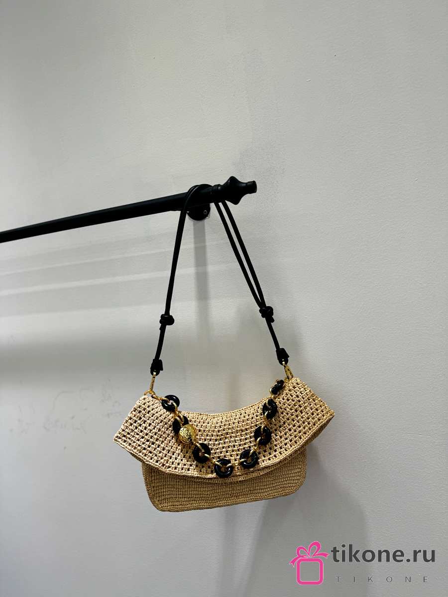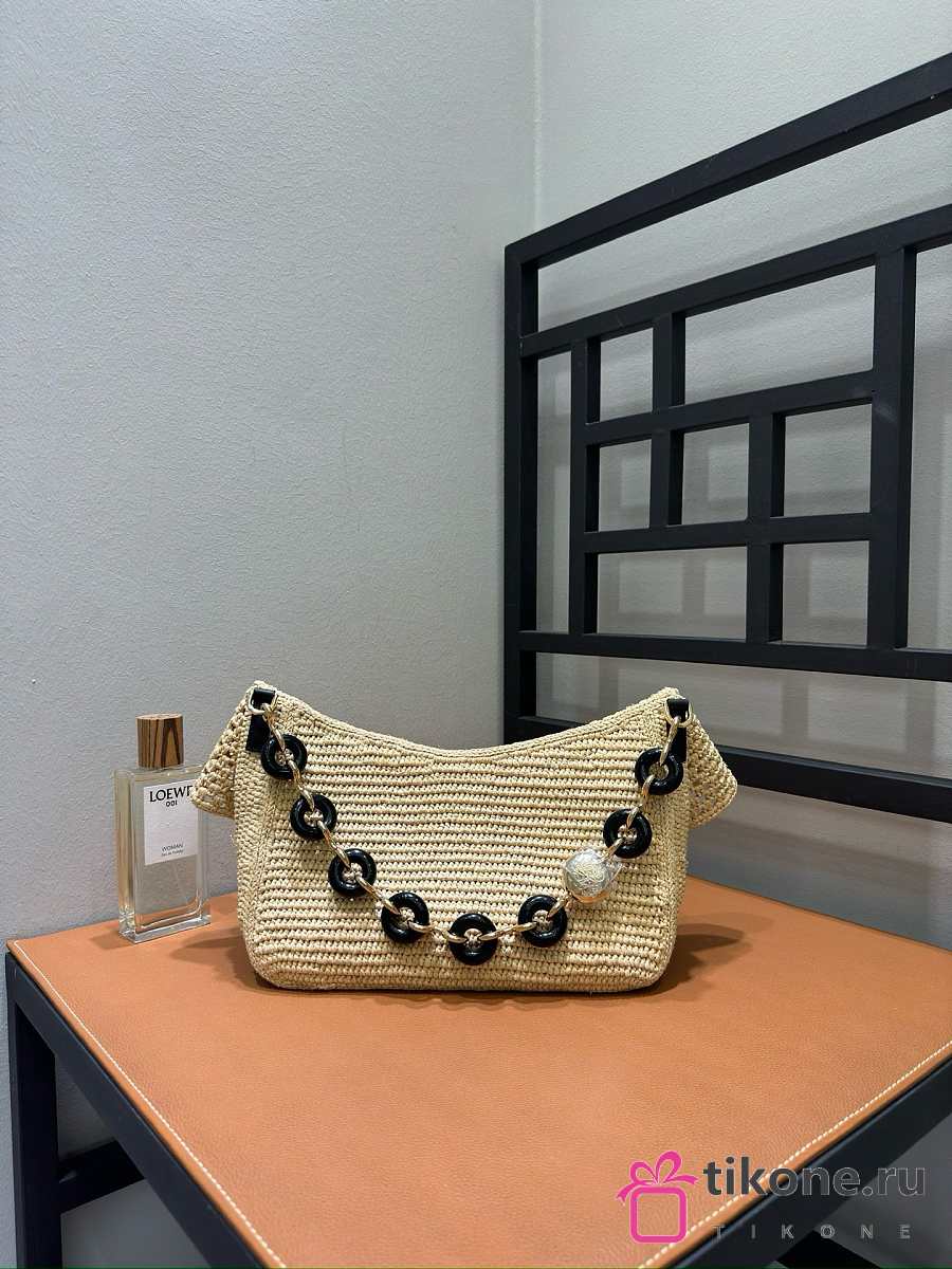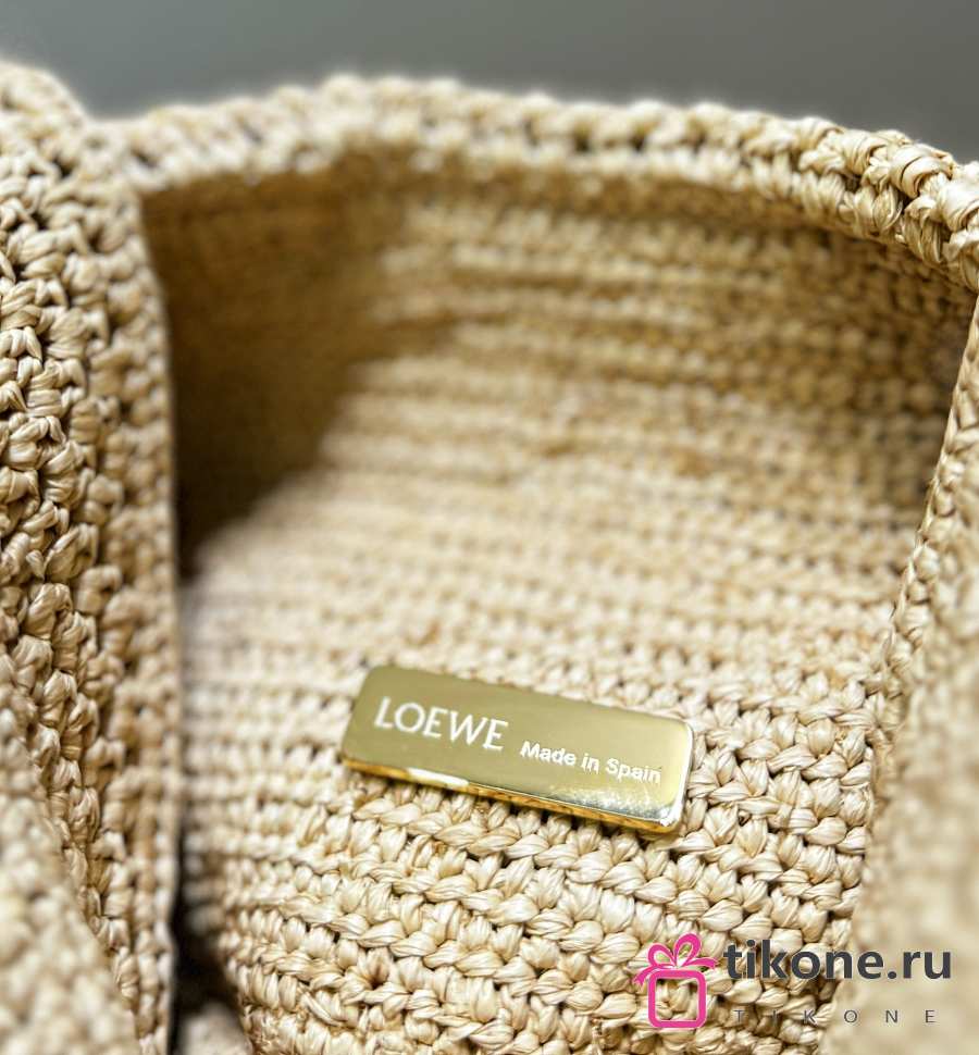 Loewe Medium Ola Bag In Raffia And Calfskin Beige - 26x18x13cm