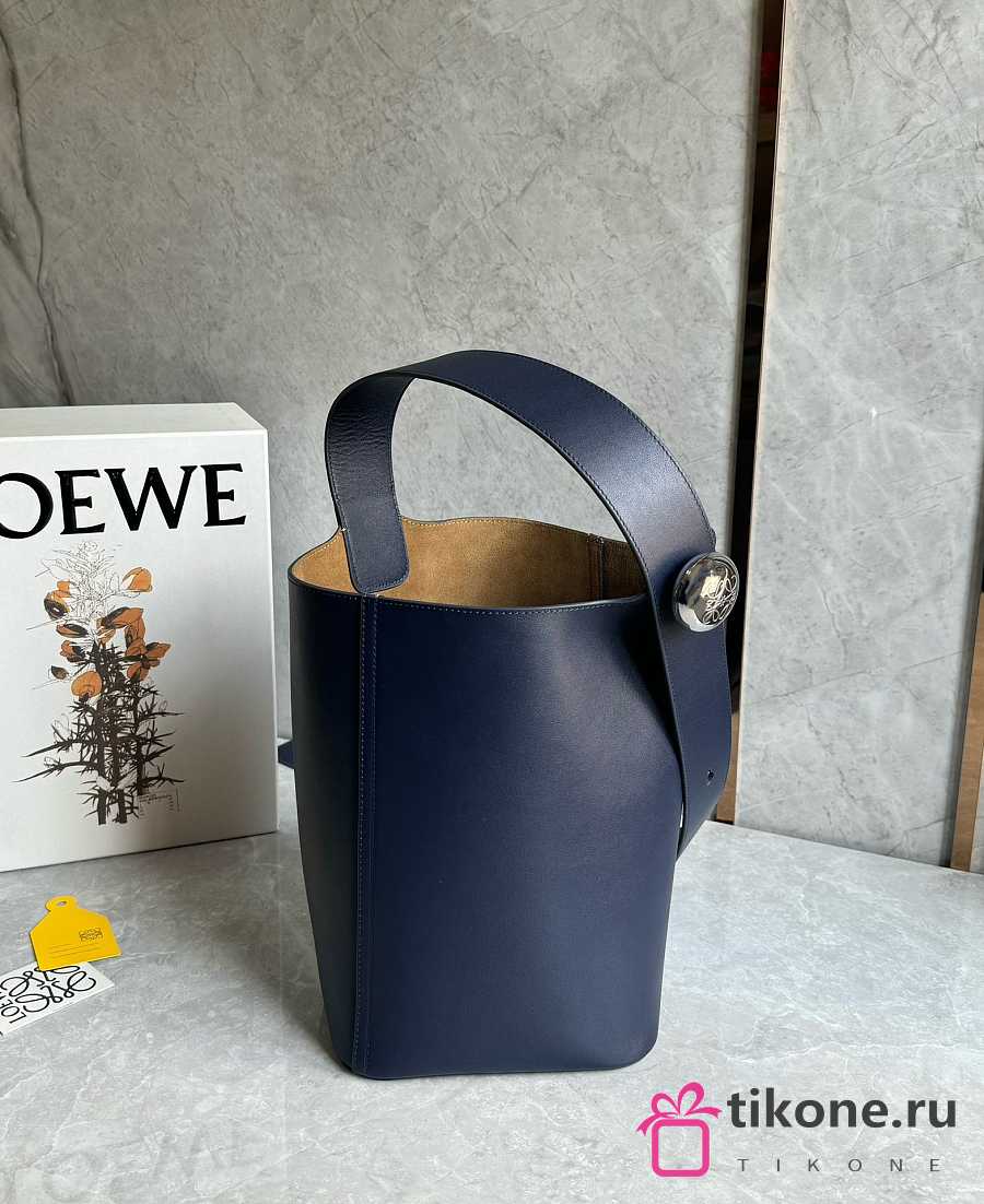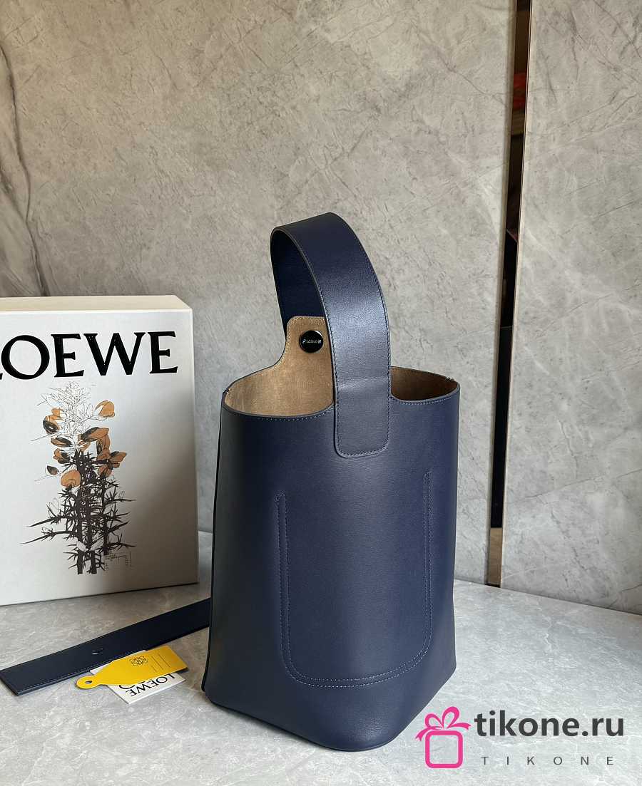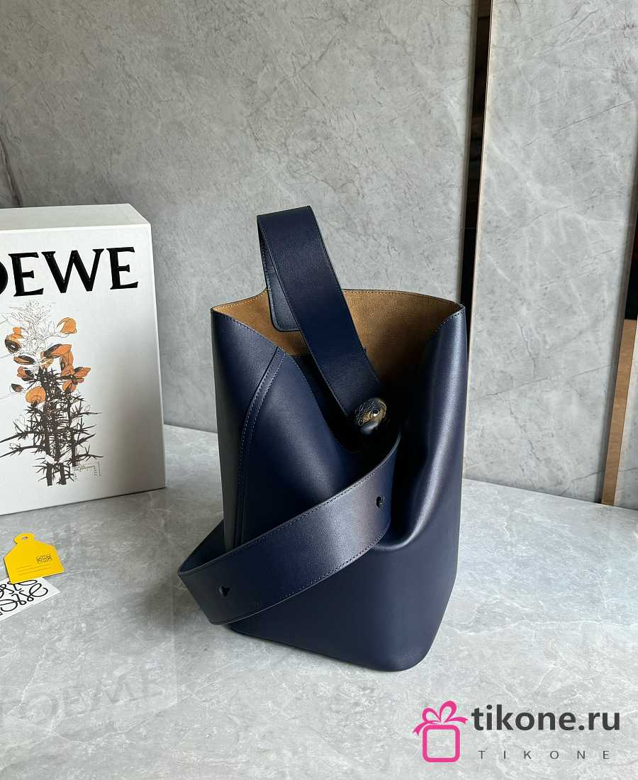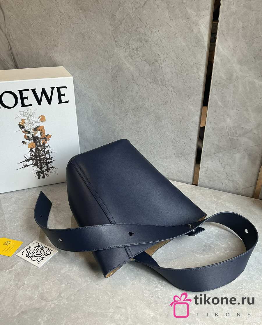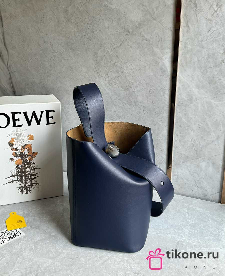 Loewe Medium Pebble Bucket In Smooth Calfskin Abyss Blue - 28x24.5x23.5cm