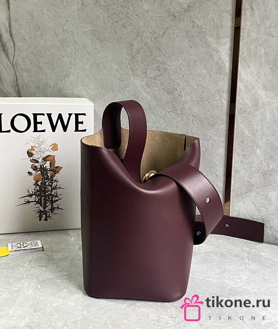 Loewe Medium Pebble Bucket In Smooth Calfskin Dark Burgundy - 28x24.5x23.5cm