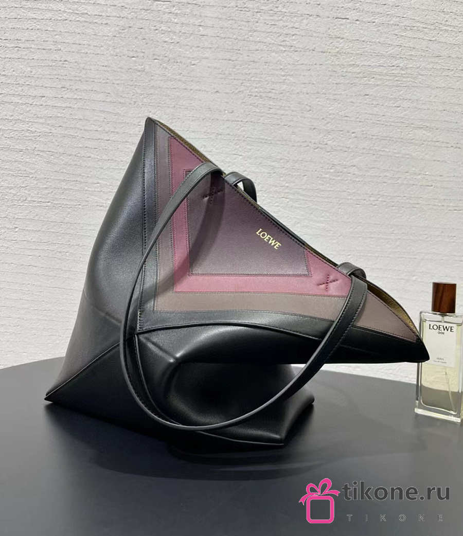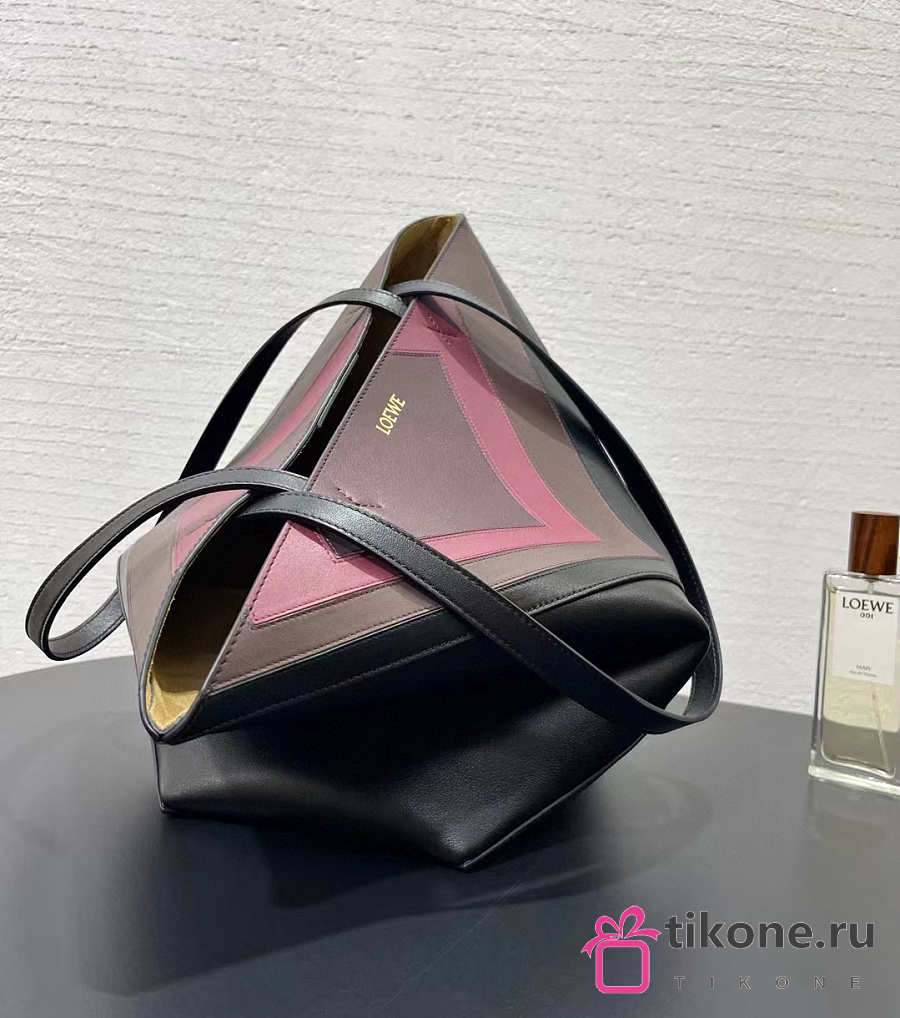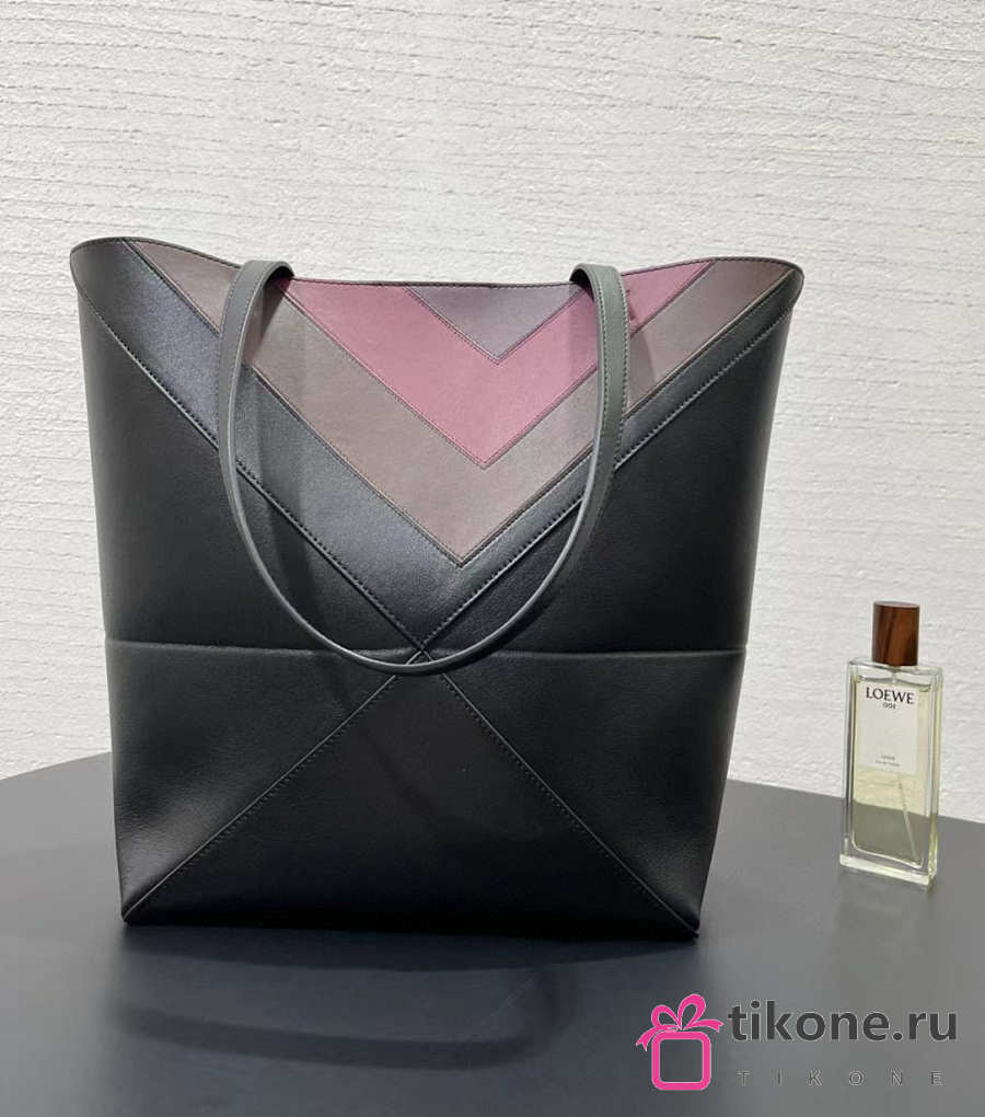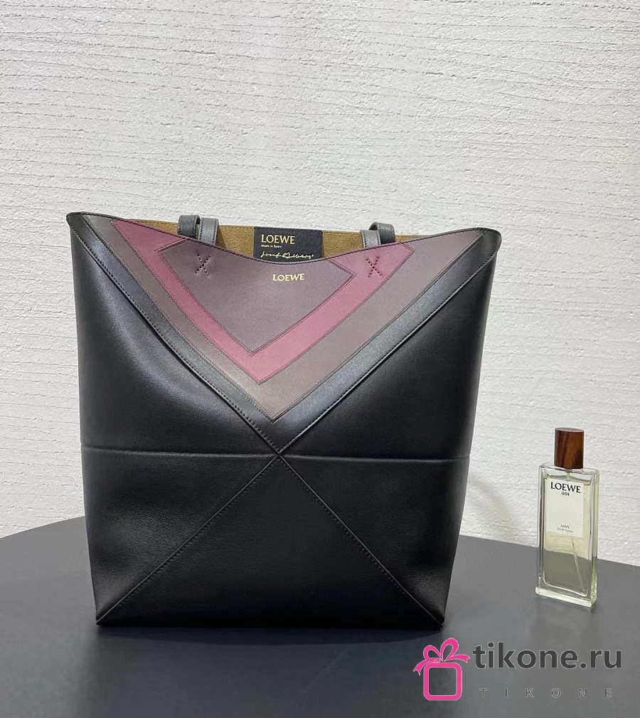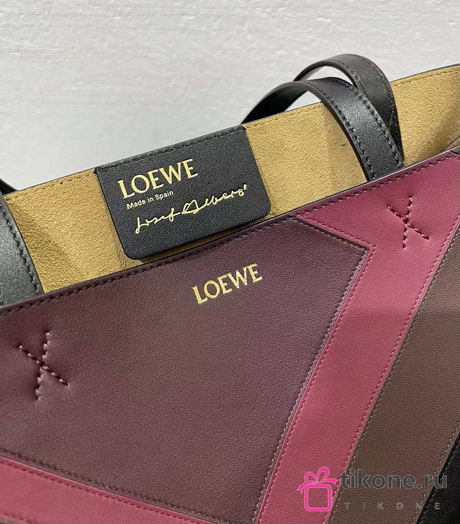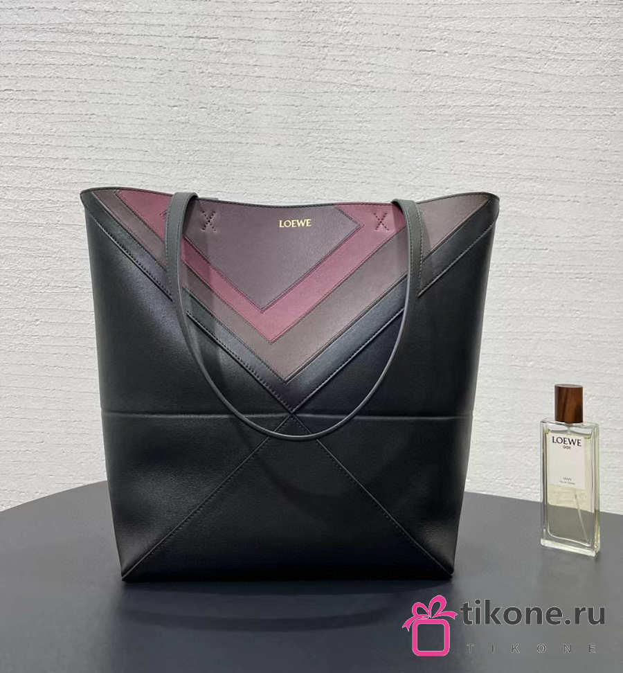Loewe Medium Puzzle Fold Tote in Nappa Calfskin Black/Burgundy - 31x24.5x15cm