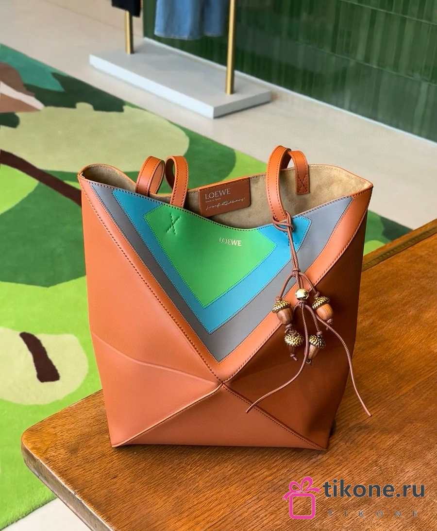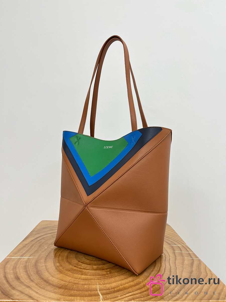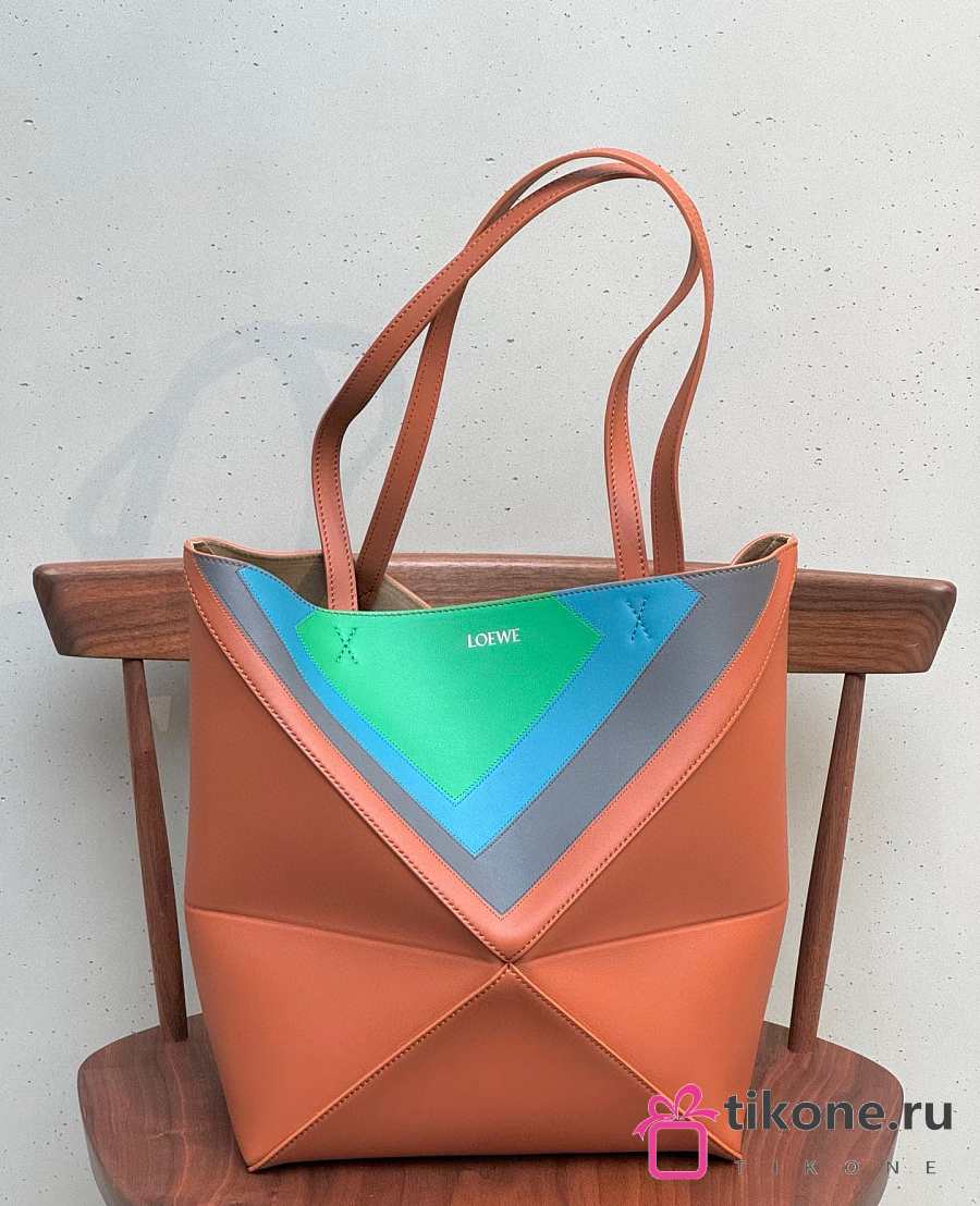 Loewe Medium Puzzle Fold Tote in Nappa Calfskin Caramel/Bright Green - 31x24.5x15cm