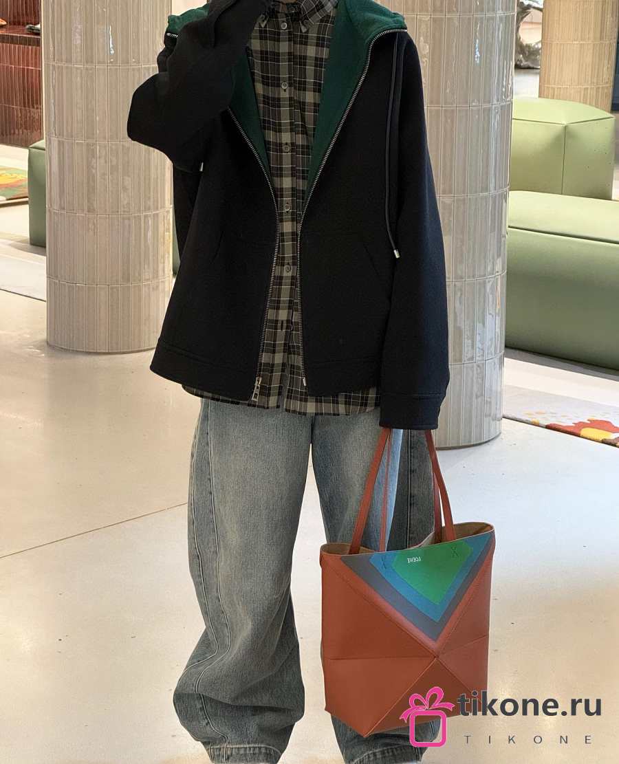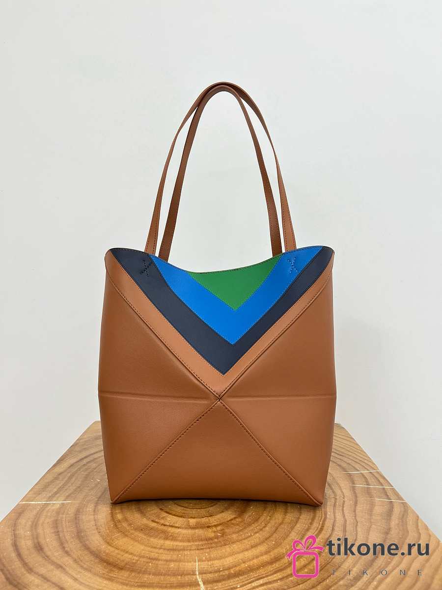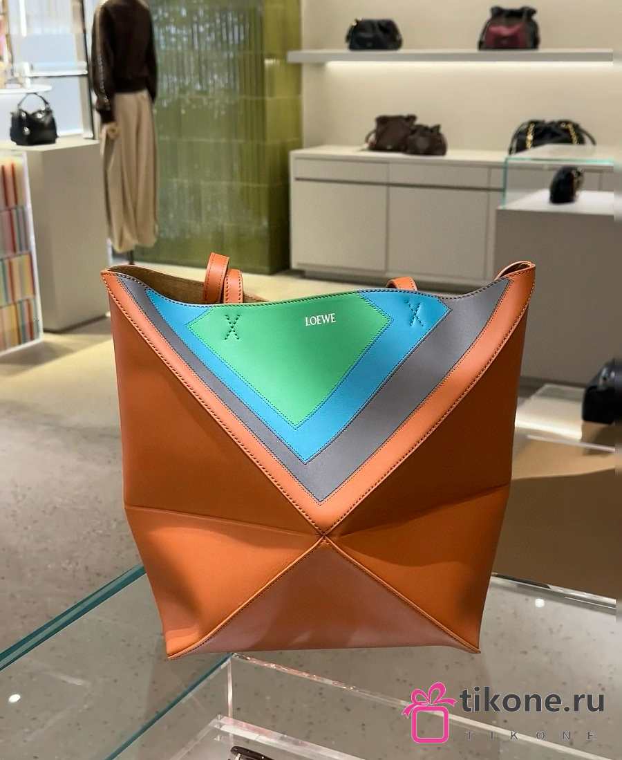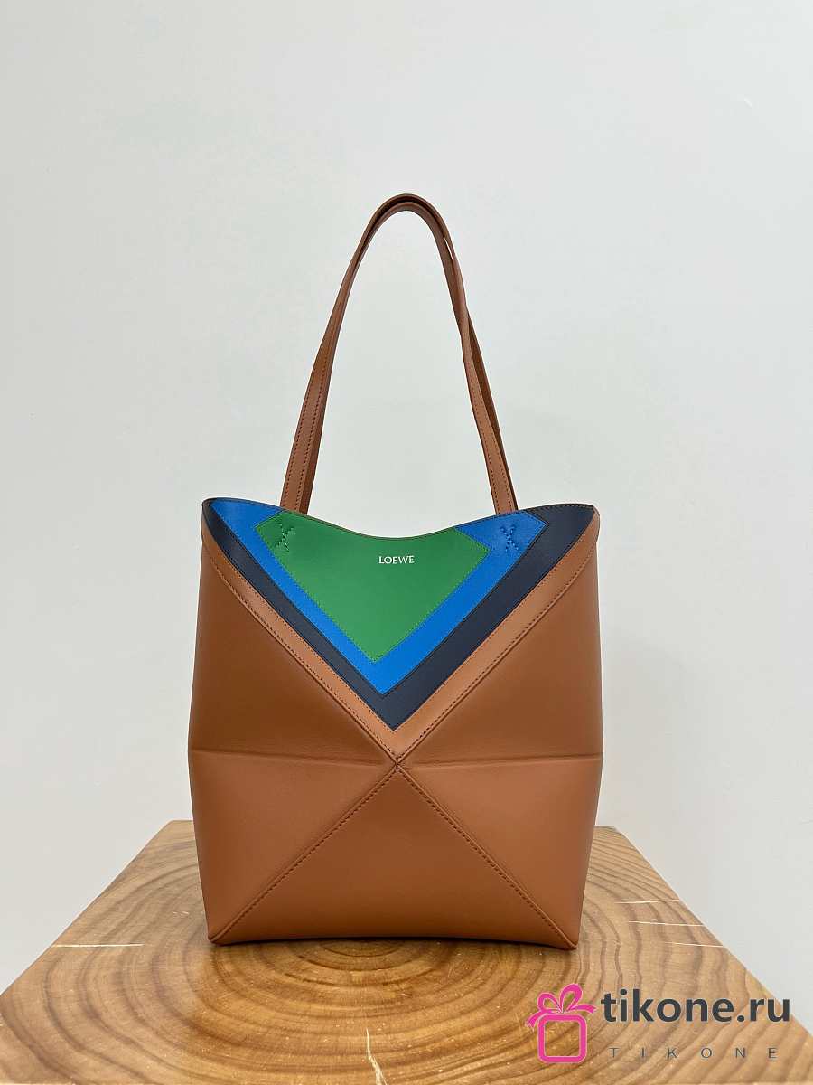 Loewe Medium Puzzle Fold Tote in Nappa Calfskin Caramel/Bright Green - 31x24.5x15cm