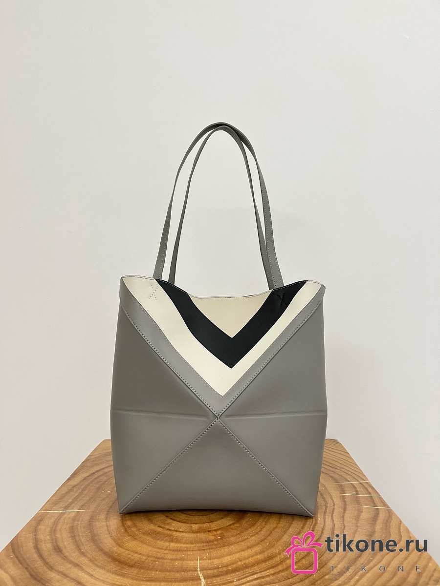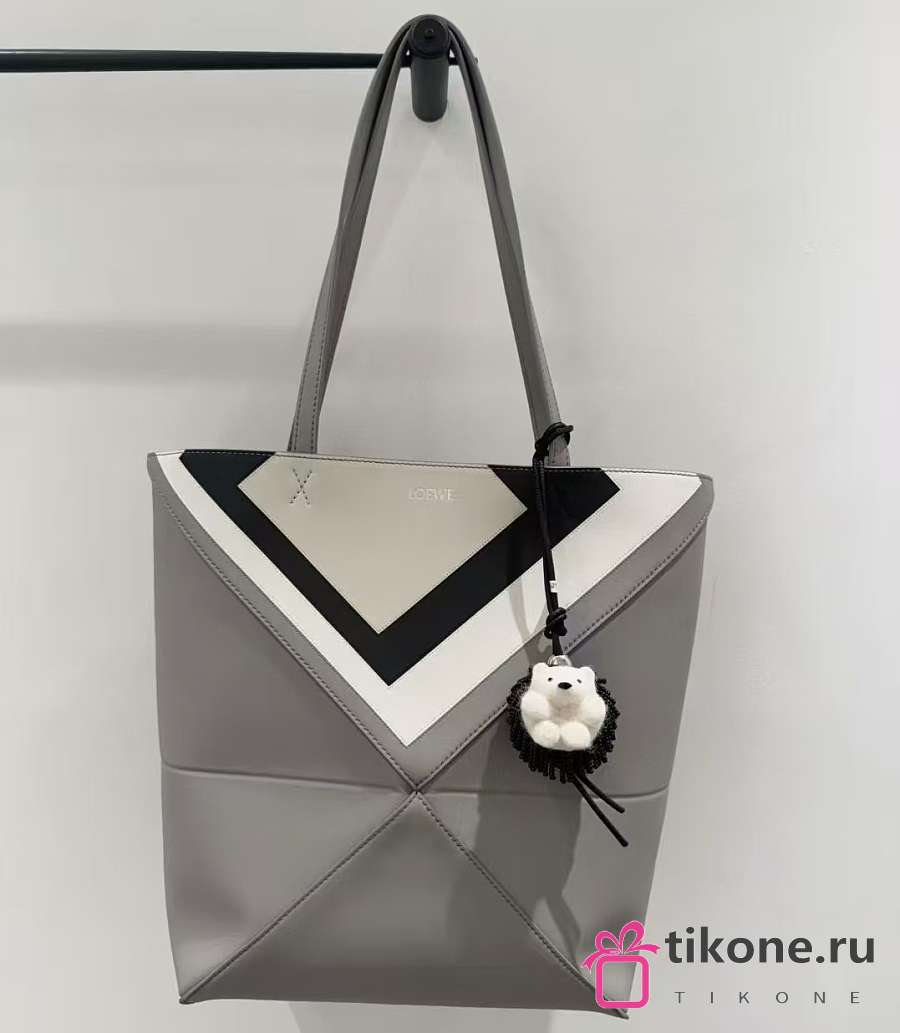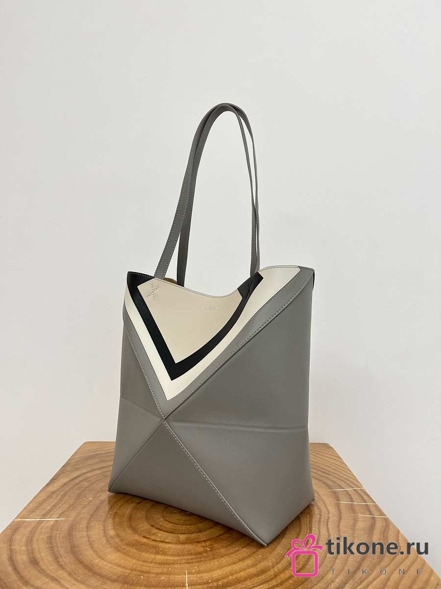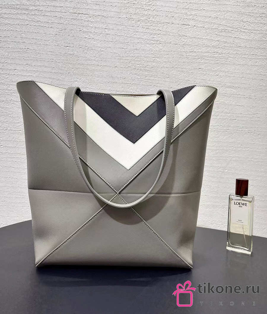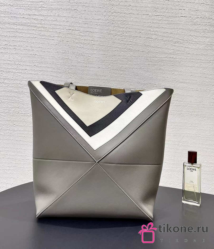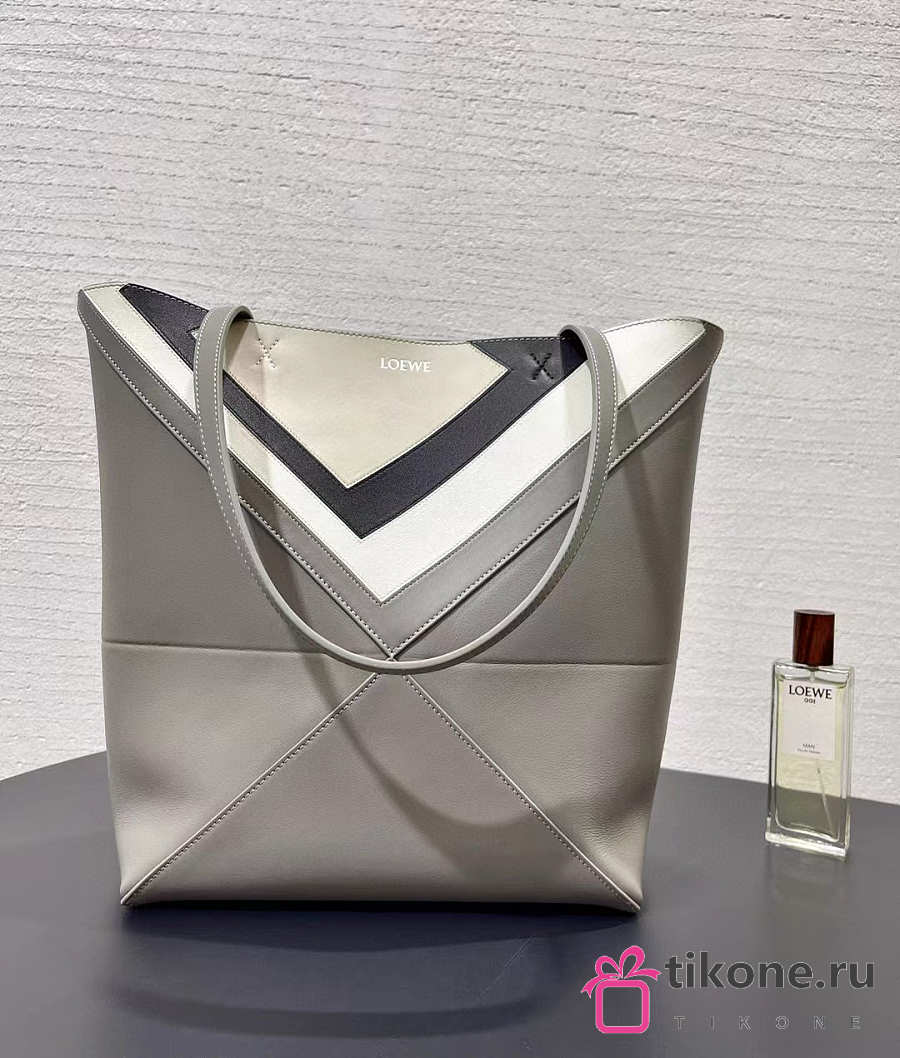 Loewe Medium Puzzle Fold Tote in Nappa Calfskin Grey/Light Ghost - 31x24.5x15cm