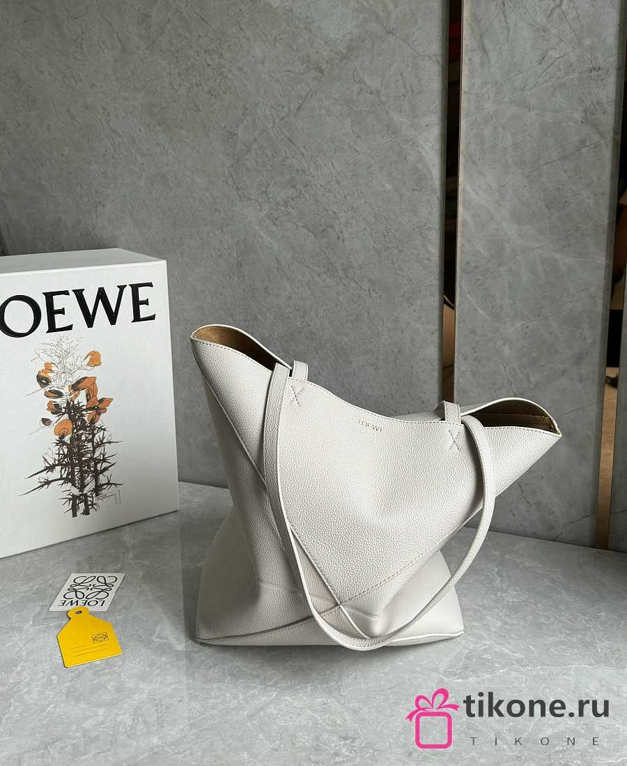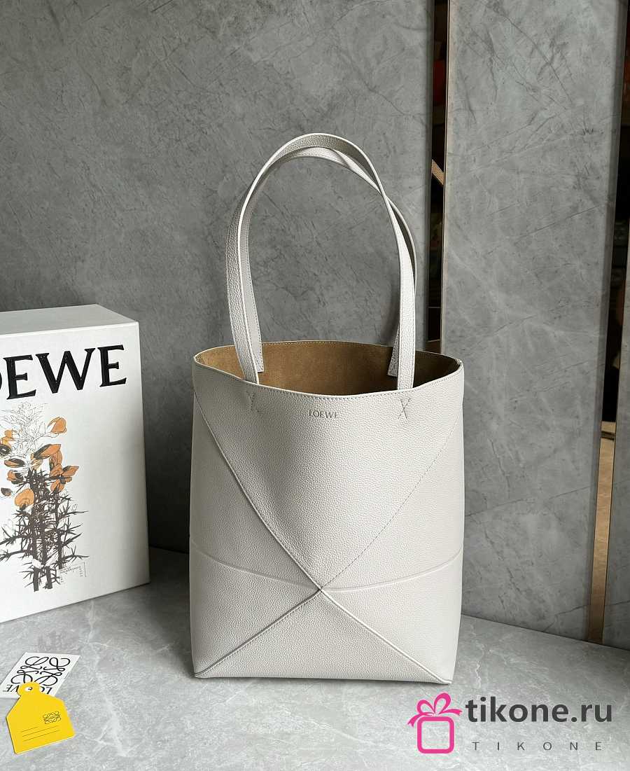 Loewe Medium Puzzle Fold Tote In Soft Grained Calfskin Gray - 31.5x25.5x14.5cm