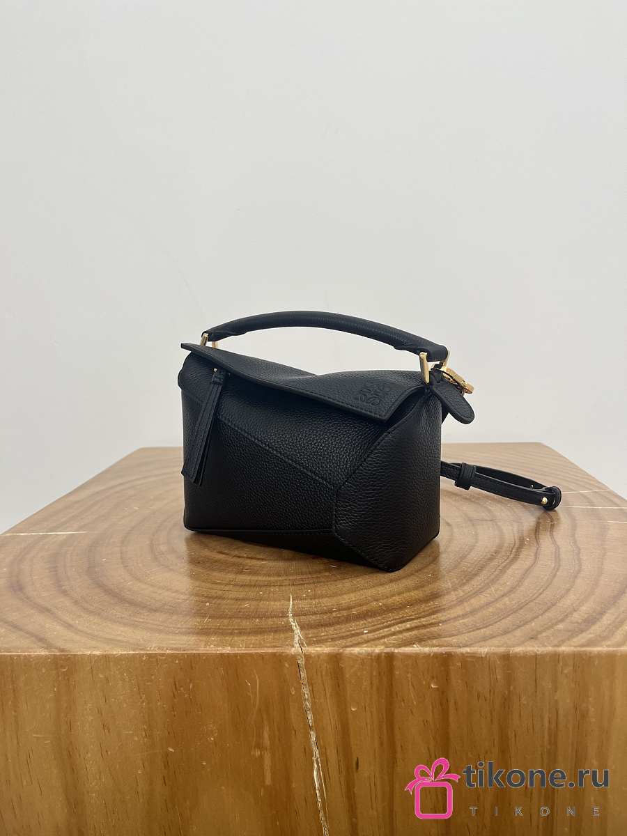 Loewe Mini Puzzle Edge Bag In Soft Grained Calfskin Black - 18x12.5x8cm