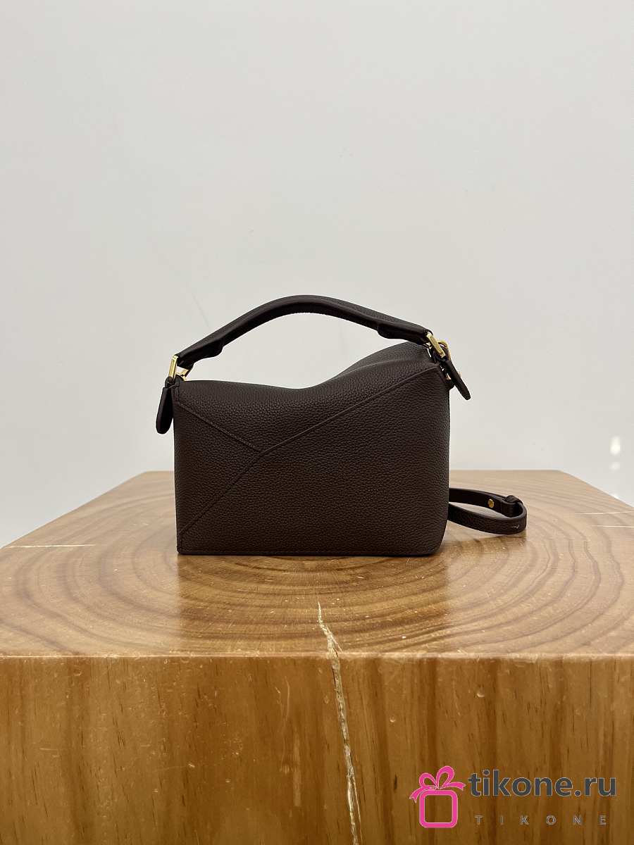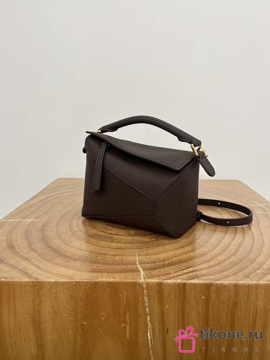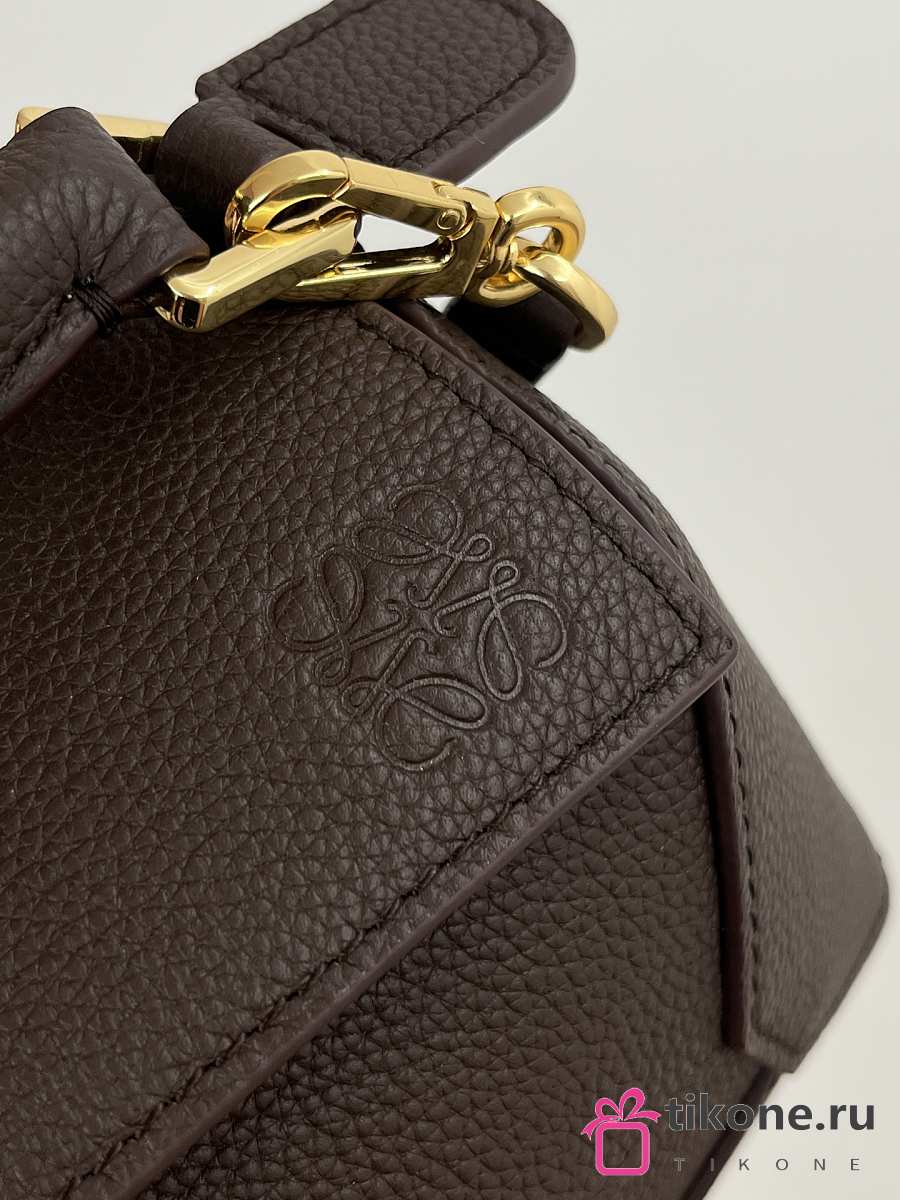 Loewe Mini Puzzle Edge Bag In Soft Grained Calfskin Chocolate - 18x12.5x8cm