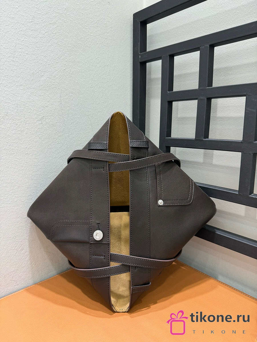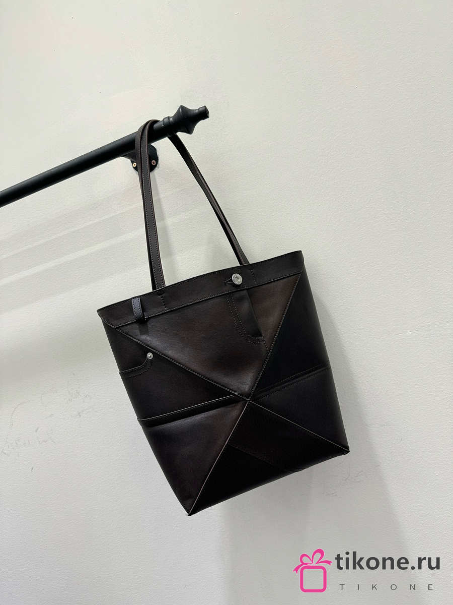 Loewe Panta Medium Puzzle Fold Tote In Shiny Calfskin Vintage Brown - 31.5x25.5x14.5cm