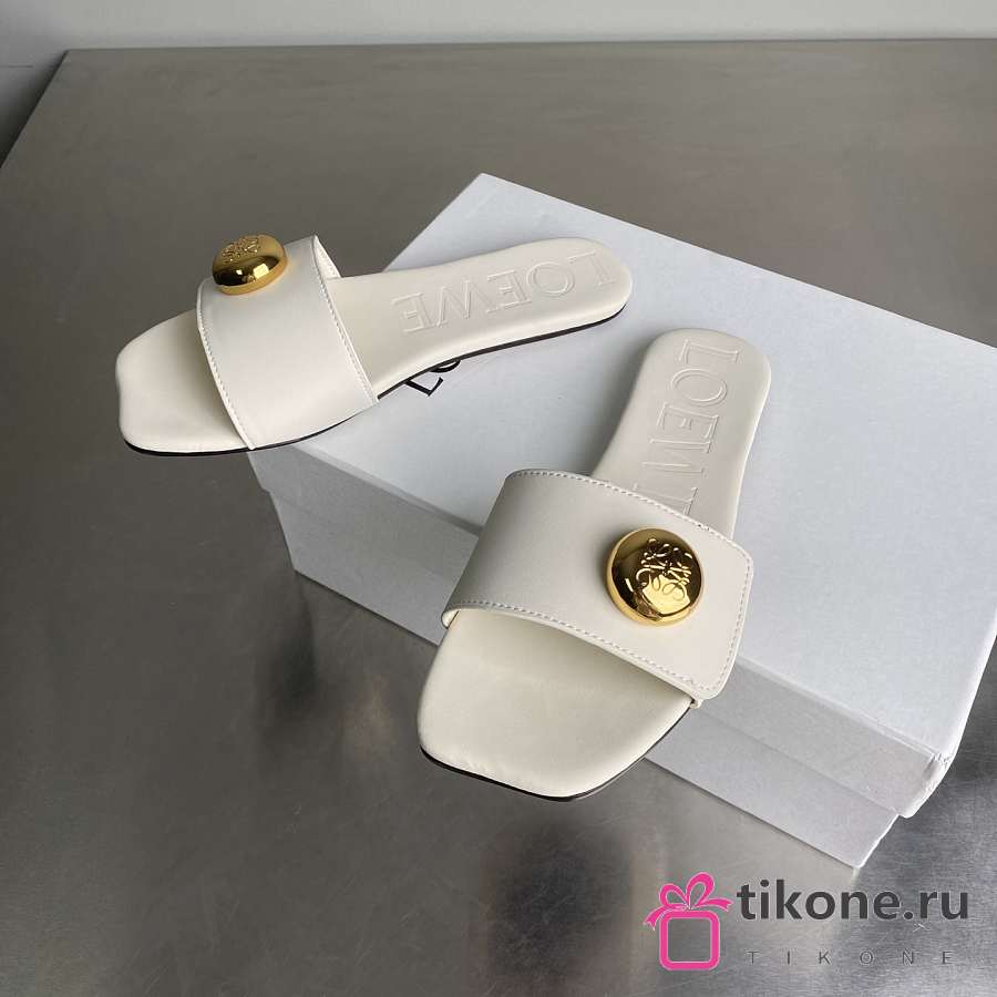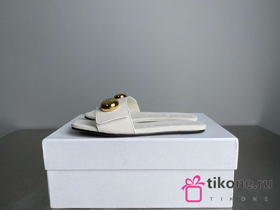 Loewe Pebble Slide In Soft Calfskin White/ Black/ Brown