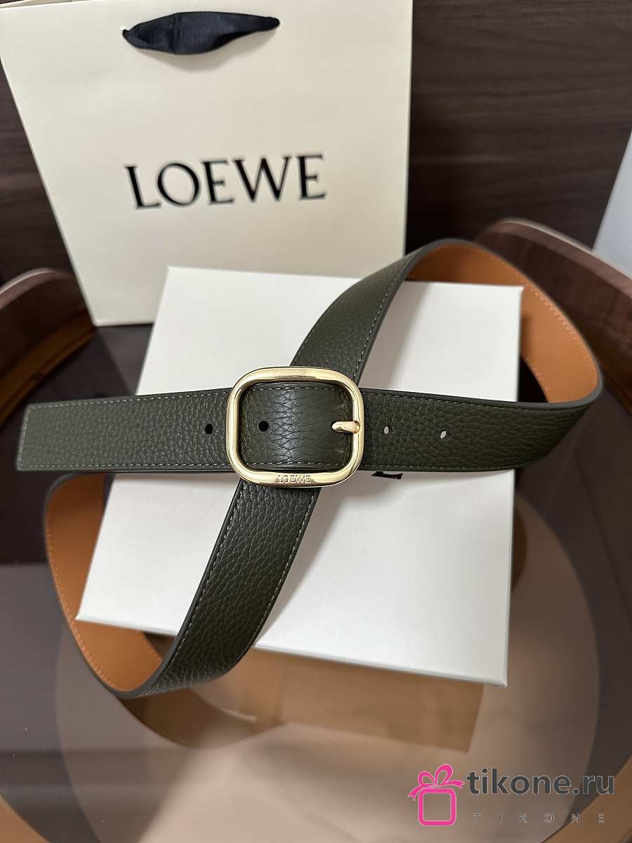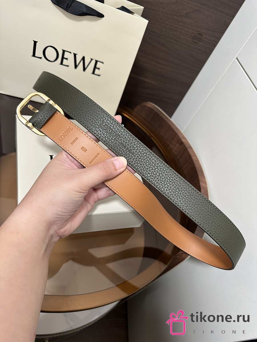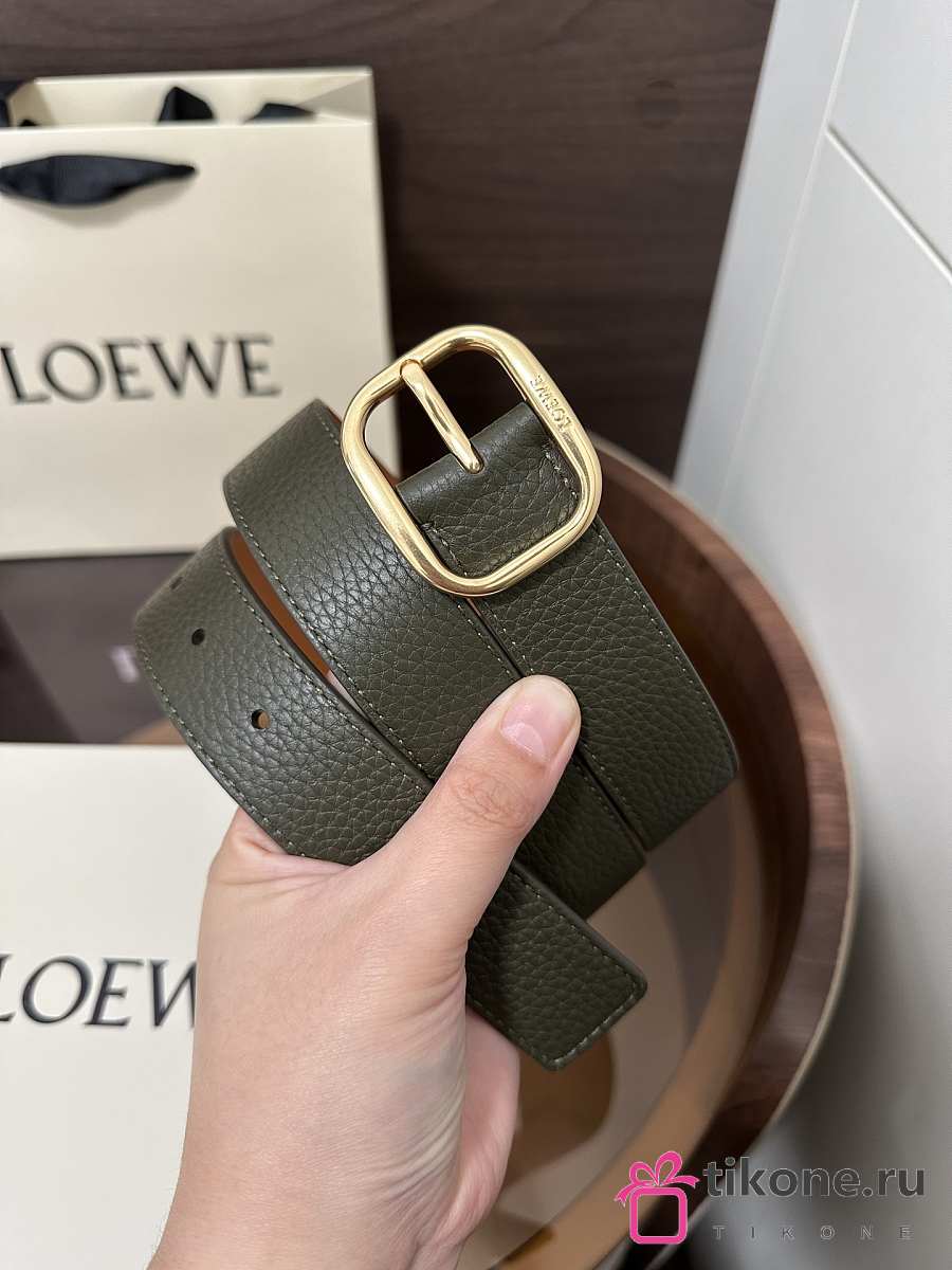 Loewe Rounded Soft Belt In Supple Grained Calfskin Khaki/Gold 3.5cm