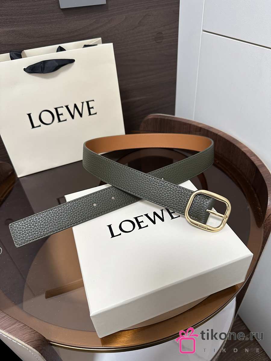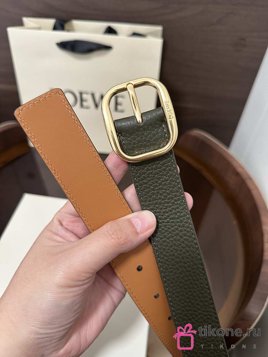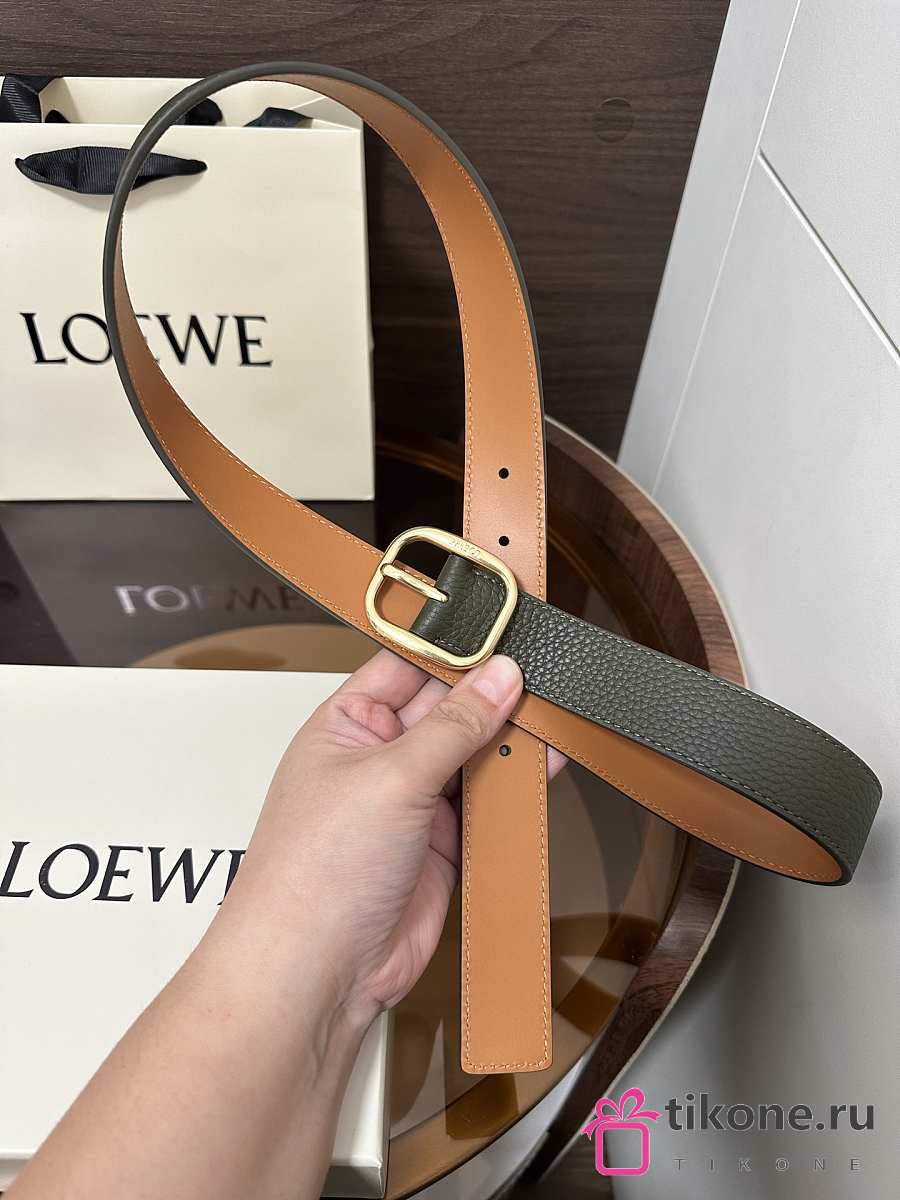 Loewe Rounded Soft Belt In Supple Grained Calfskin Khaki/Gold 3.5cm