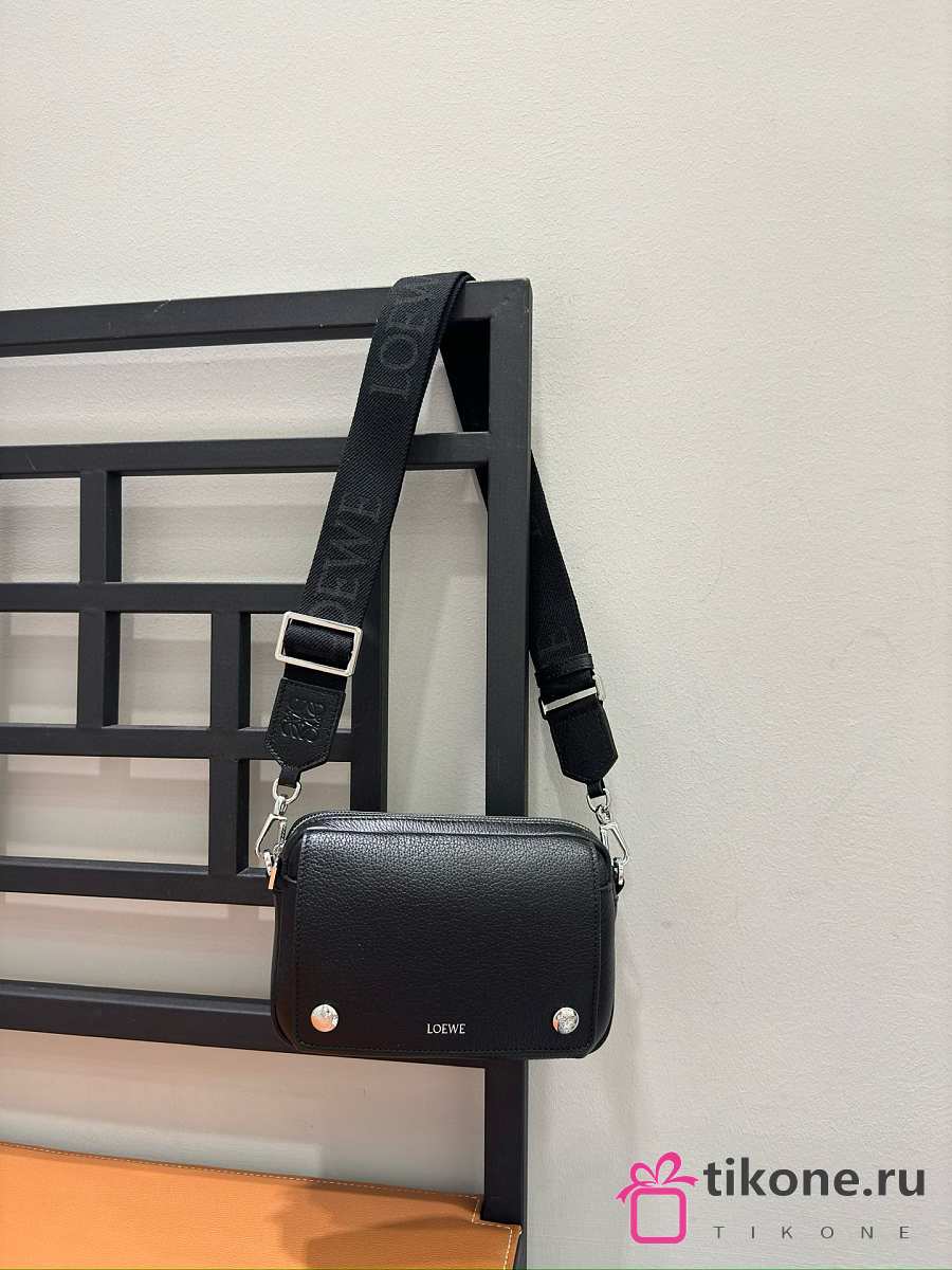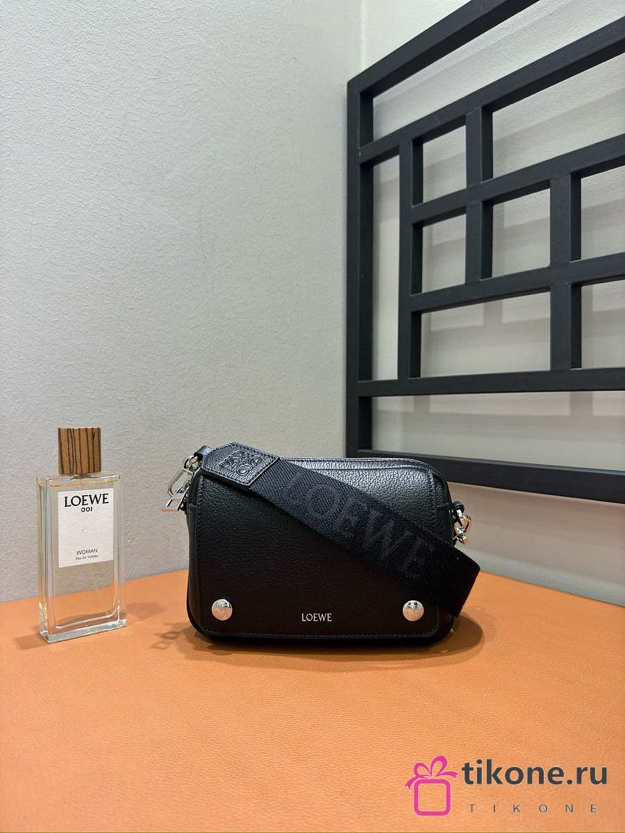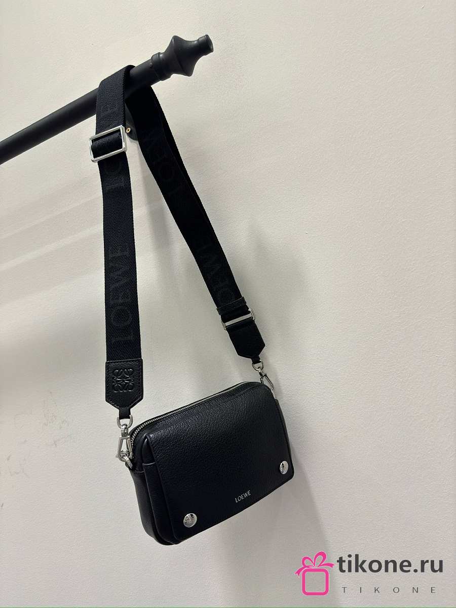 Loewe Small Pebble Messenger Bag In Supple Grained Calfskin Black - 20x12.5x6cm