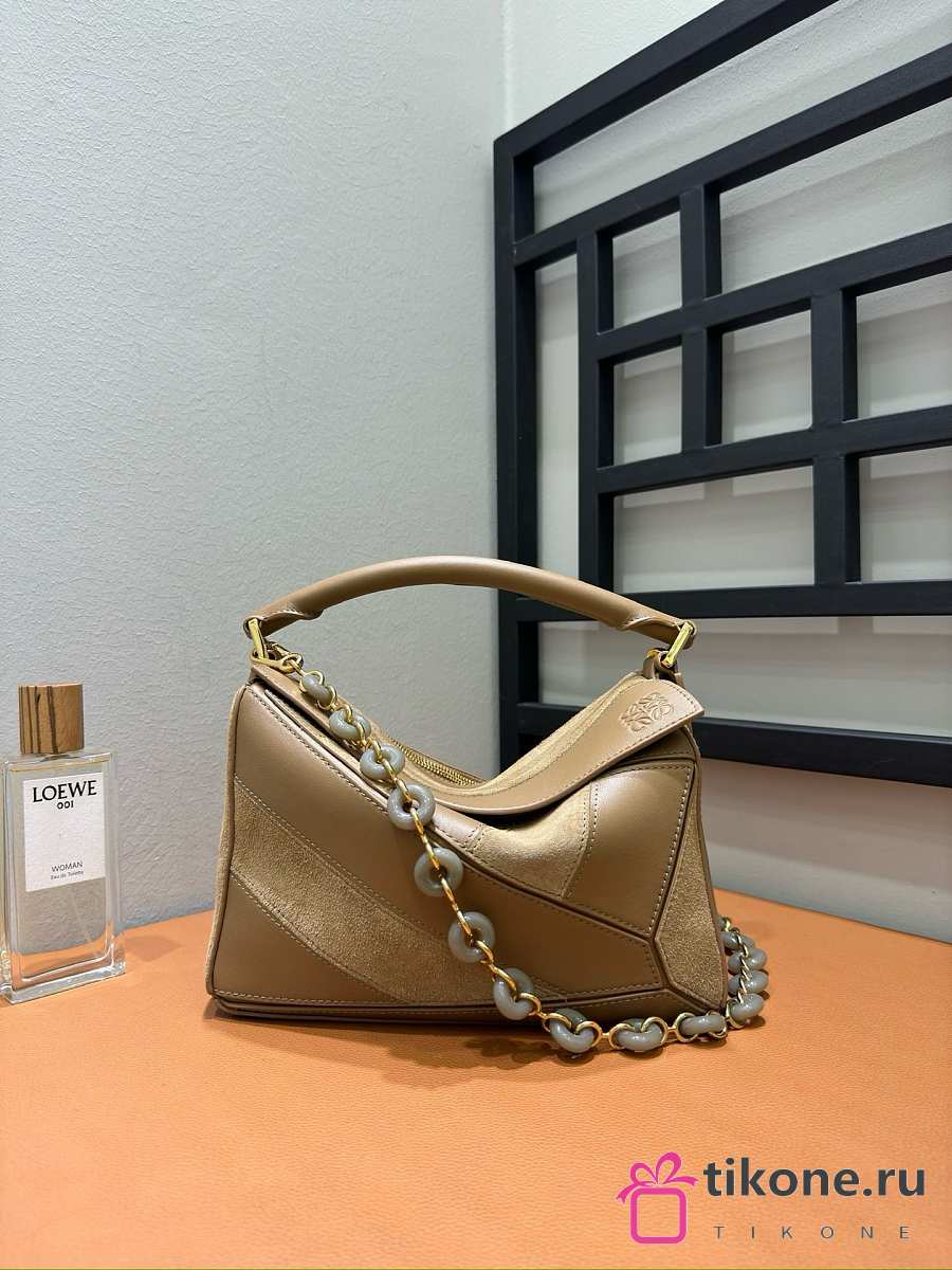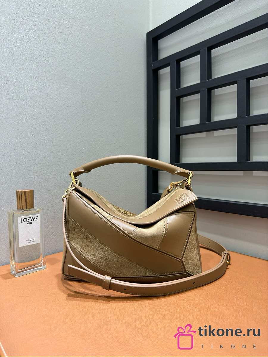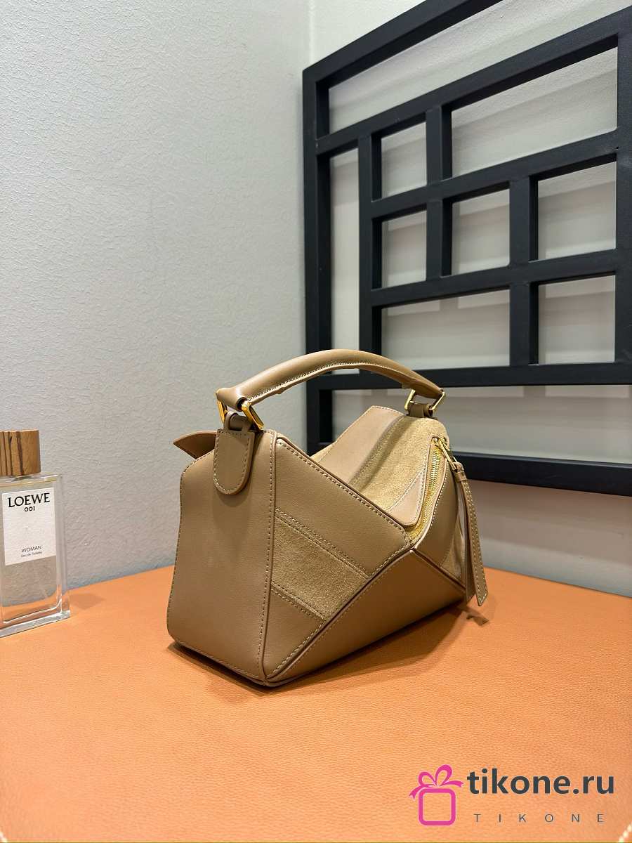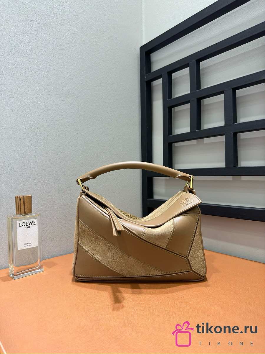 Loewe Small Puzzle Bag In Classic Calfskin And Suede Oak - 24x16.5x10.5cm