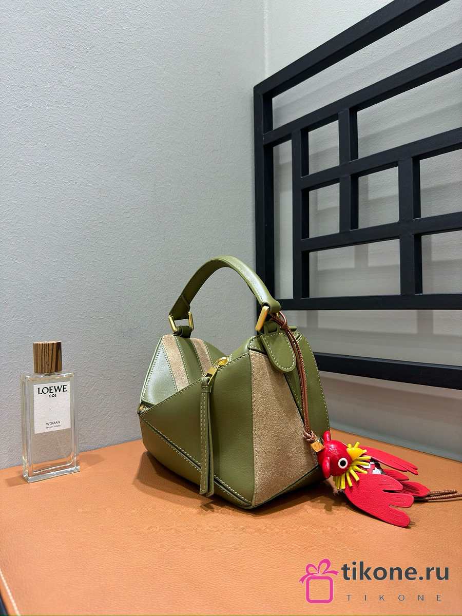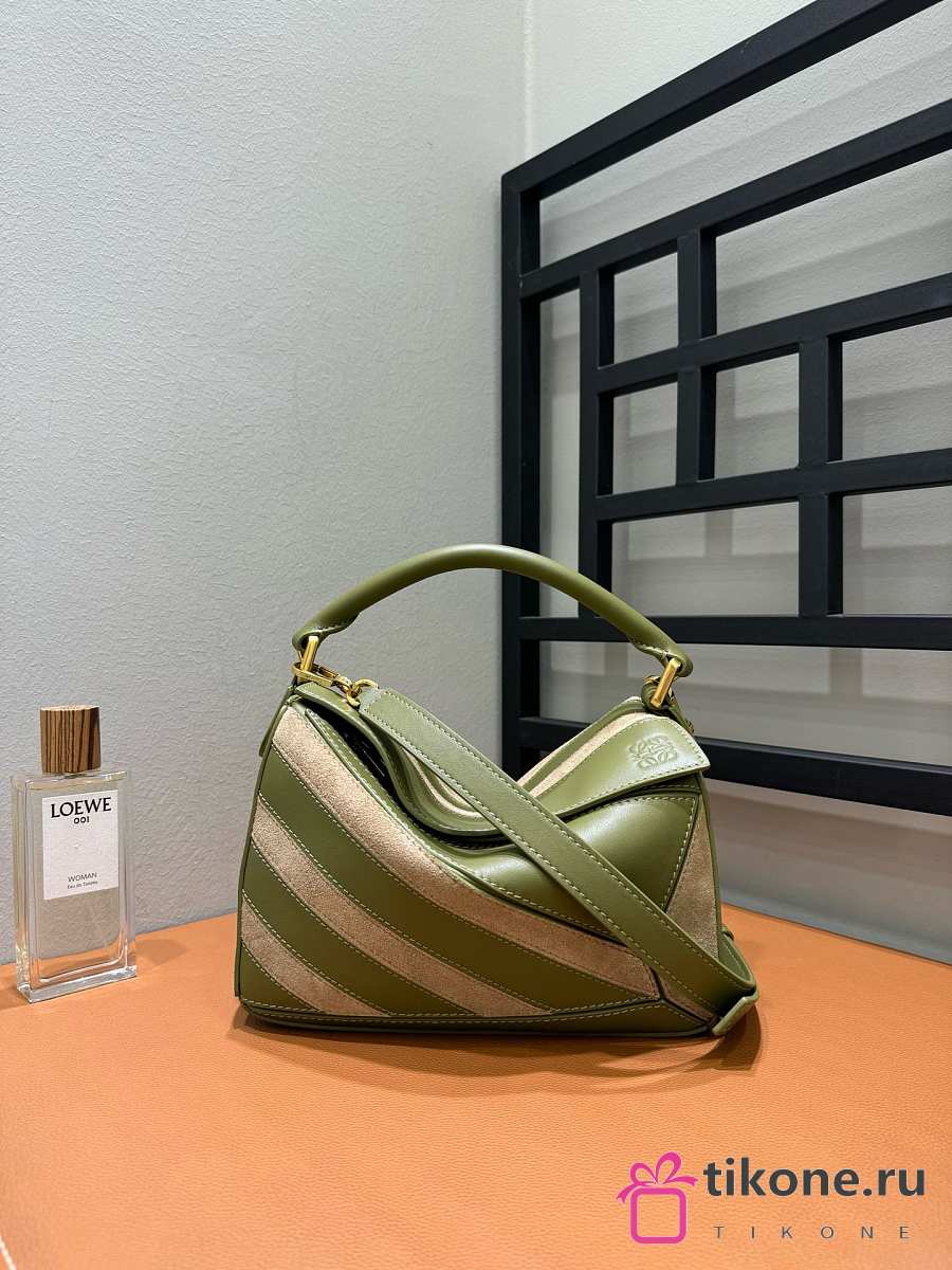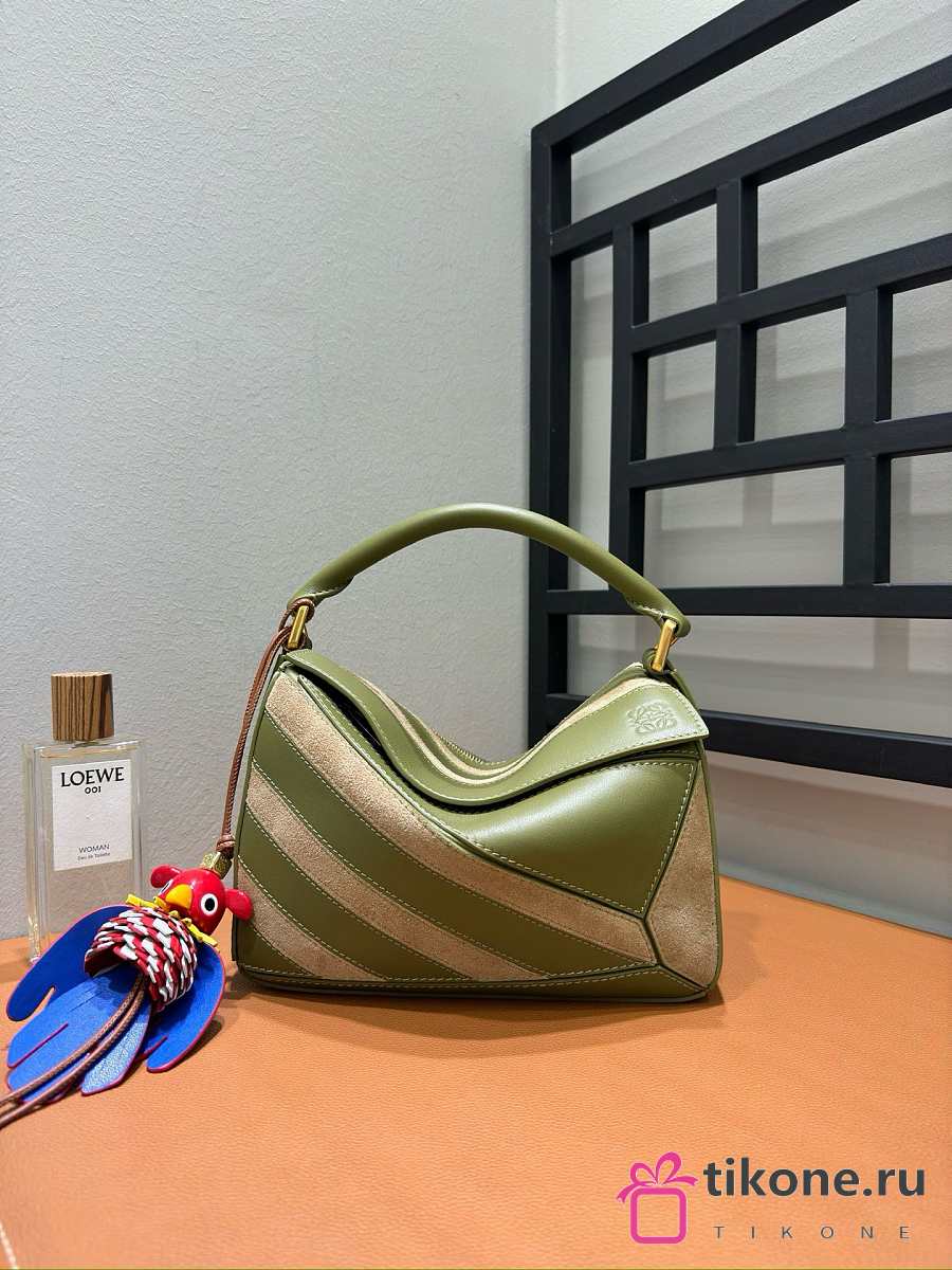 Loewe Small Puzzle Bag In Classic Calfskin And Suede Olive/Gold - 24x16.5x10.5cm