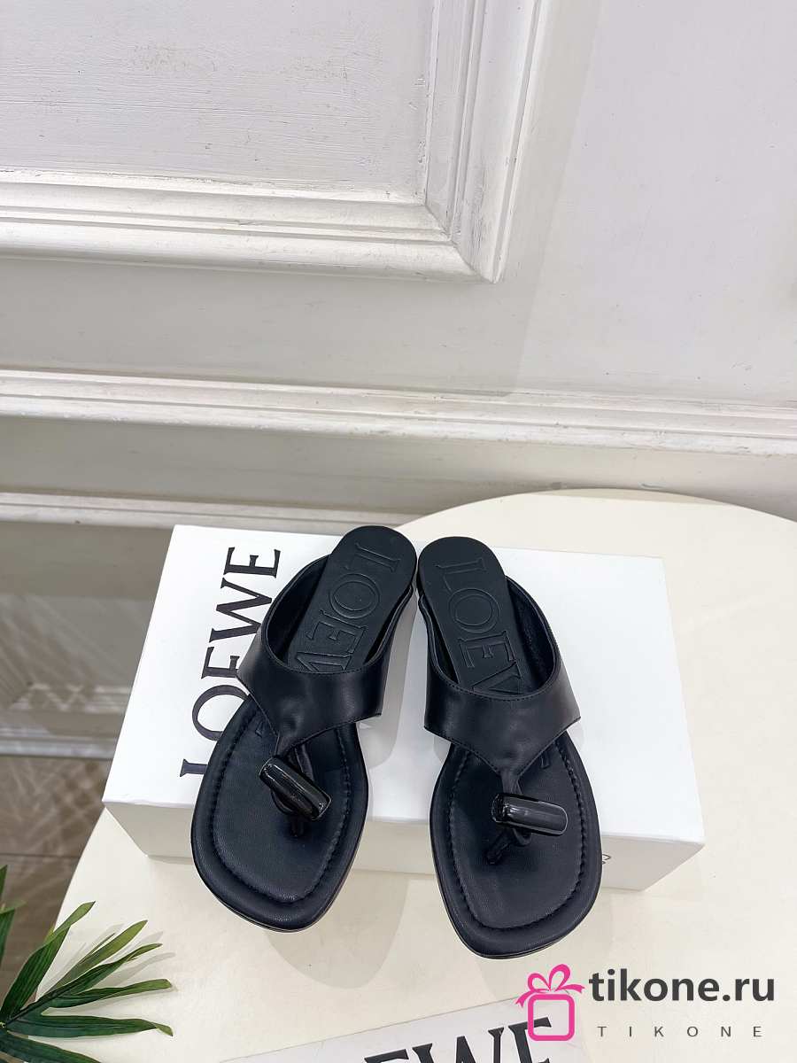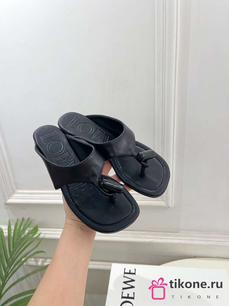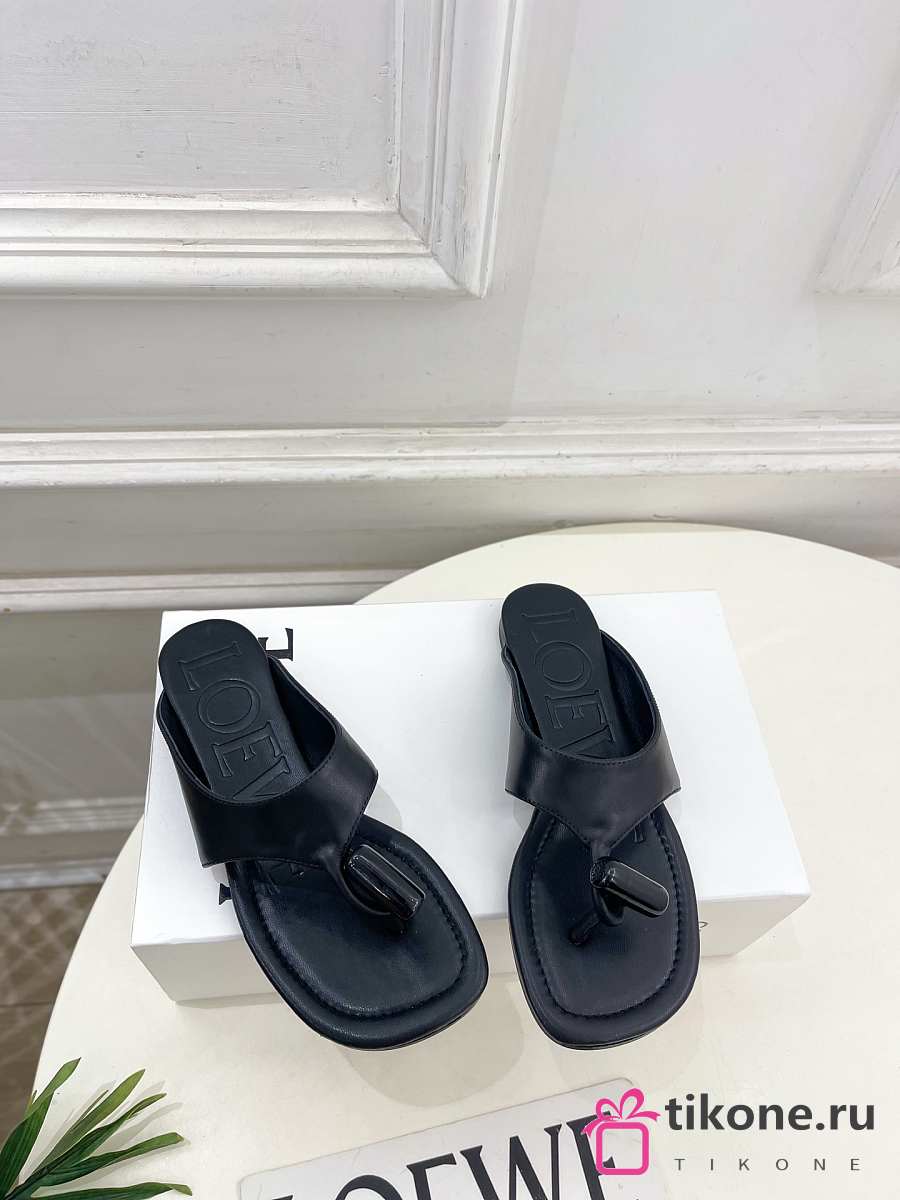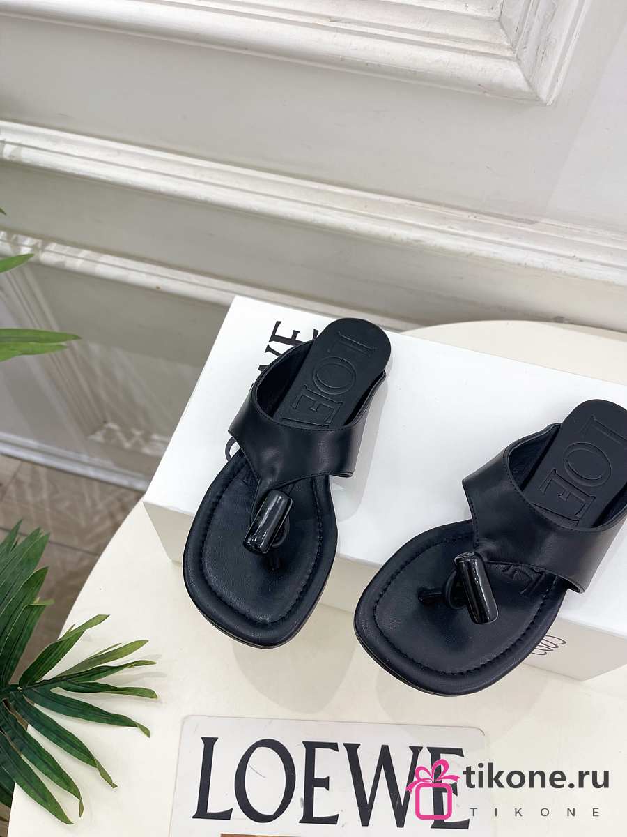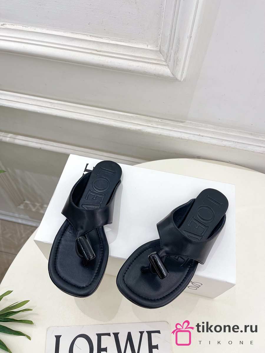 Loewe Toggle Flat Sandal In Shiny Smoot Calfskin Black