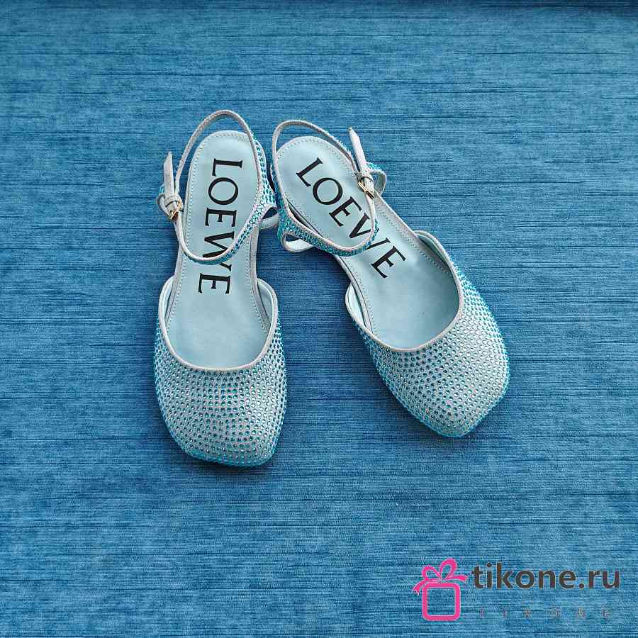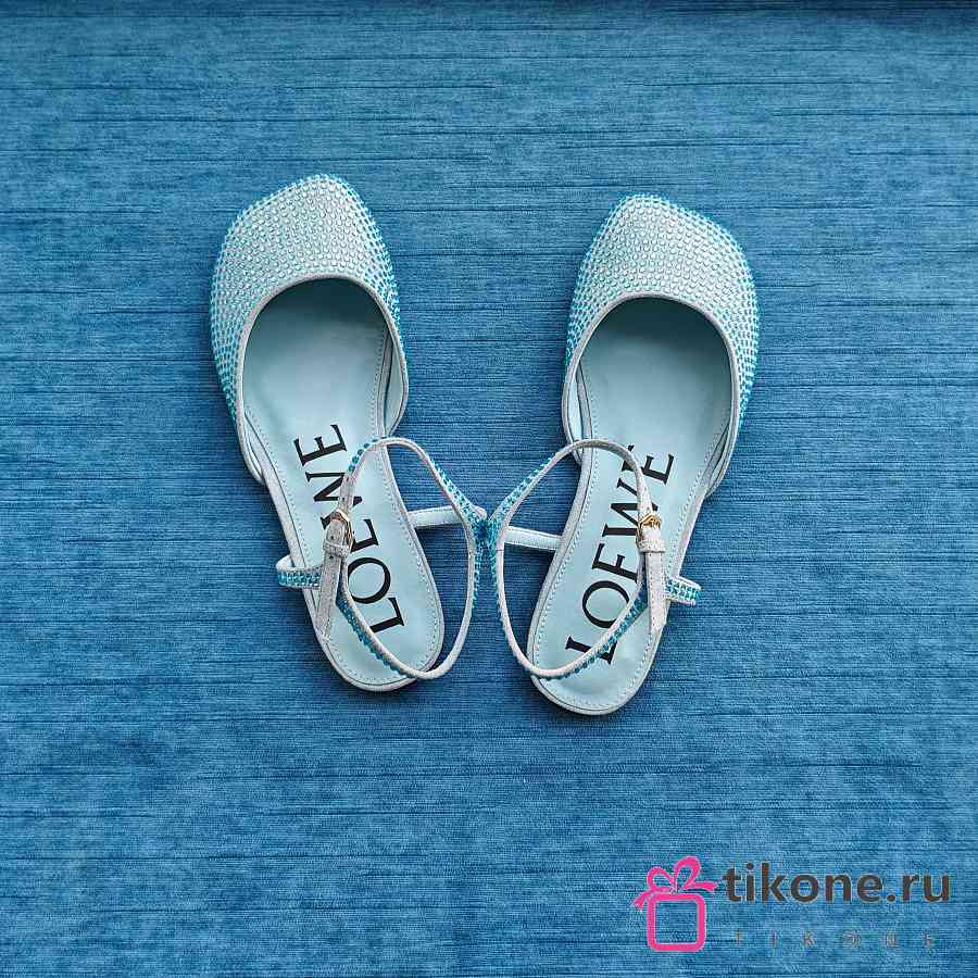 Loewe Toy Ankle Strap Ballerina In Rhinestone Embellished Suede Blue