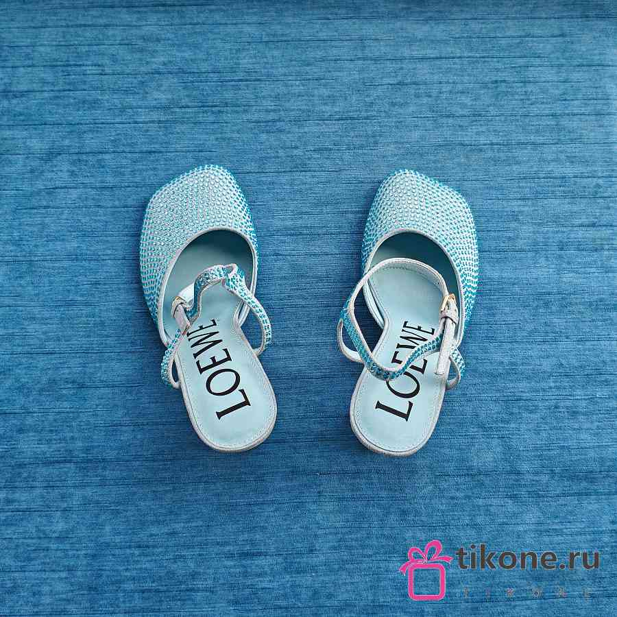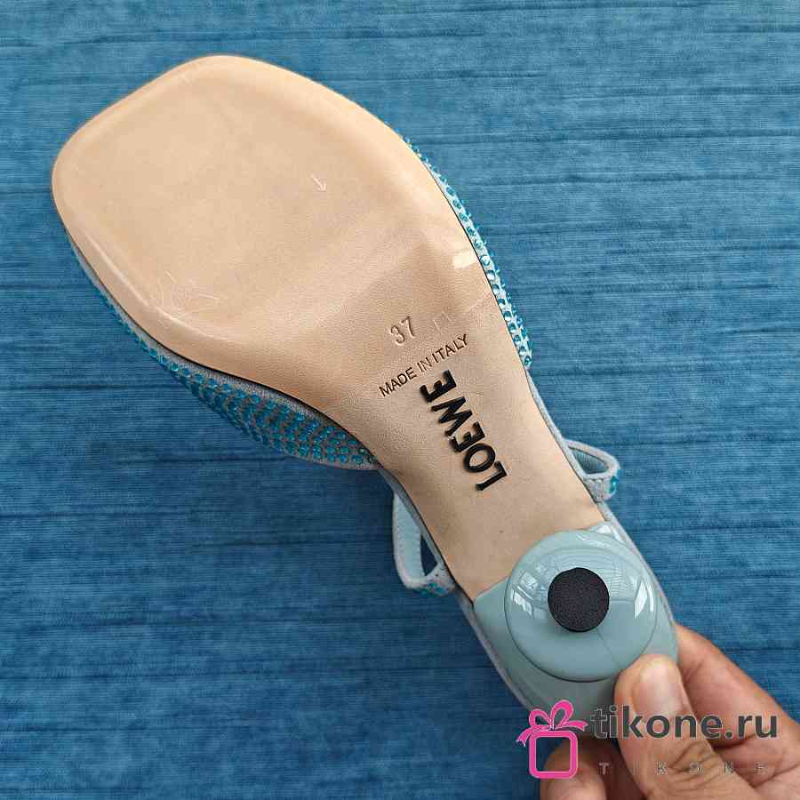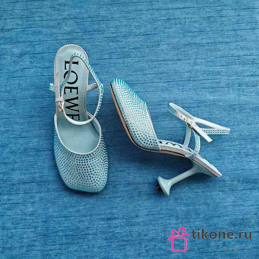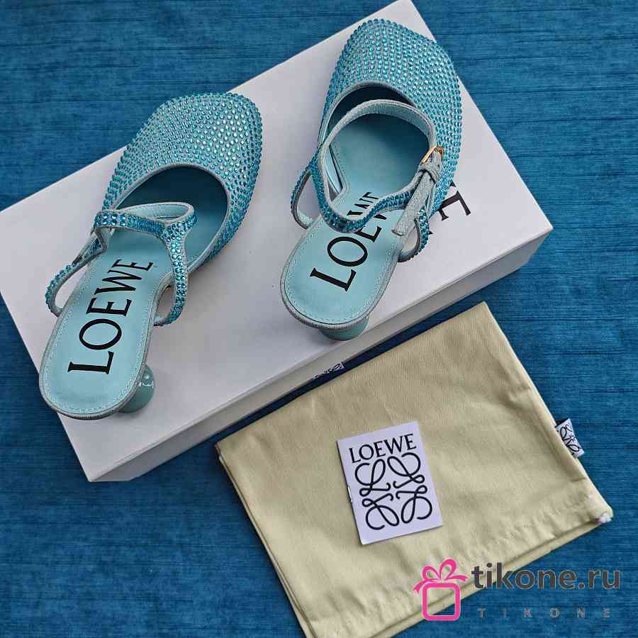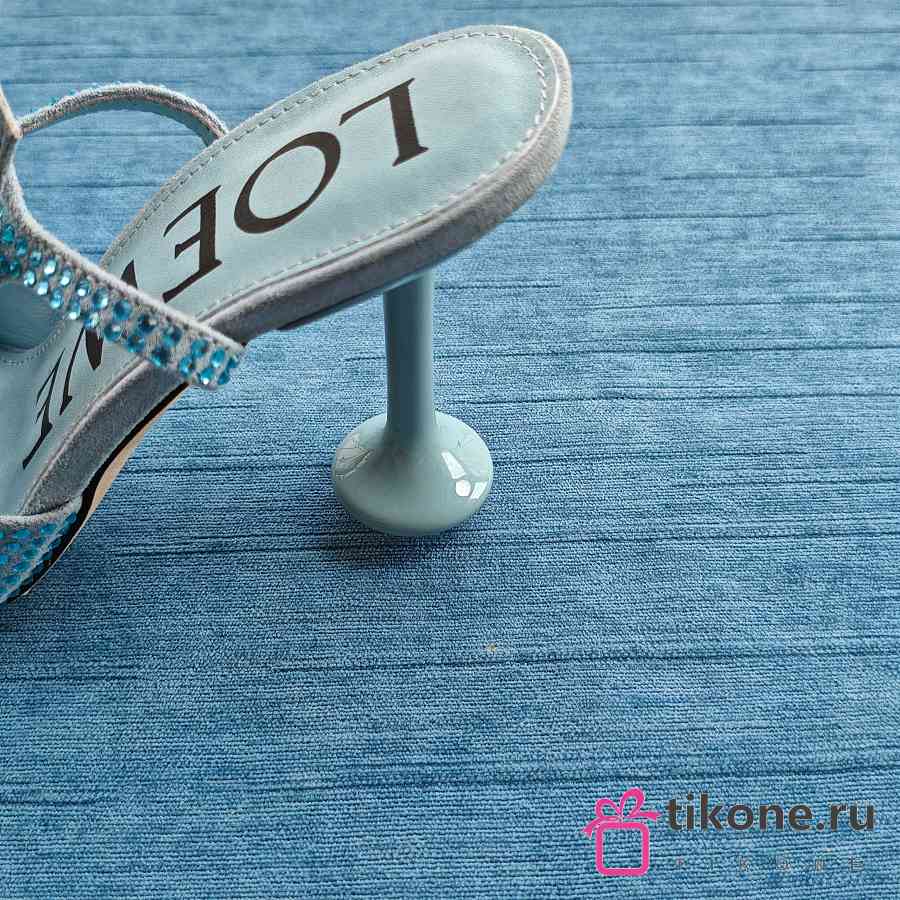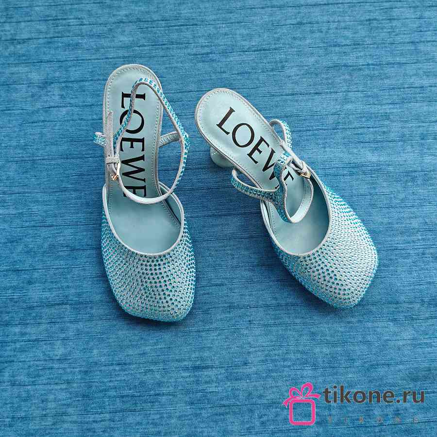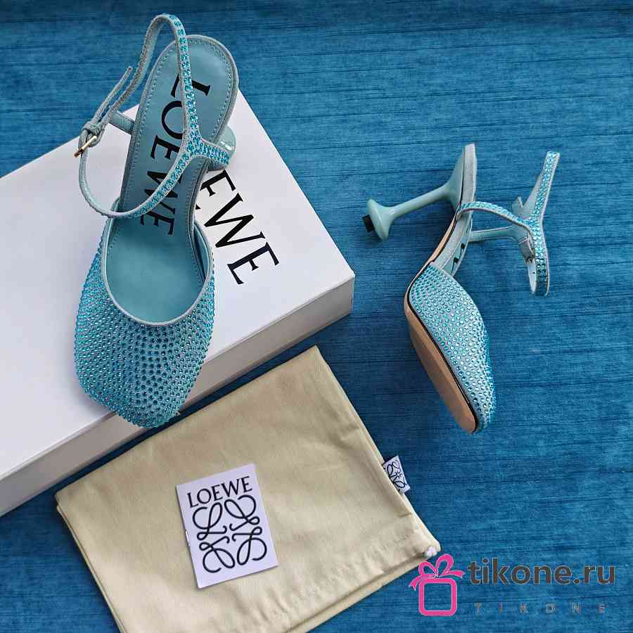 Loewe Toy Ankle Strap Pump In Rhinestone Embellished Suede Blue 9cm