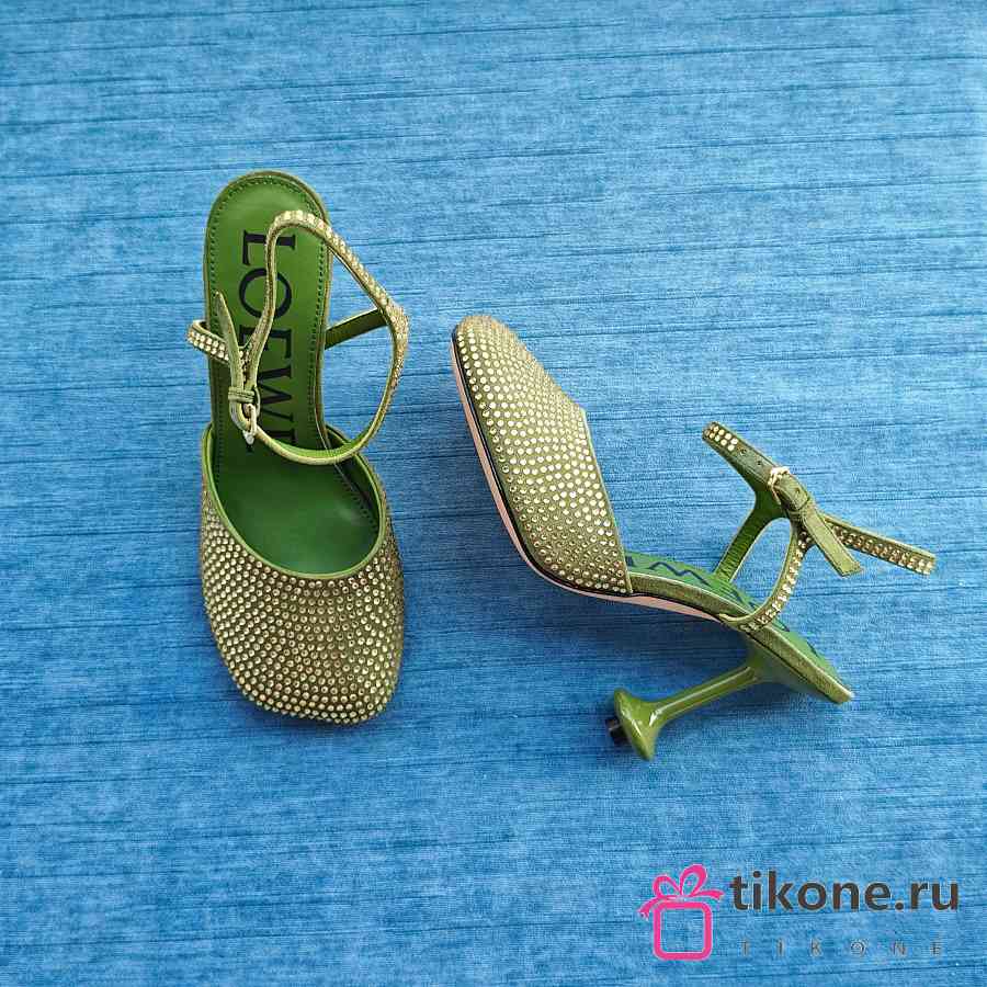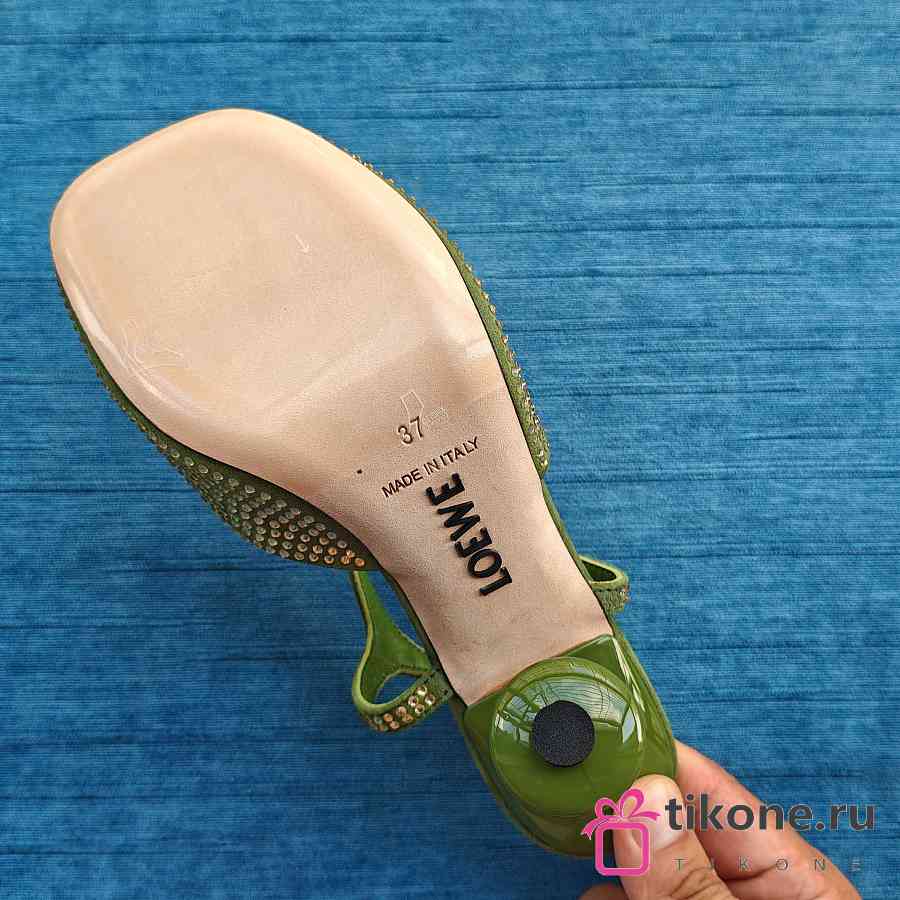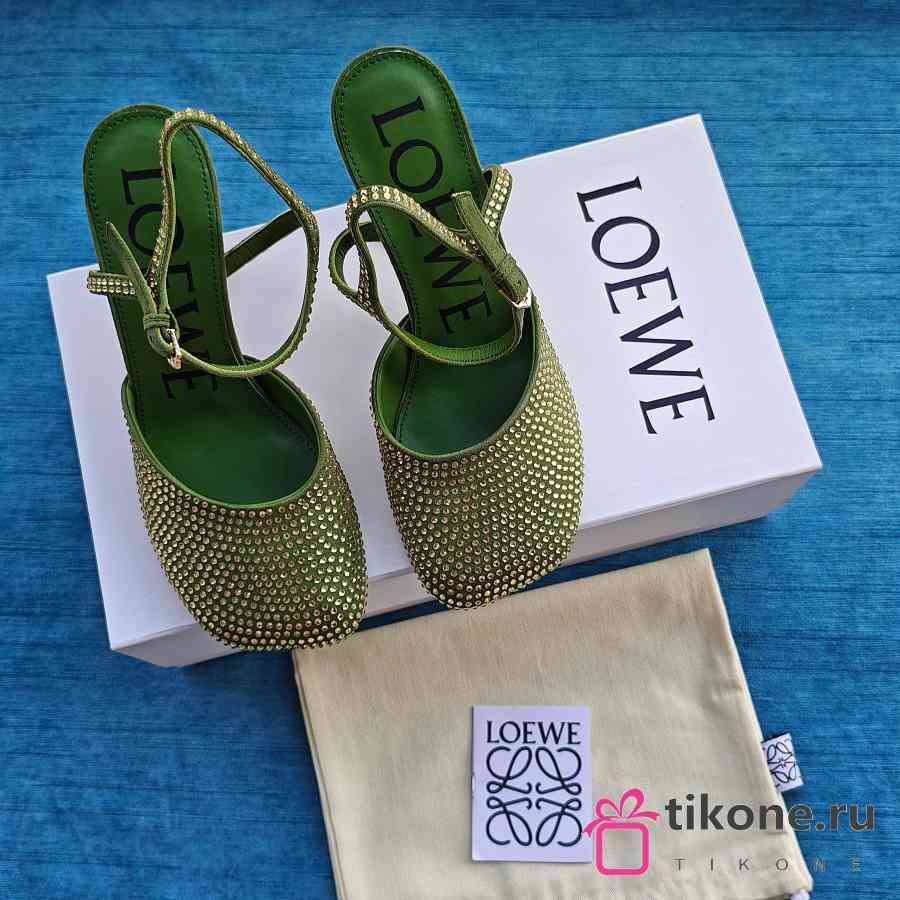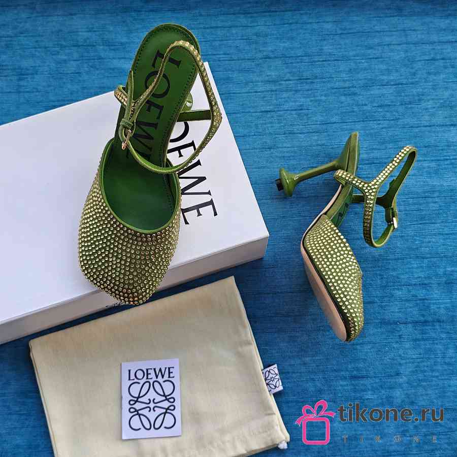 Loewe Toy Ankle Strap Pump In Rhinestone Embellished Suede Green 9cm