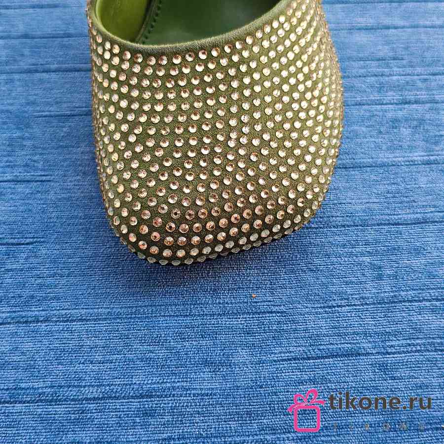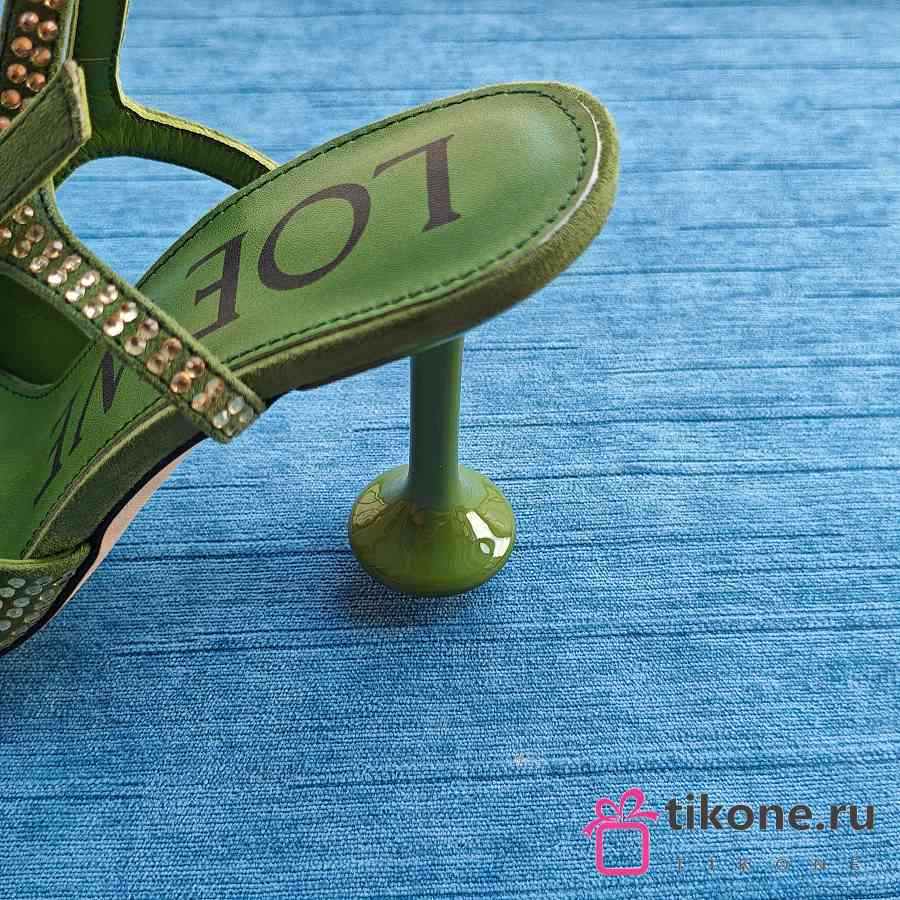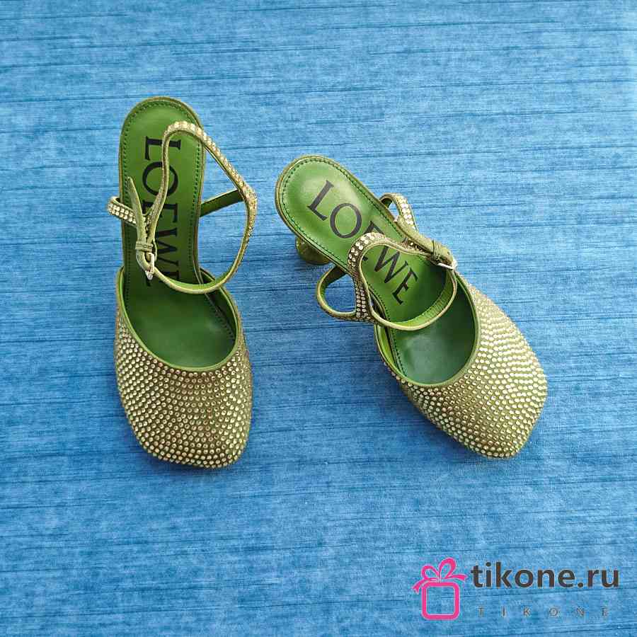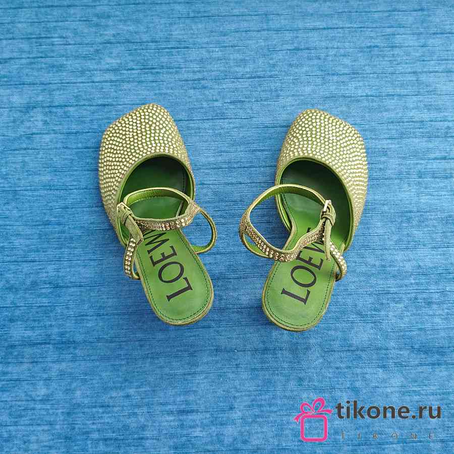 Loewe Toy Ankle Strap Pump In Rhinestone Embellished Suede Green 9cm