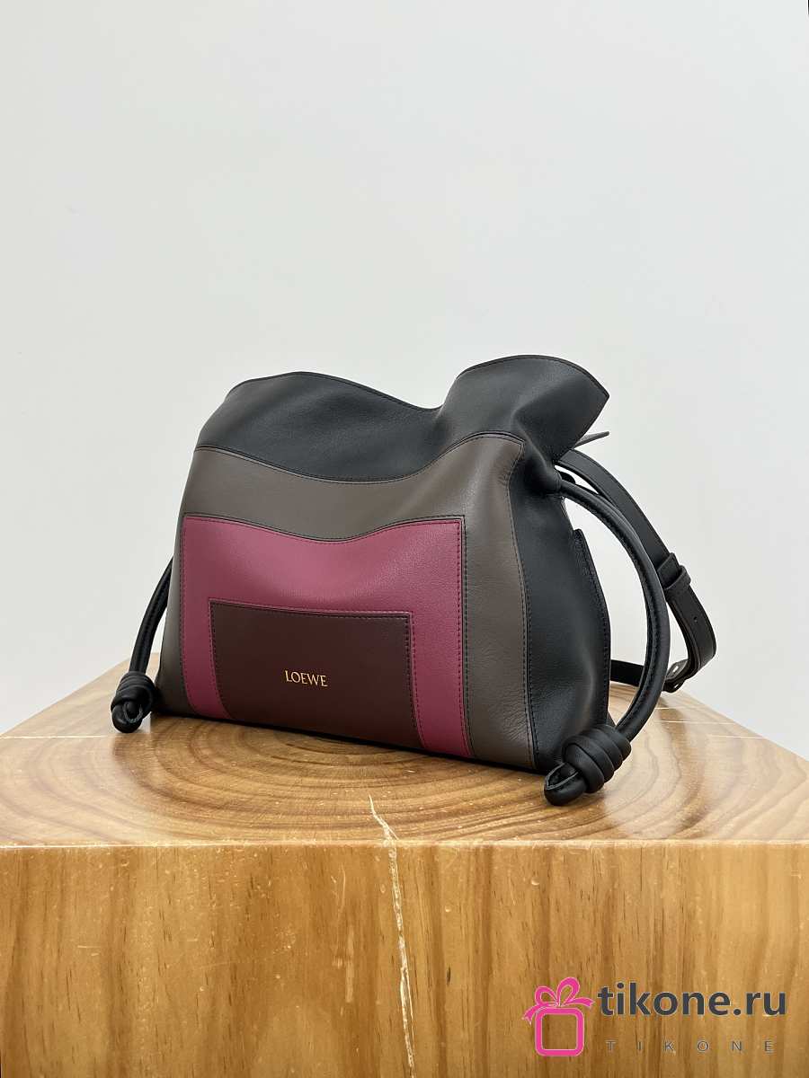 Loewe x Albers Medium Flamenco Clutch In Nappa Calfskin Black/Burgundy - 30x24.5x10.5cm