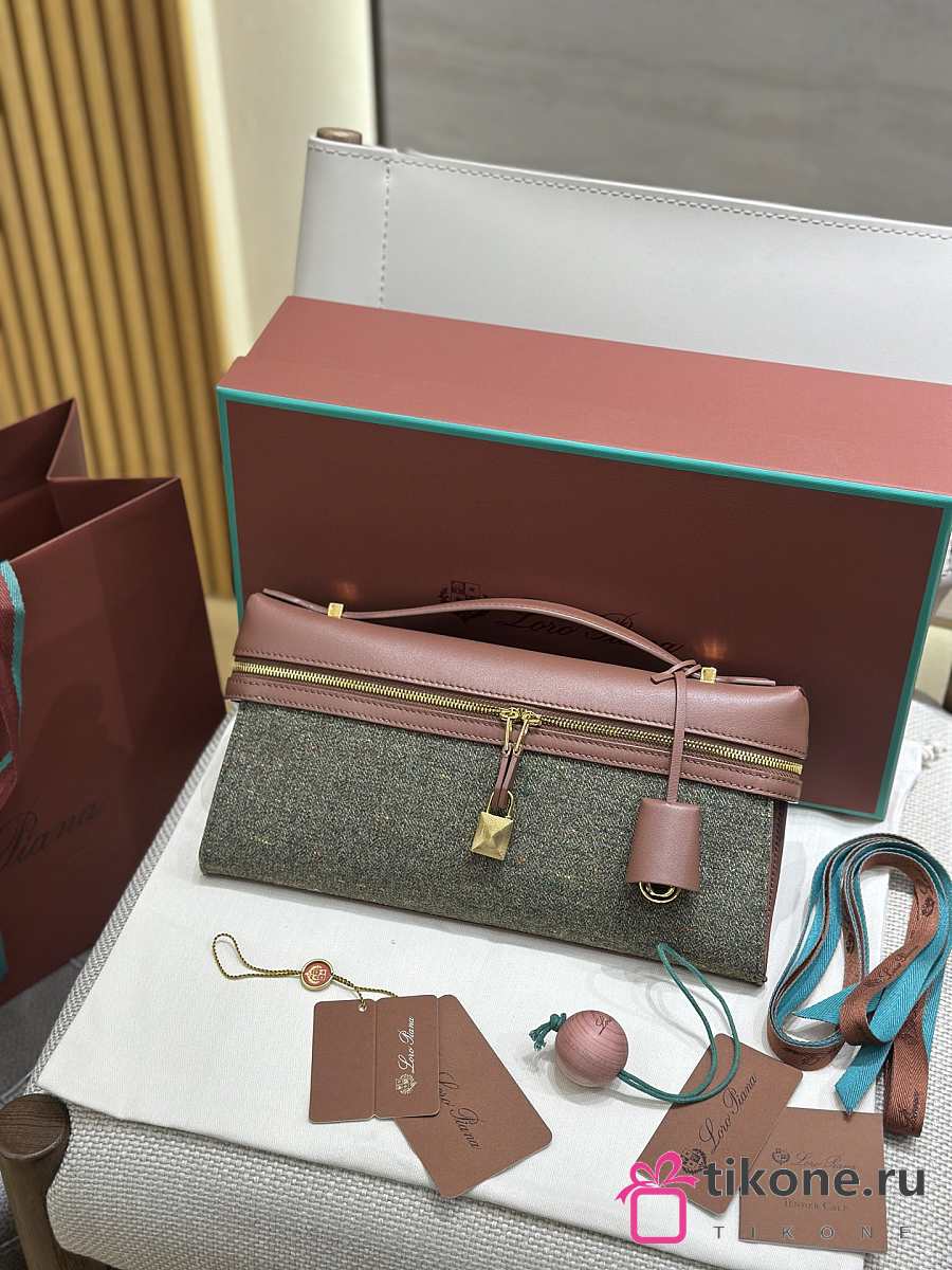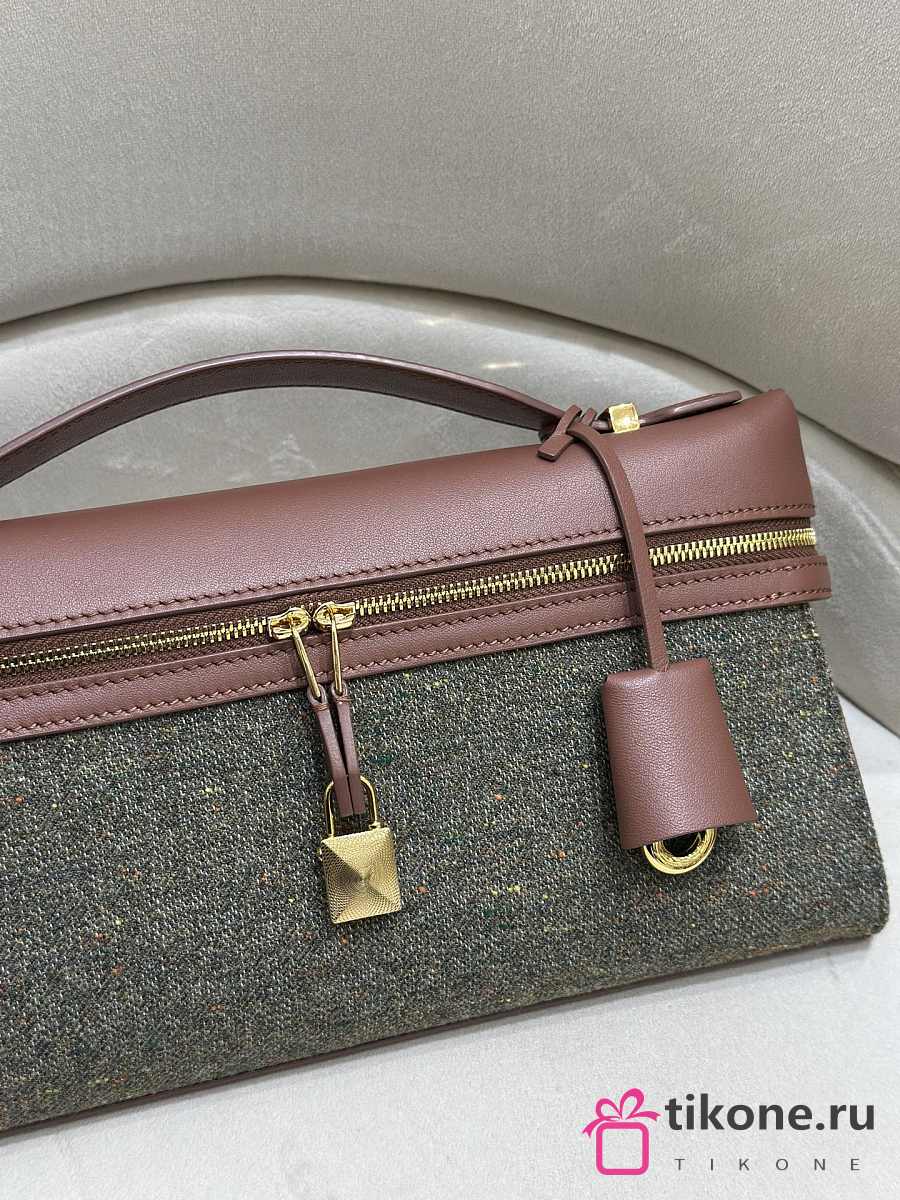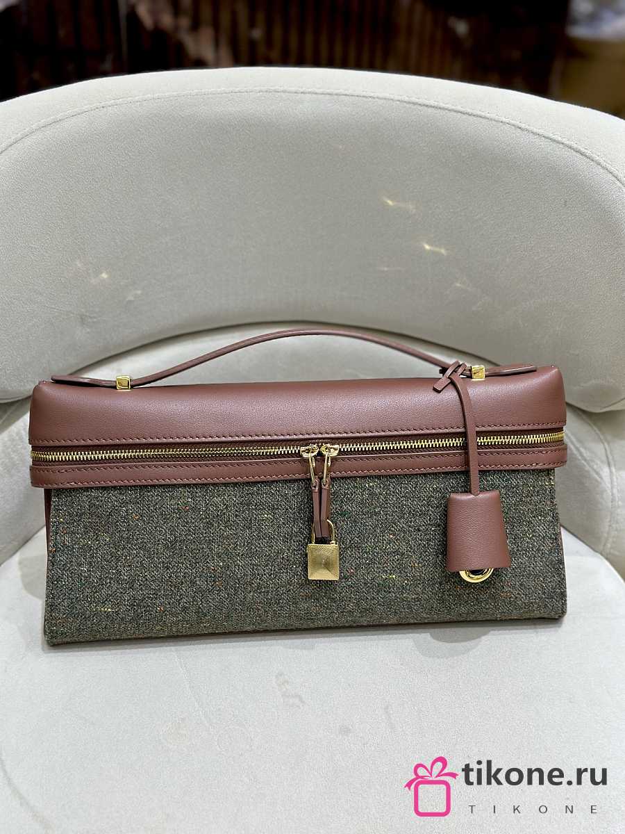 Loro Piana Extra Clutch L29 Cashmere Virgin Wool Silk Countryside Sage B5NA - 29x14x3cm
