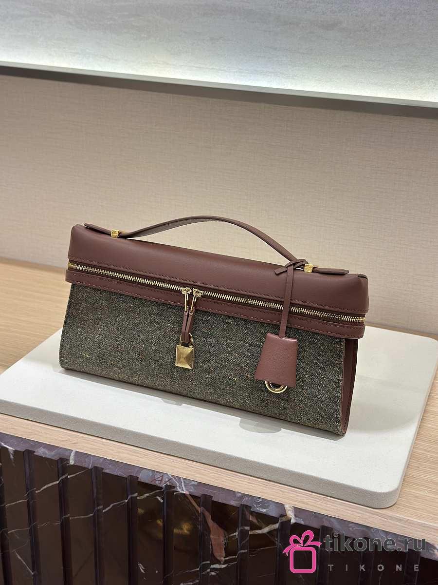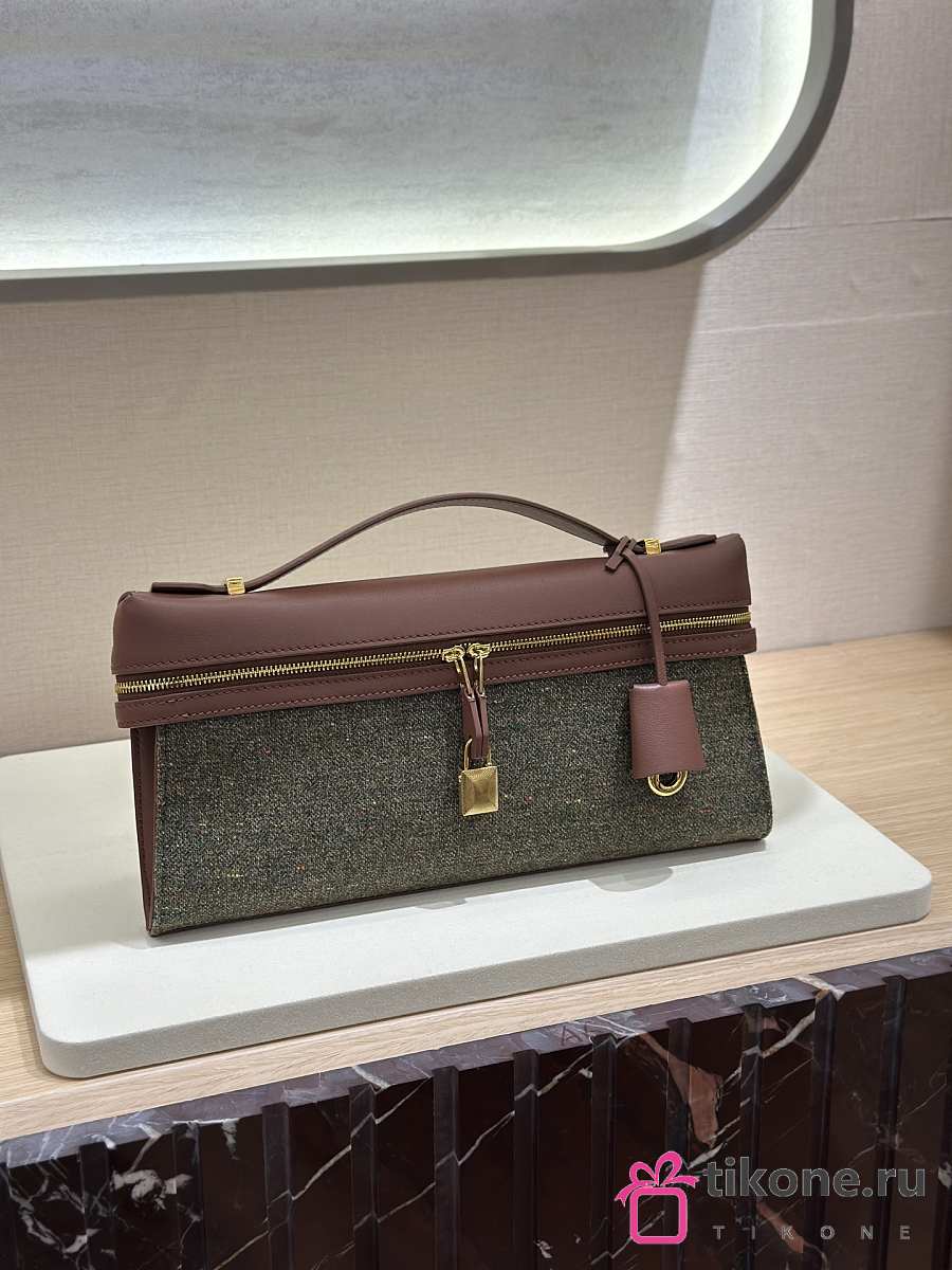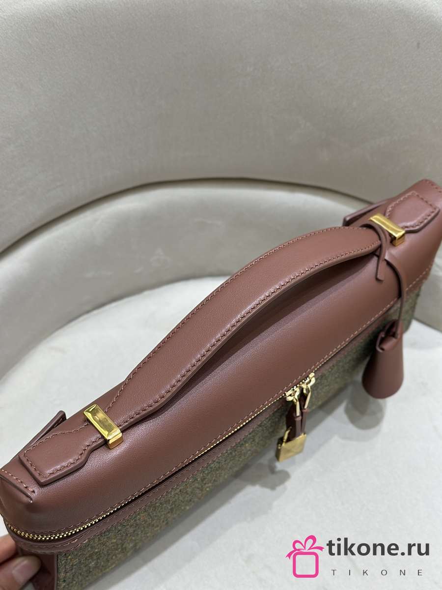 Loro Piana Extra Clutch L29 Cashmere Virgin Wool Silk Countryside Sage B5NA - 29x14x3cm