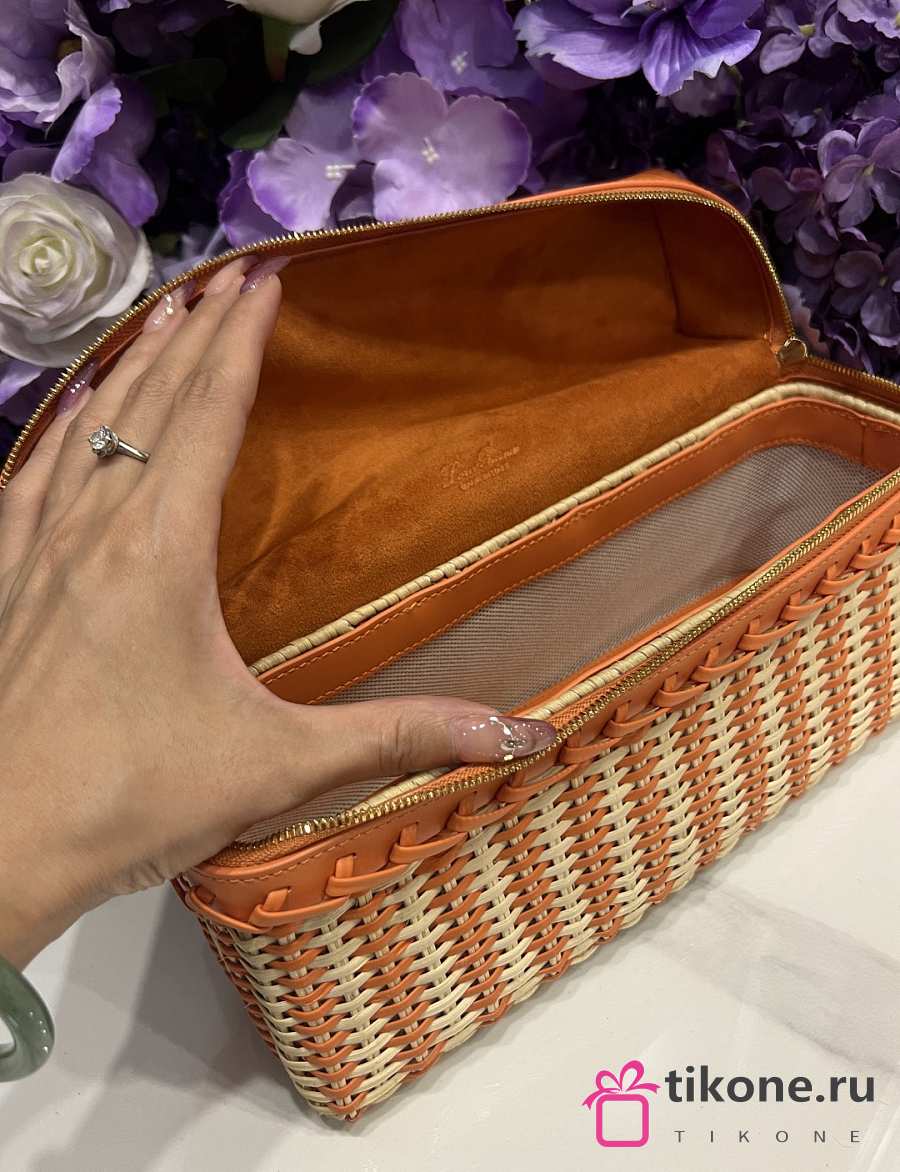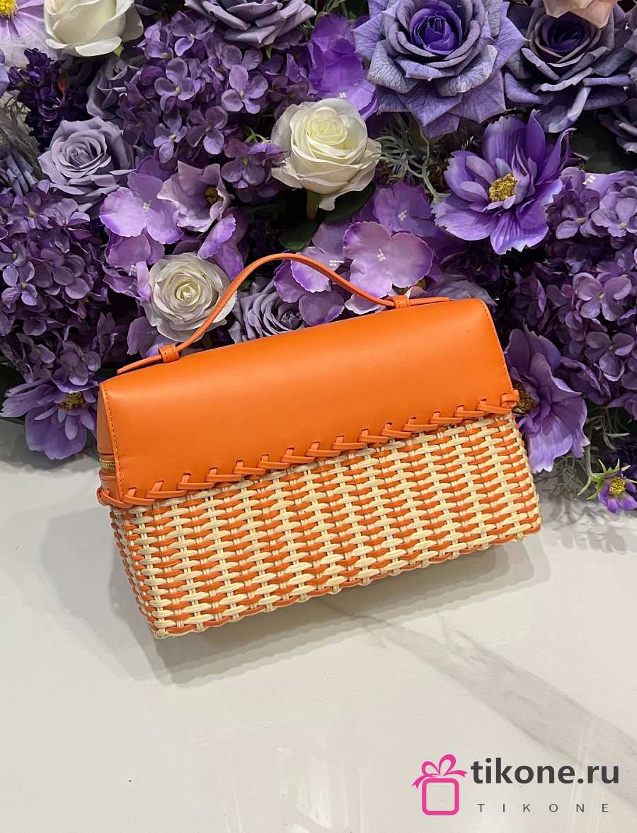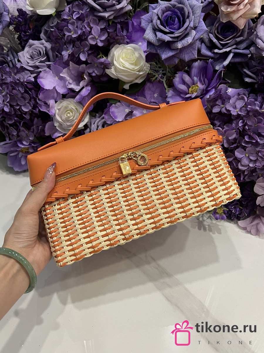 Loro Piana Extra Pocket L27 East West Wicker Rattan Orange - 27x15x10cm