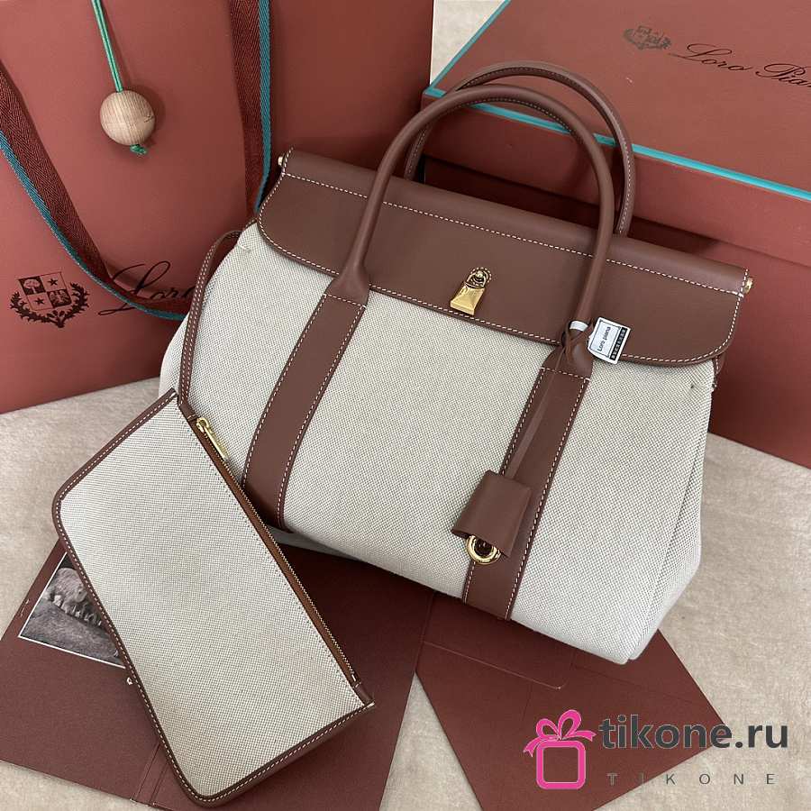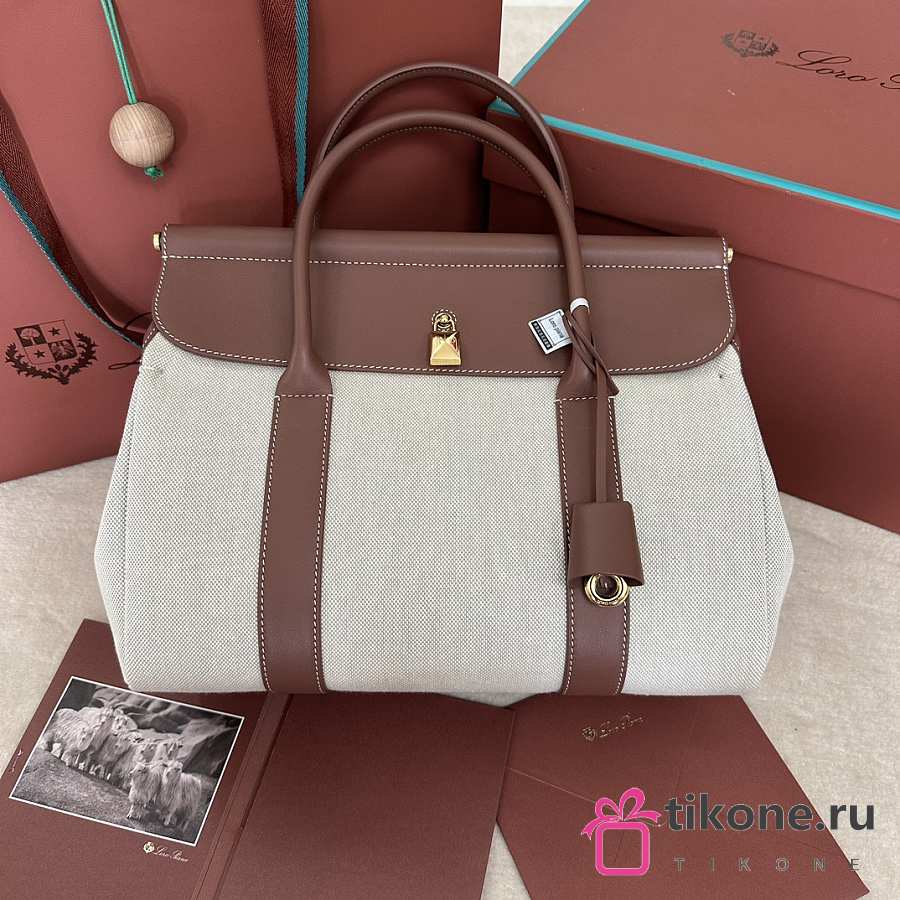 Loro Piana Loom bag L32 Cotton Linen Natural/Caramel Sugar/Sun Gold (B4NE) - 33x23x18cm