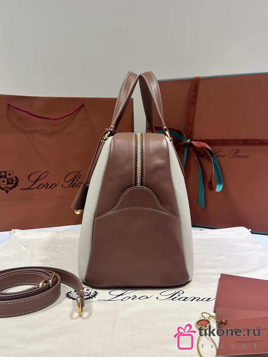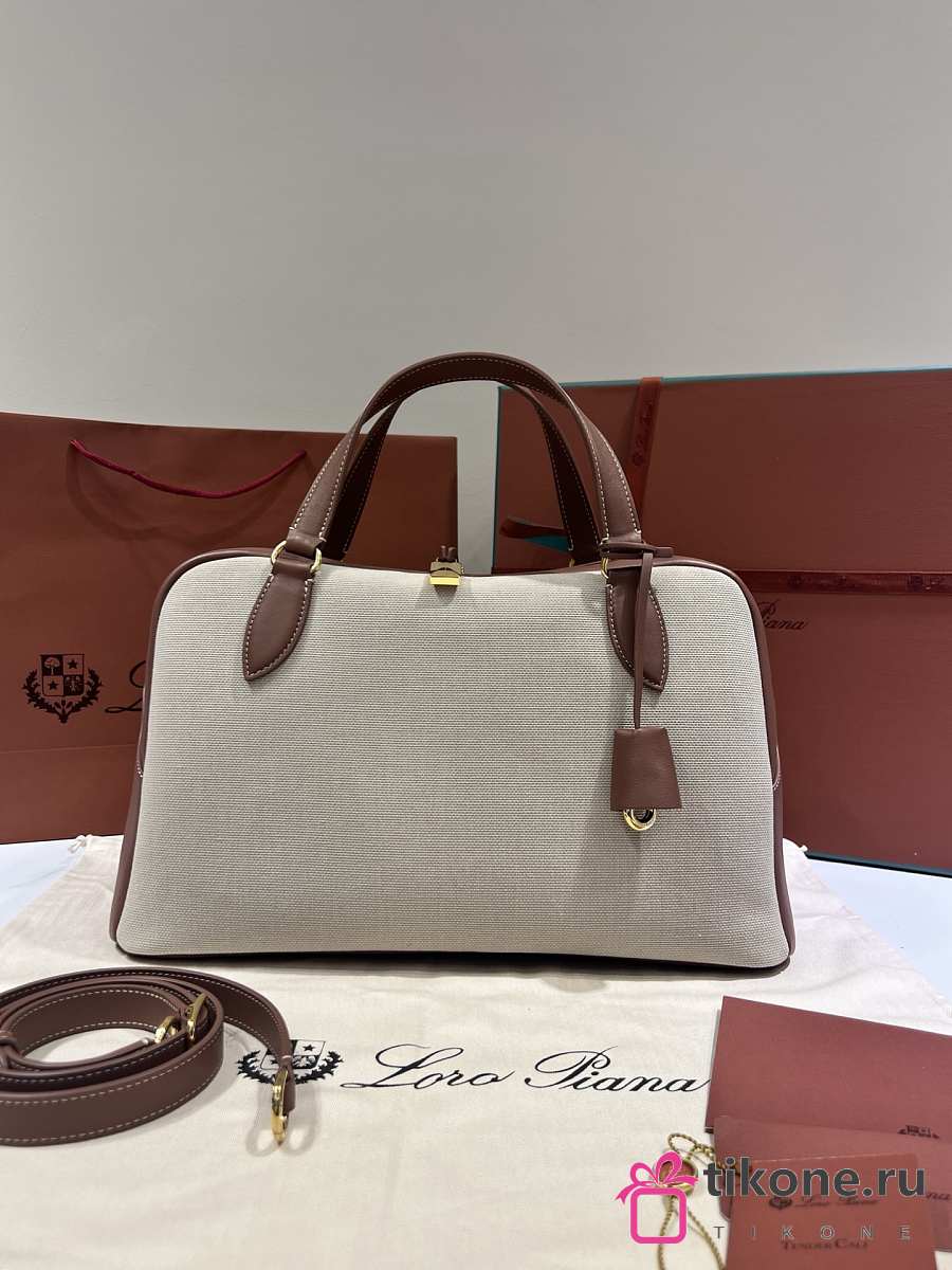 Loro Piana Medium Needle Bag Cotton Linen Caramel - 40.5x20x20cm