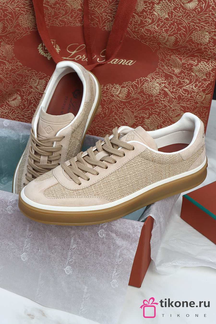 Loro Piana Tennis Walk Sneaker Cashmere Lotus Flower Silk Pale Wheat (A0JY)