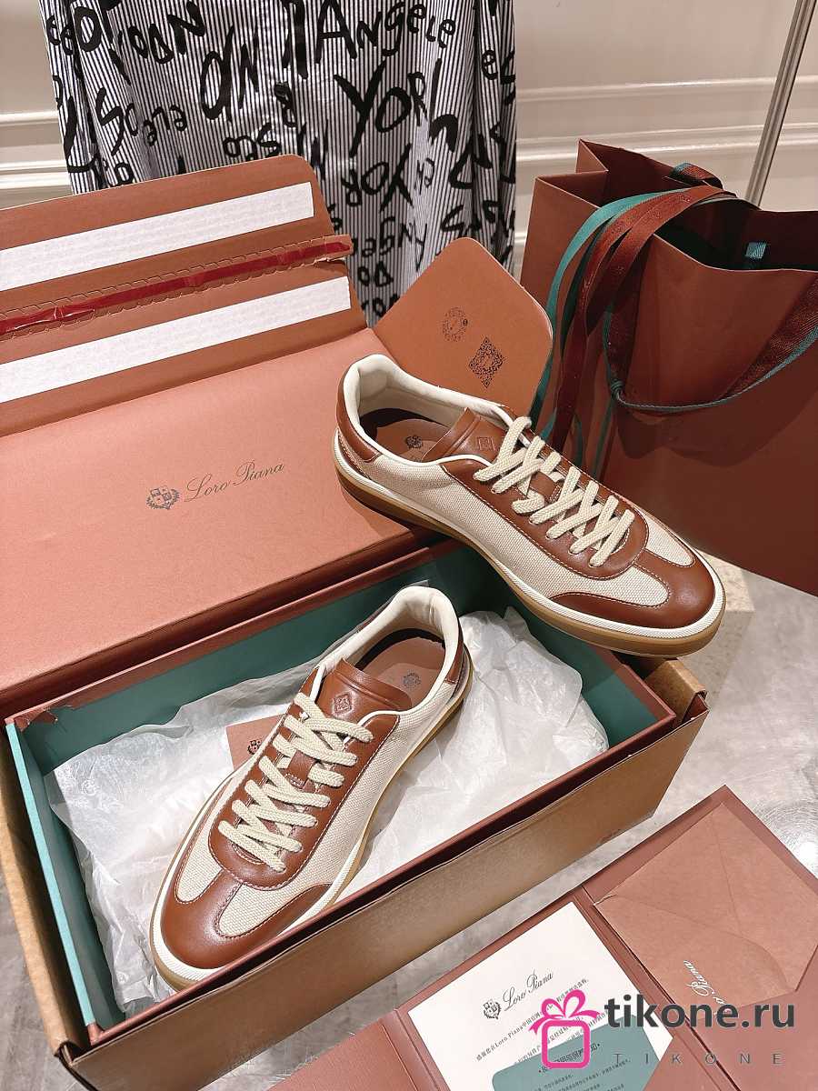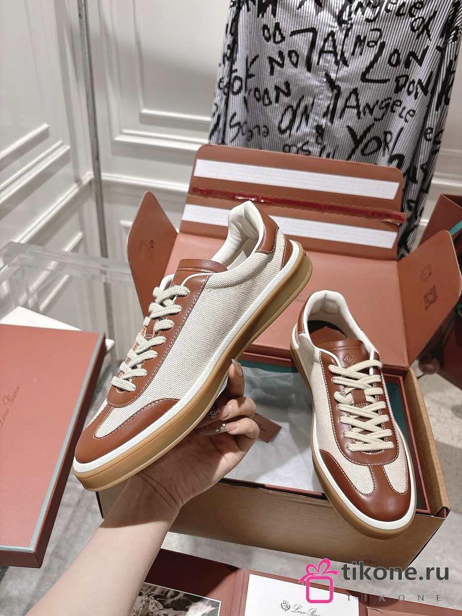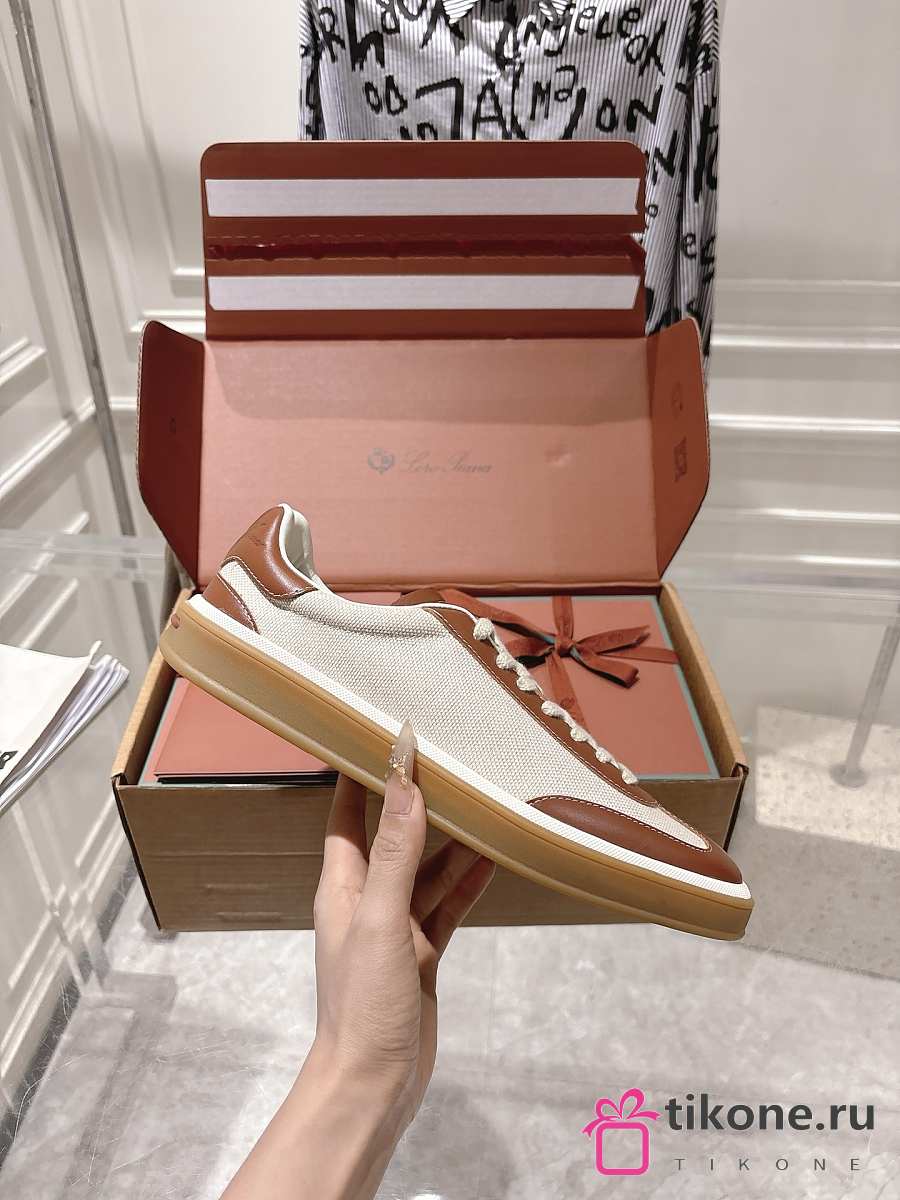 Loro Piana Tennis Walk Sneaker Suede Calf Split Linen Natural/ Caramel