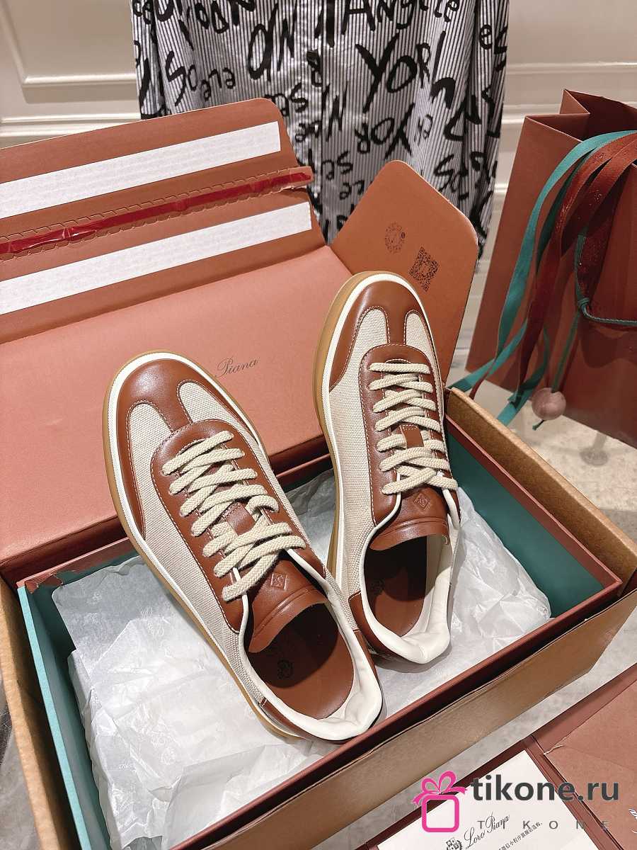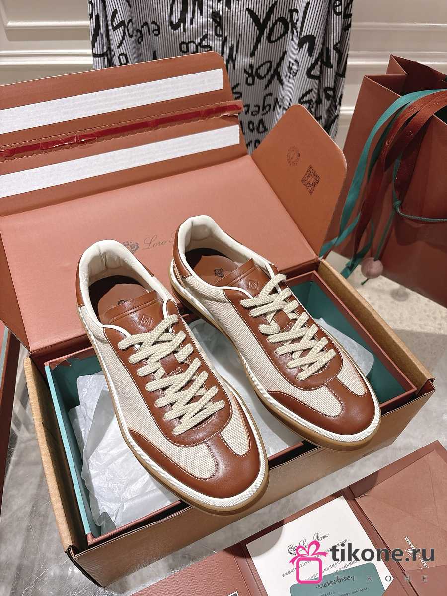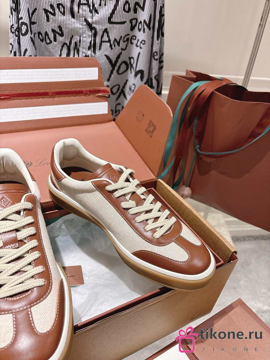 Loro Piana Tennis Walk Sneaker Suede Calf Split Linen Natural/ Caramel