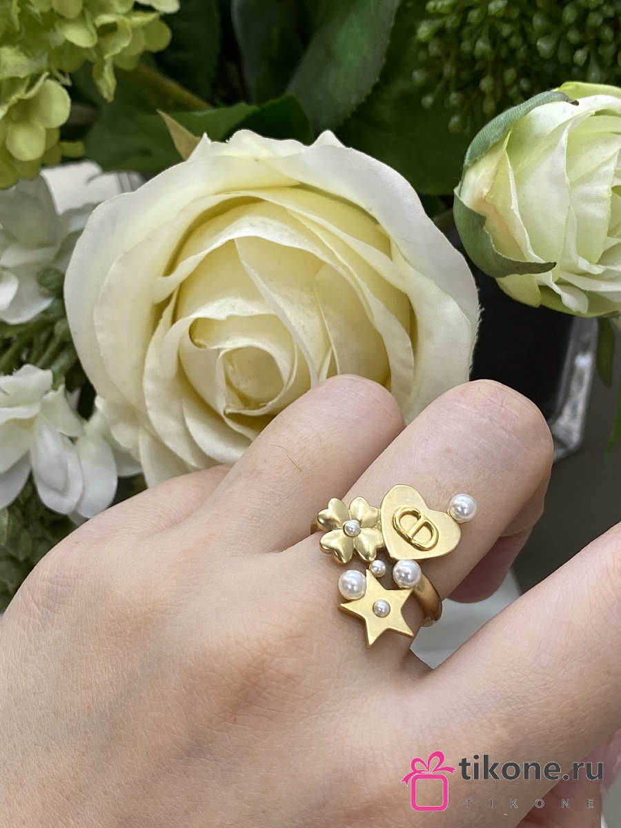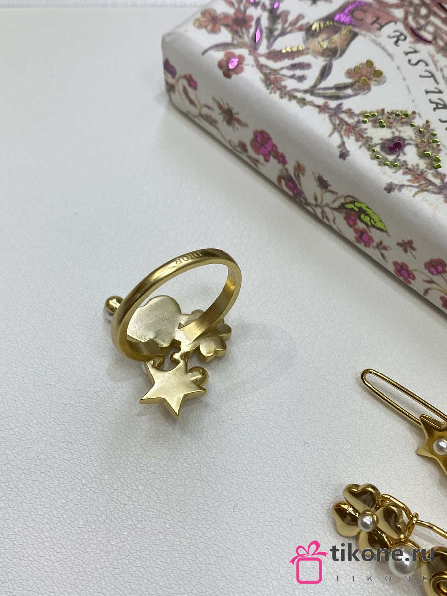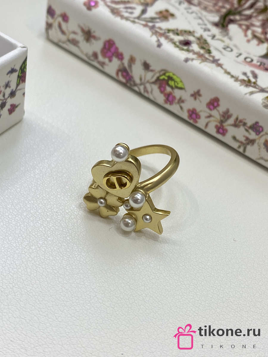 Lucky Dior Ring Gold Finish Metal and White Resin Pearls